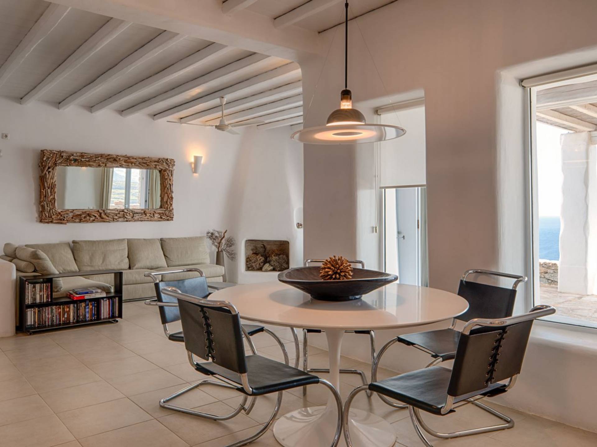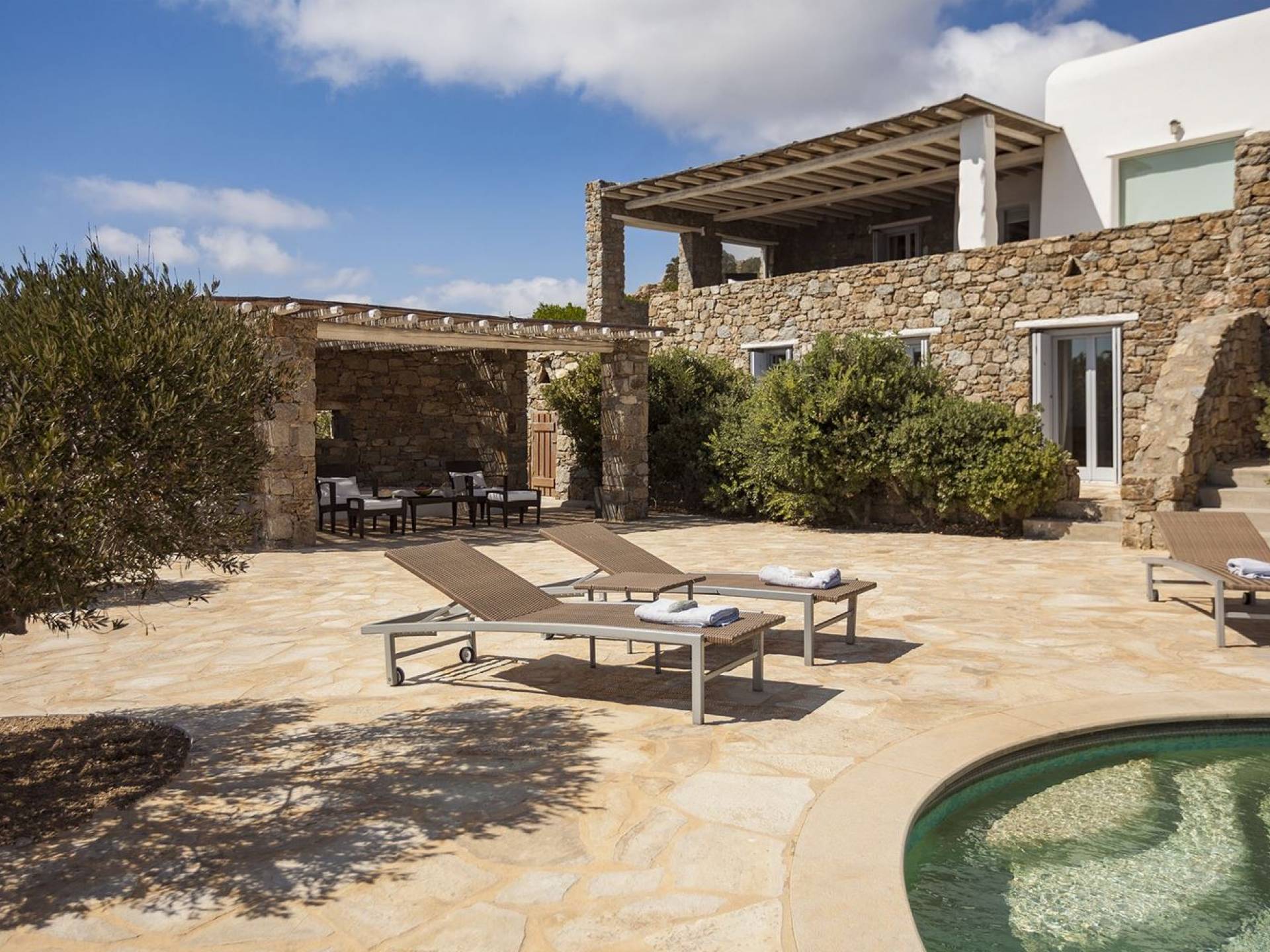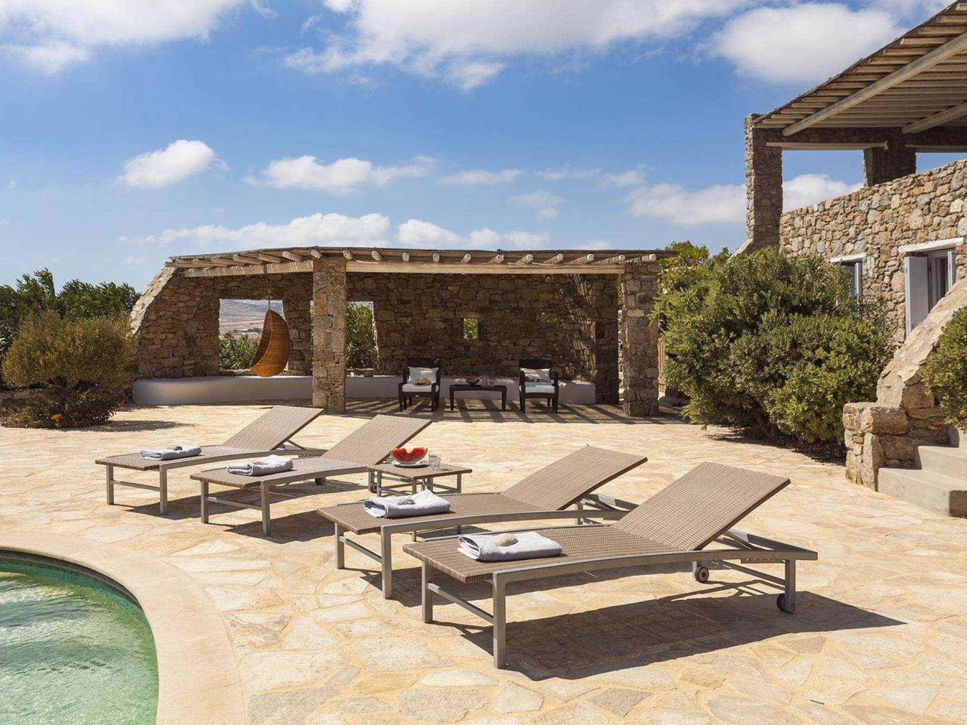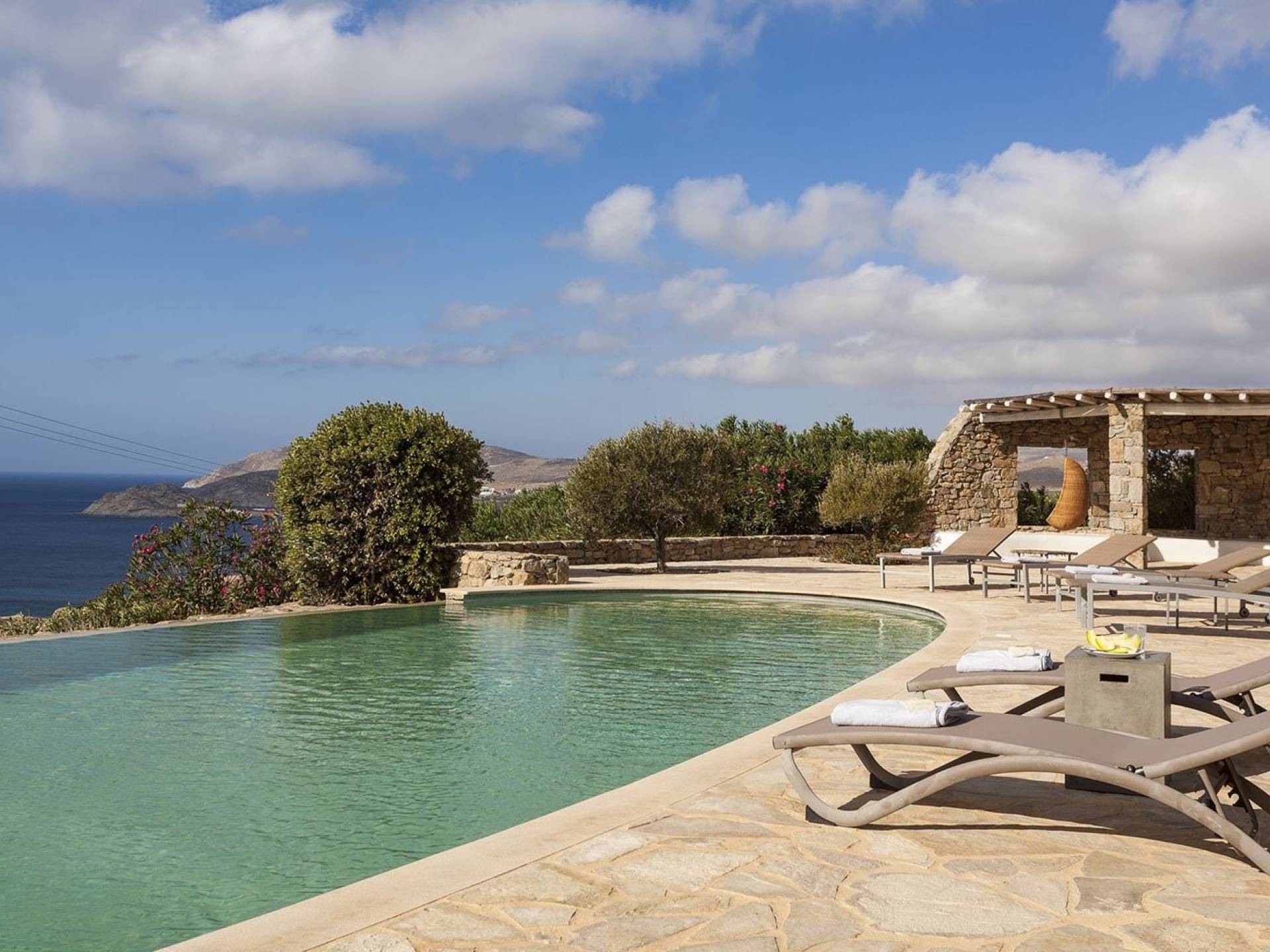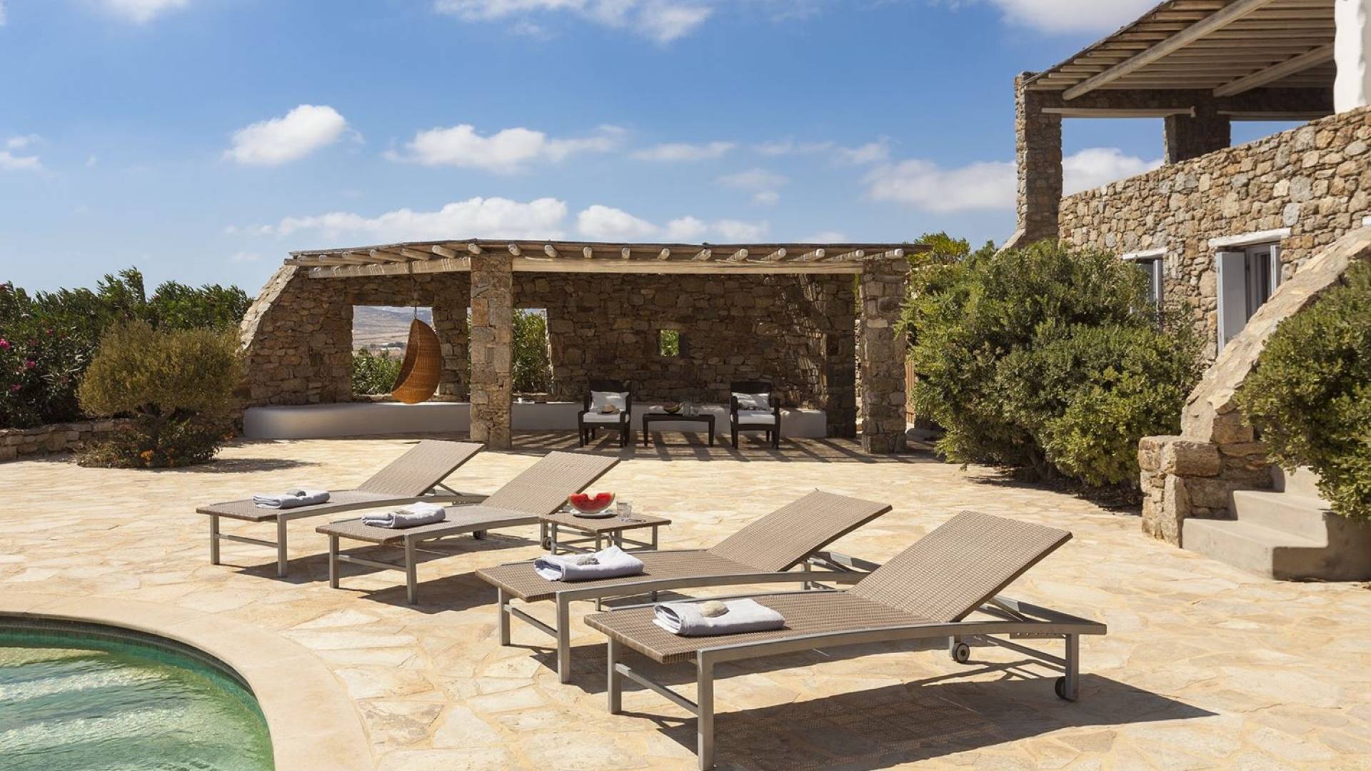 Villa Univa Mykonos est une location de villa de luxe avec 4 chambres. La Villa Univa est située au sud de Mykonos, au sommet d'une petite colline au-dessus de la plage de Lia. C'est une maison traditionnelle des Cyclades avec des éléments modernes, idéale pour tous ceux qui recherchent des vacances tranquilles ou en famille. Vous pouvez admirer les magnifiques couchers de soleil au bord de la piscine commune ou dans les coins salon extérieurs.