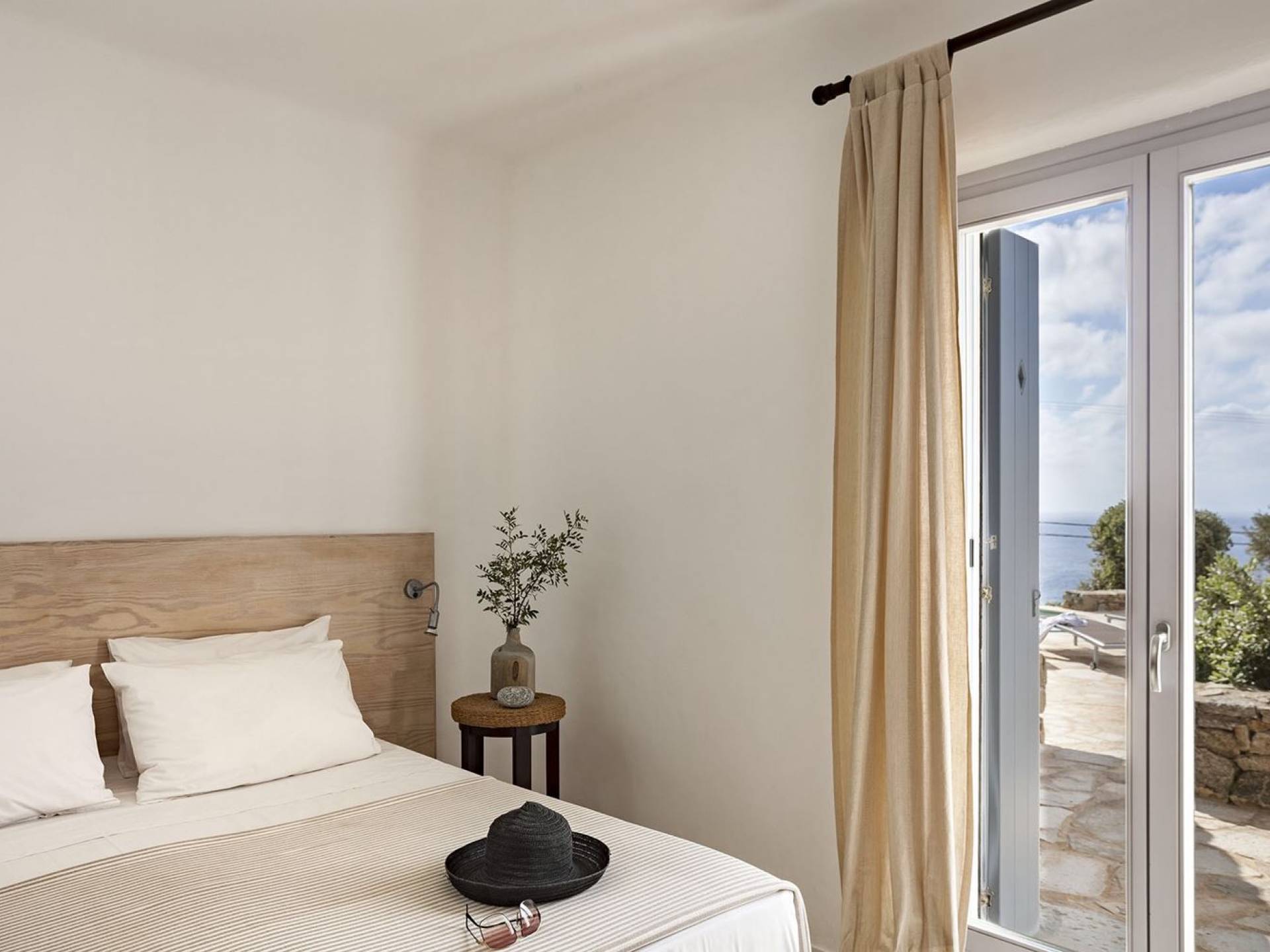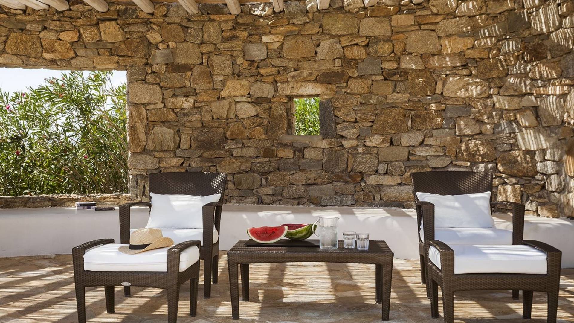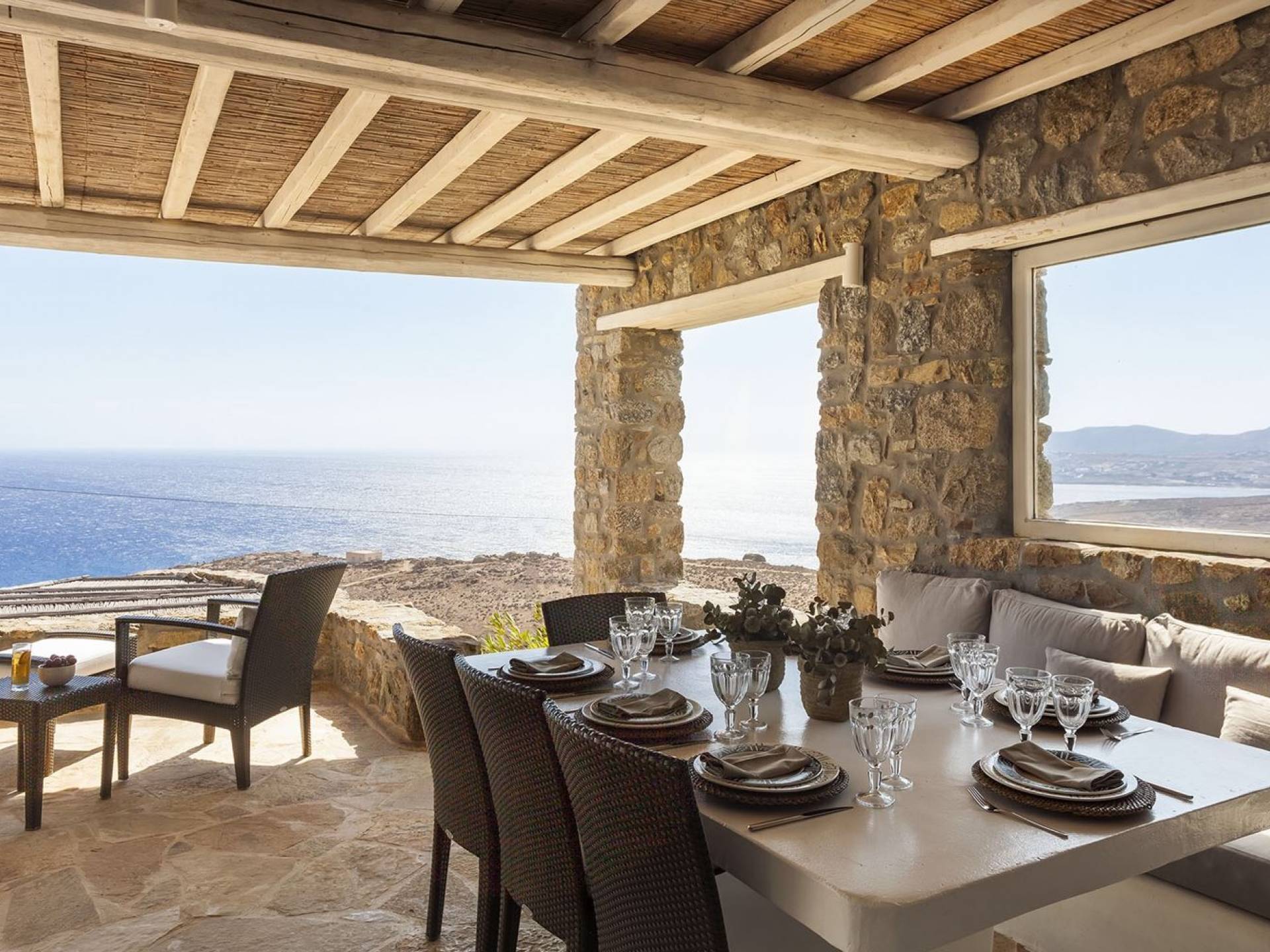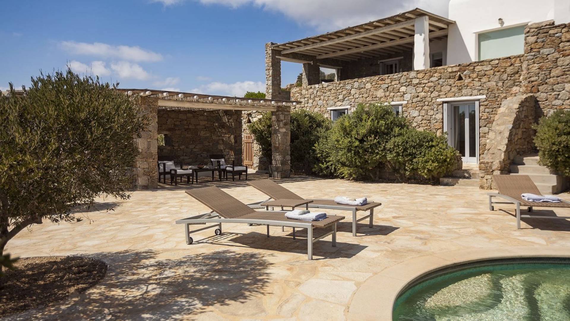 Villa Univa Mykonos est une location de villa de luxe avec 4 chambres. La Villa Univa est située au sud de Mykonos, au sommet d'une petite colline au-dessus de la plage de Lia. C'est une maison traditionnelle des Cyclades avec des éléments modernes, idéale pour tous ceux qui recherchent des vacances tranquilles ou en famille. Vous pouvez admirer les magnifiques couchers de soleil au bord de la piscine commune ou dans les coins salon extérieurs.