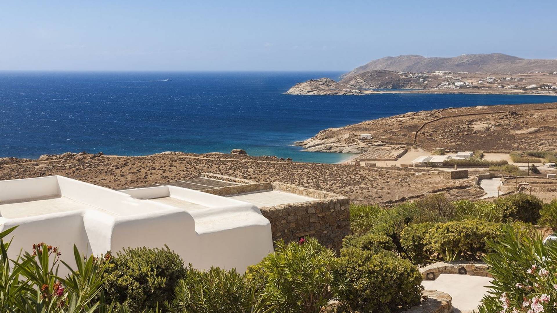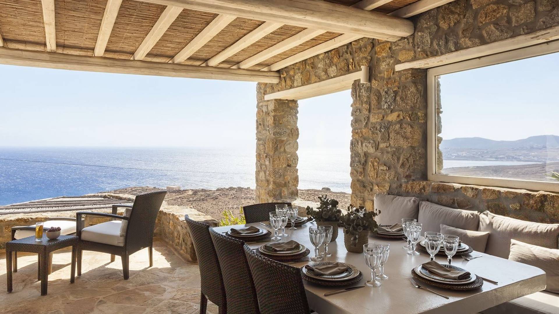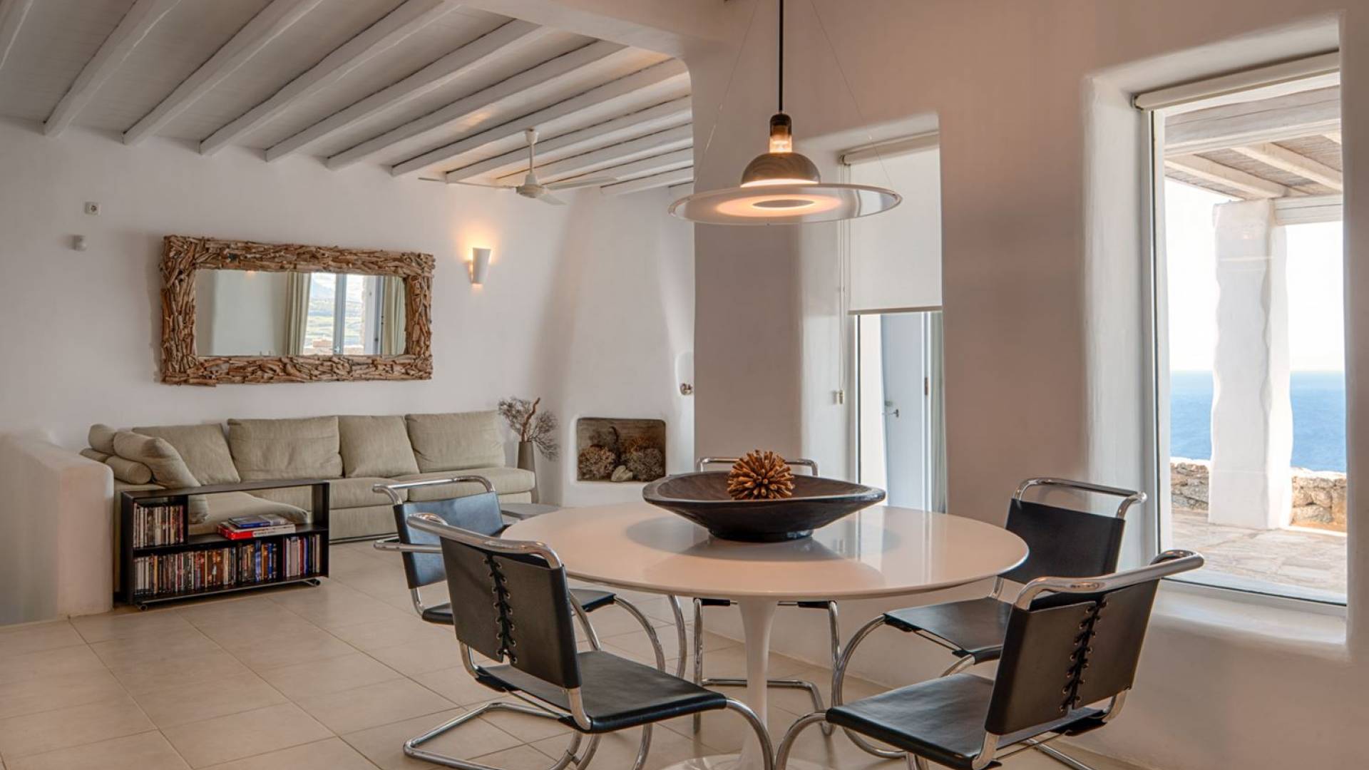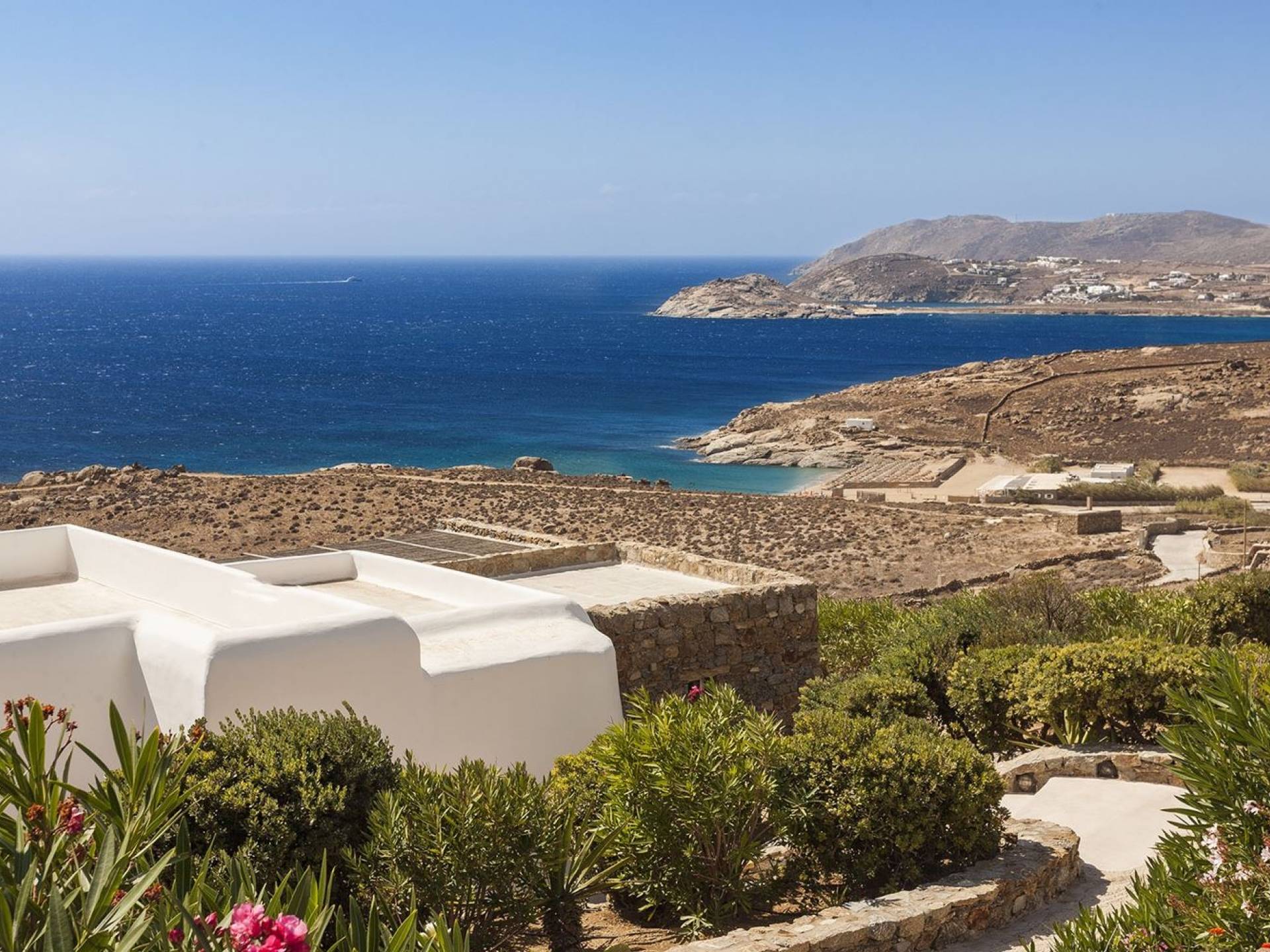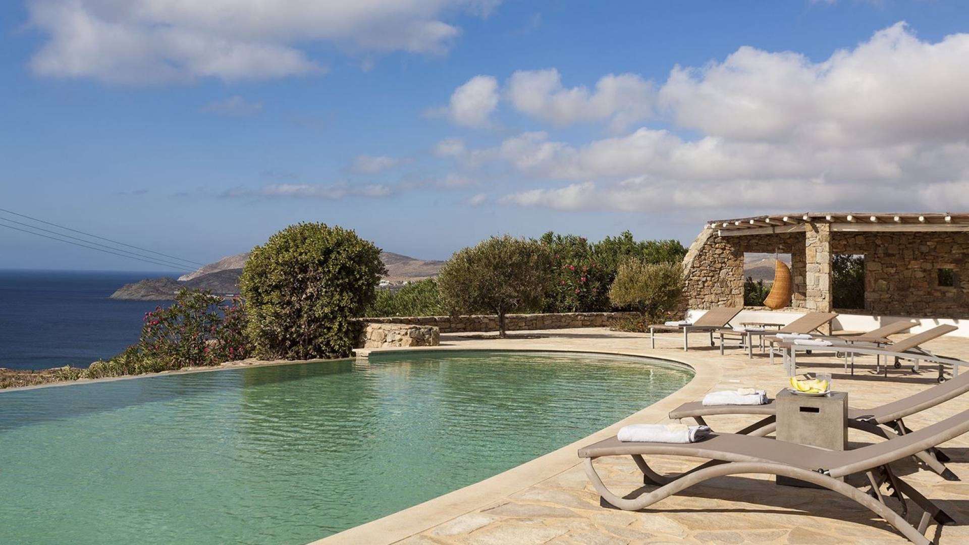 Villa Univa Mykonos est une location de villa de luxe avec 4 chambres. La Villa Univa est située au sud de Mykonos, au sommet d'une petite colline au-dessus de la plage de Lia. C'est une maison traditionnelle des Cyclades avec des éléments modernes, idéale pour tous ceux qui recherchent des vacances tranquilles ou en famille. Vous pouvez admirer les magnifiques couchers de soleil au bord de la piscine commune ou dans les coins salon extérieurs.
