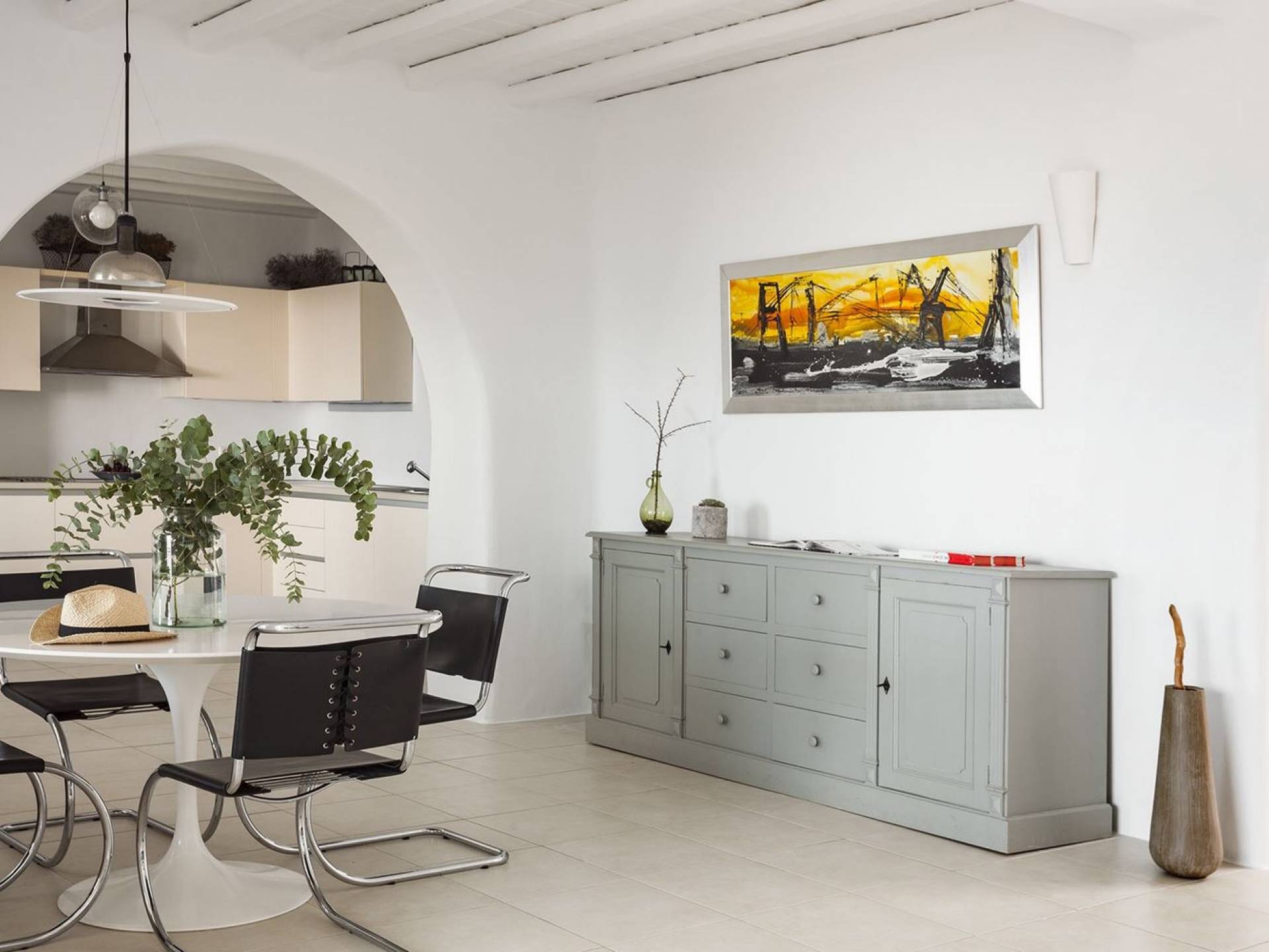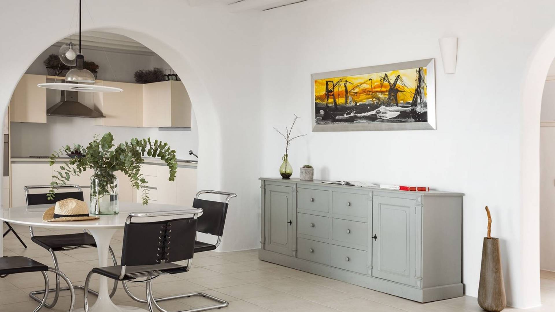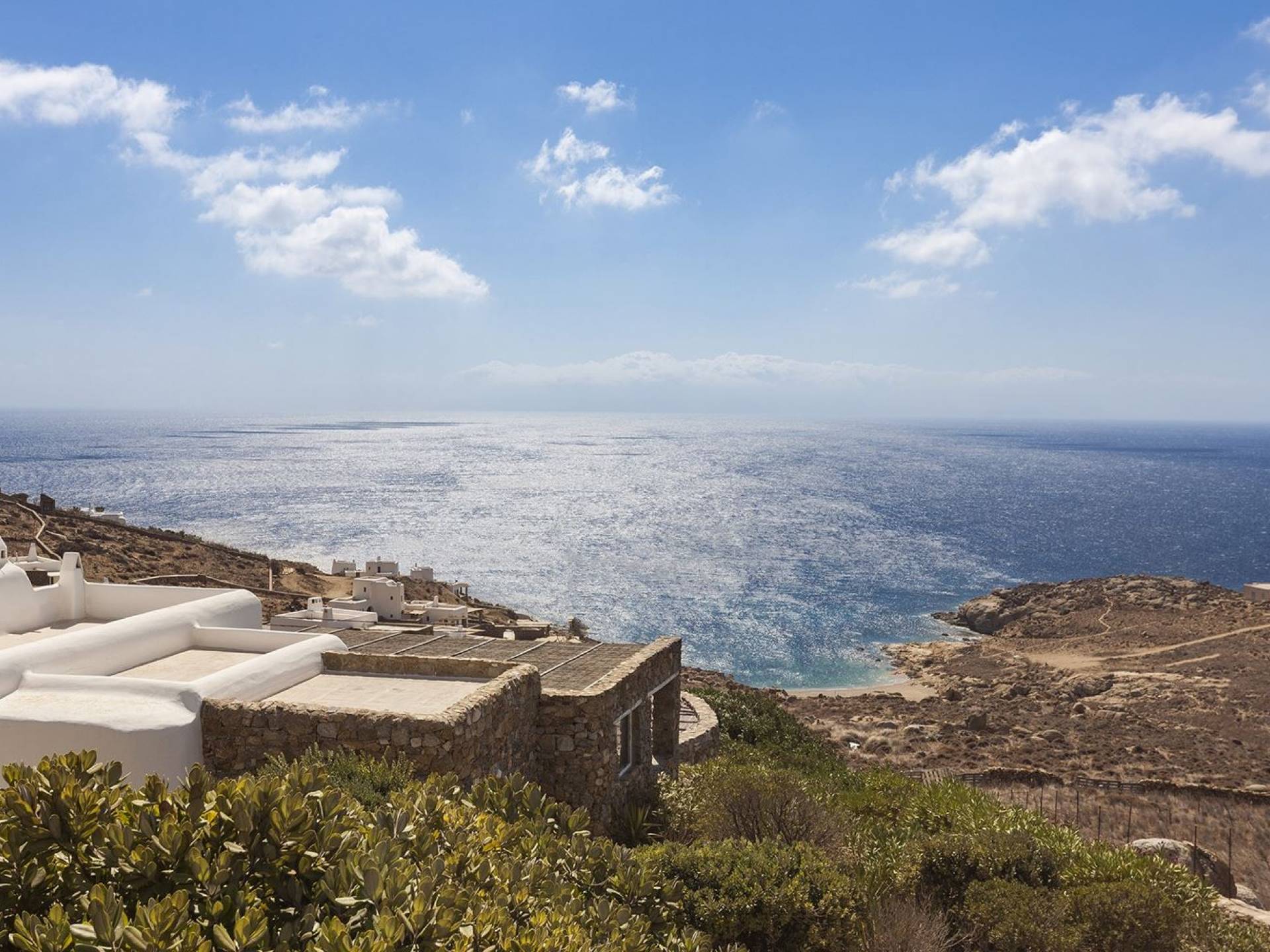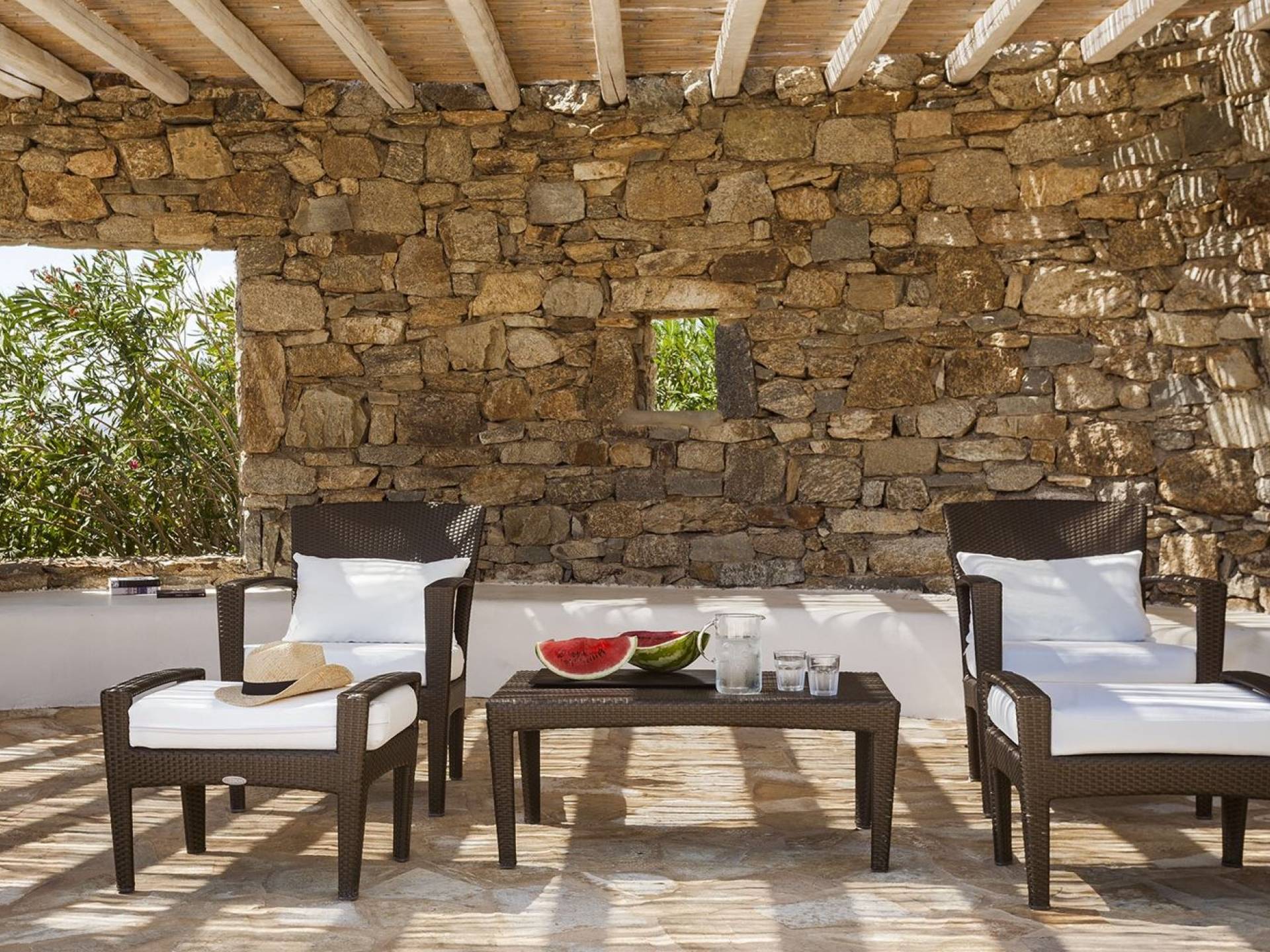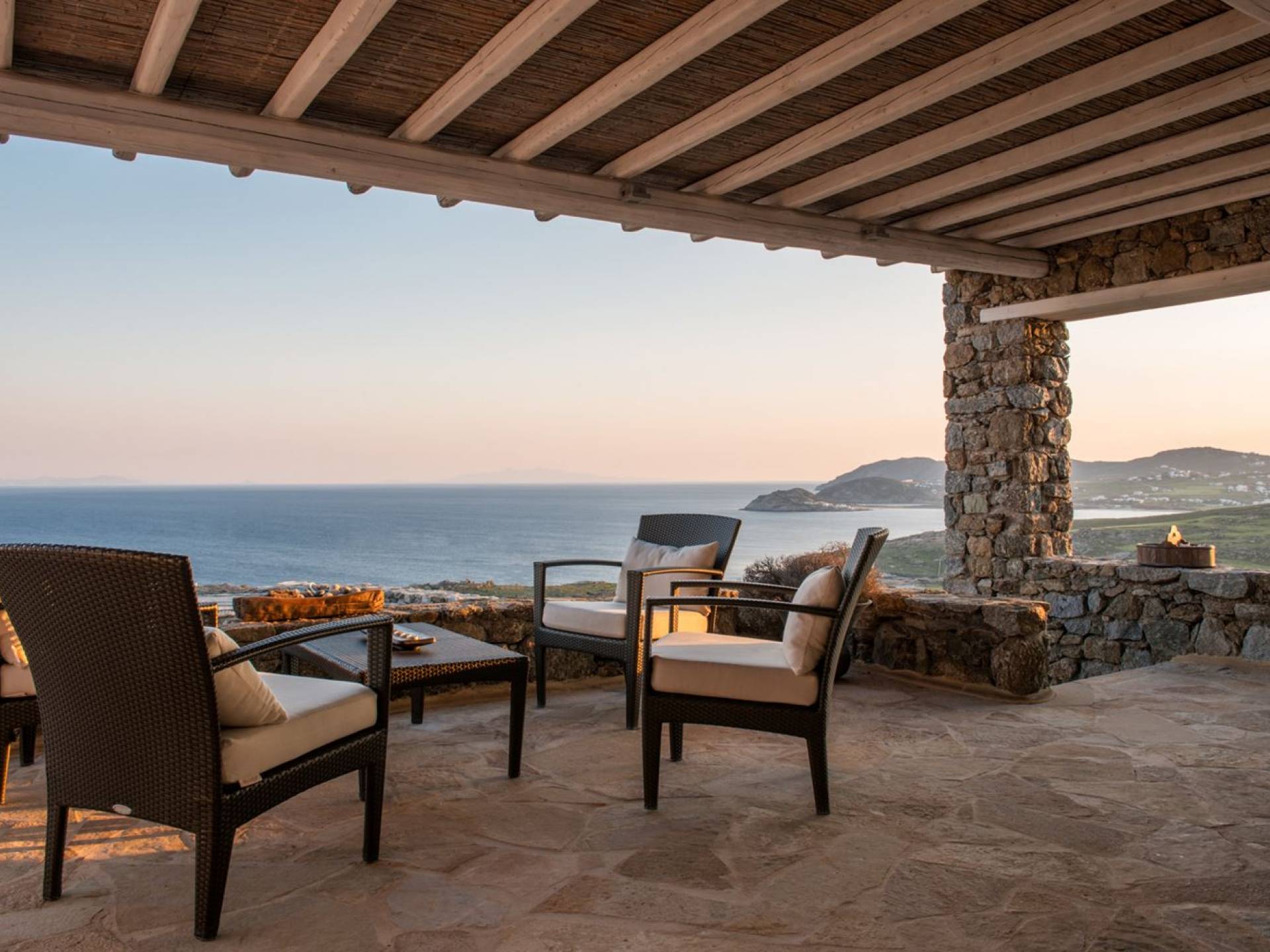Villa Univa Mykonos est une location de villa de luxe avec 4 chambres. La Villa Univa est située au sud de Mykonos, au sommet d'une petite colline au-dessus de la plage de Lia. C'est une maison traditionnelle des Cyclades avec des éléments modernes, idéale pour tous ceux qui recherchent des vacances tranquilles ou en famille. Vous pouvez admirer les magnifiques couchers de soleil au bord de la piscine commune ou dans les coins salon extérieurs.