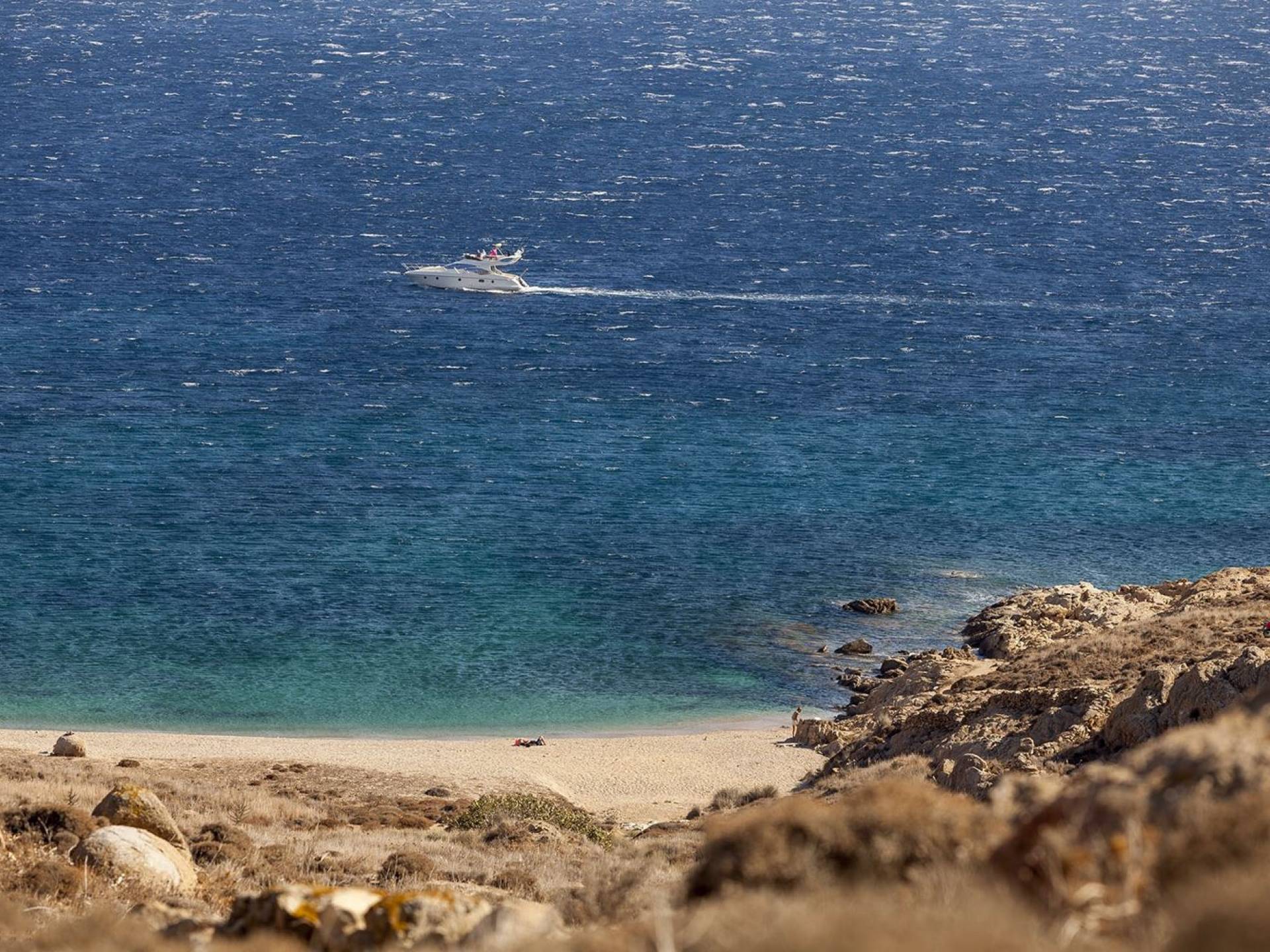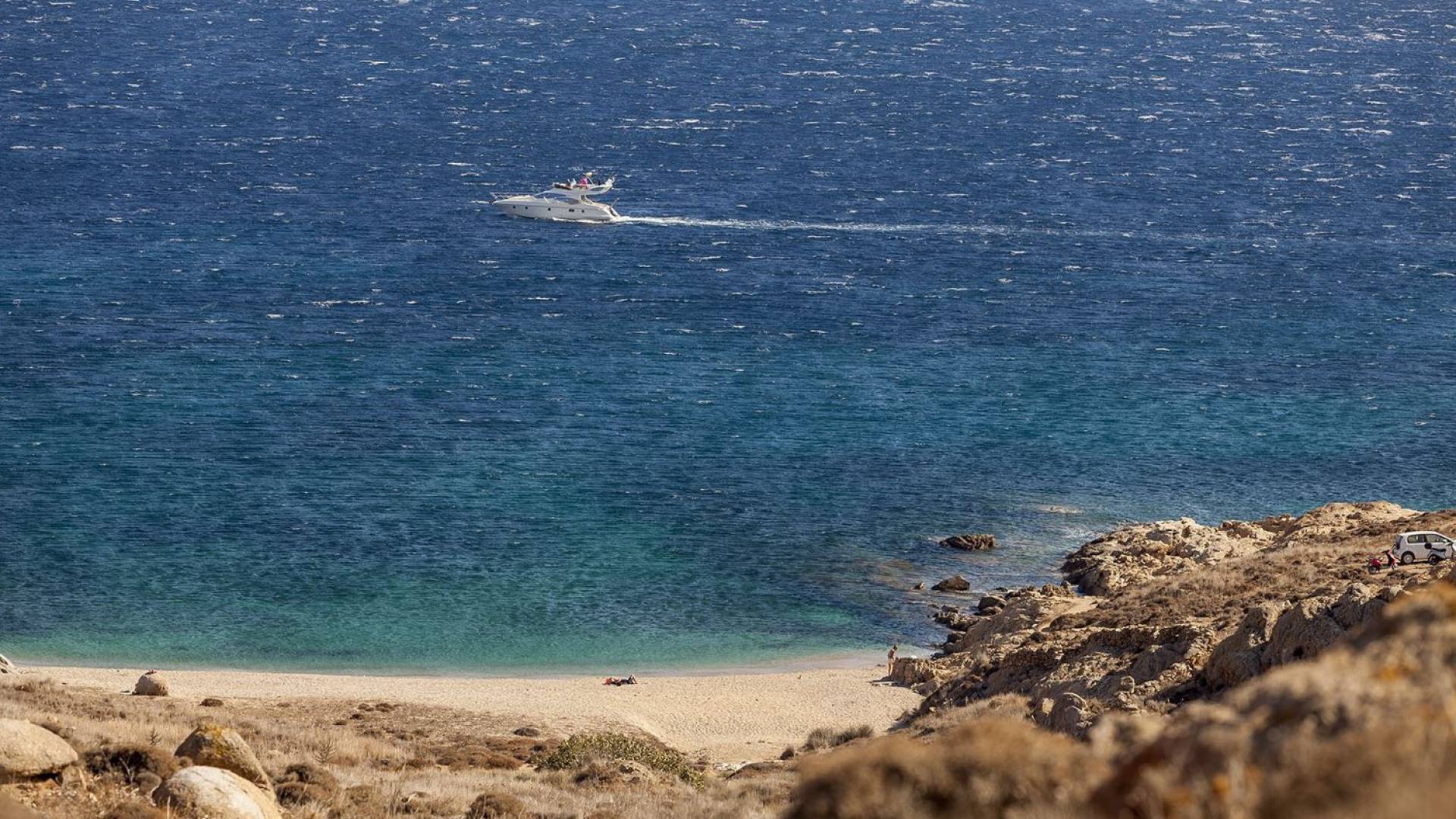 Kalafatis à Mykonos est une autre plage connue pour ses sports nautiques qui attirent des foules actives. Dans le coin gauche de la plage de Kalafatis, on trouve un kiosque qui offre des installations allant de la plongée en apnée à la plongée sous-marine. Il y a aussi un centre de planche à voile, où vous pouvez louer une planche à l'heure, et un centre de sports nautiques pour les amateurs de jet ski. Si vous recherchez une plage cosmopolite…Kalafatis à Mykonos est une autre plage connue pour ses sports nautiques qui attirent des foules actives. Dans le coin gauche de la plage de Kalafatis, on trouve un kiosque qui offre des installations allant de la plongée en apnée à la plongée sous-marine. Il y a aussi un centre de planche à voile, où vous pouvez louer une planche à l'heure, et un centre de sports nautiques pour les amateurs de jet ski. Si vous recherchez une plage cosmopolite…