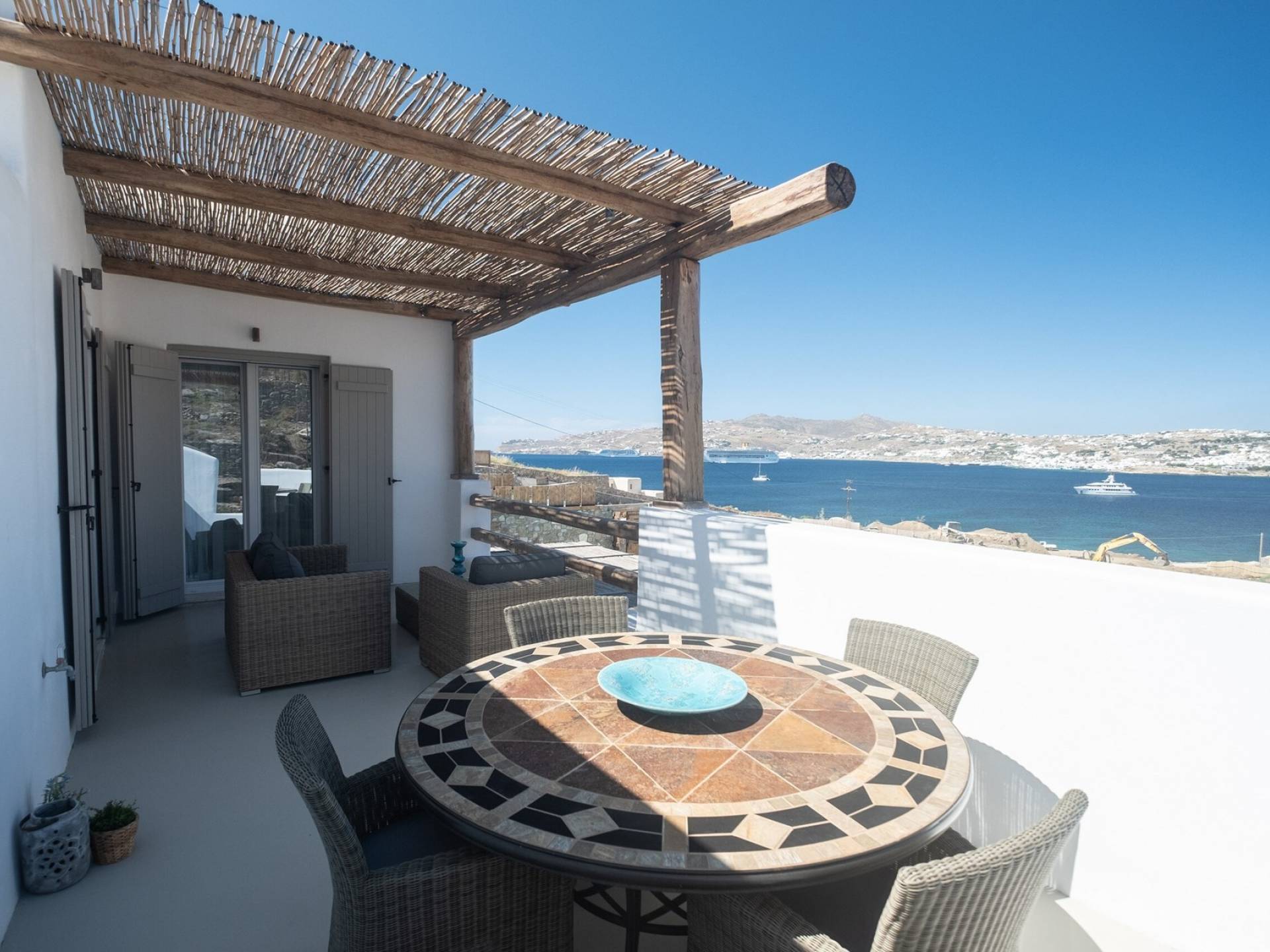Kanalia est situé à l'extrémité nord-ouest de l'île de Mykonos, à proximité de la magnifique plage d'Agios Ioannis. Agios Ioannis est considérée comme la plus belle plage de la côte sud-ouest de l'île avec son sable doux et ses eaux bleues cristallines. La plage offre une vue imprenable sur l'île de Délos. Kanalia est un excellent endroit pour s'évader. Pas trop près de la ville pour éviter les foules, mais toutes les commodités…Kanalia est situé à l'extrémité nord-ouest de l'île de Mykonos, à proximité de la magnifique plage d'Agios Ioannis. Agios Ioannis est considérée comme la plus belle plage de la côte sud-ouest de l'île avec son sable doux et ses eaux bleues cristallines. La plage offre une vue imprenable sur l'île de Délos. Kanalia est un excellent endroit pour s'évader. Pas trop près de la ville pour éviter les foules, mais toutes les commodités…