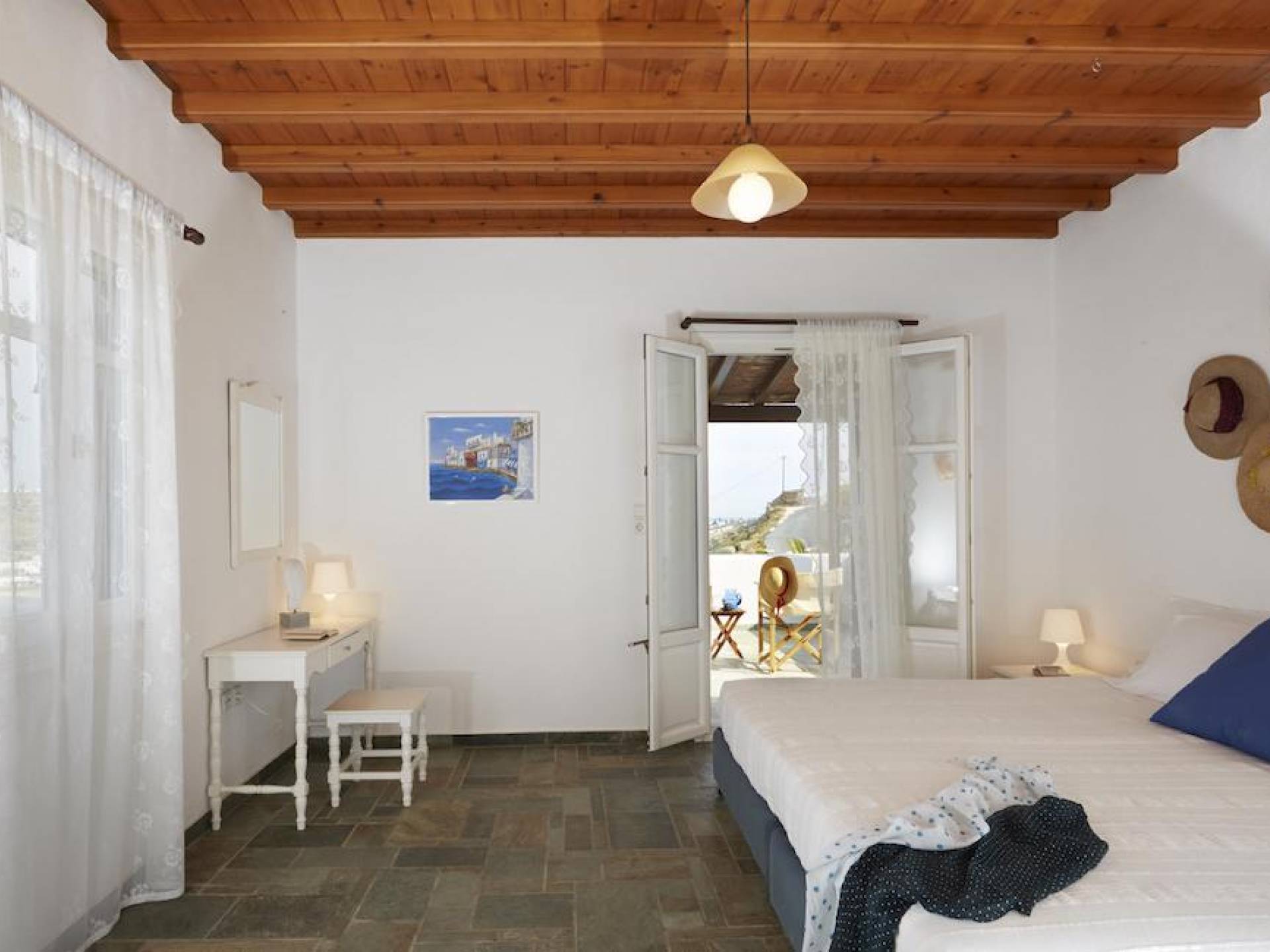 voir plusLa plage d'Ornos Mykonos est située à 2,5 km près de Chora Mykonos et cela en fait la plage la plus proche de la capitale, avec du sable fin et des chaises longues / parasols à louer; c'est une très belle plage mais, malheureusement, elle est souvent surpeuplée en raison de sa proximité avec la ville. Une école de plongée, ainsi que des écoles de ski de mer et de planche à voile, se trouvent sur la plage pour les amateurs de sports nautiques. C'est une plage assez active. Sur la rive de la baie, vous trouverez un grand complexe hôtelier qui comprend une variété de restaurants et de bars. Ornos est accessible en bus local, au départ de la capitale. Son emplacement lui donne une vue privilégiée sur les maisons blanchies à la chaux construites en amphithéâtre sur la colline.