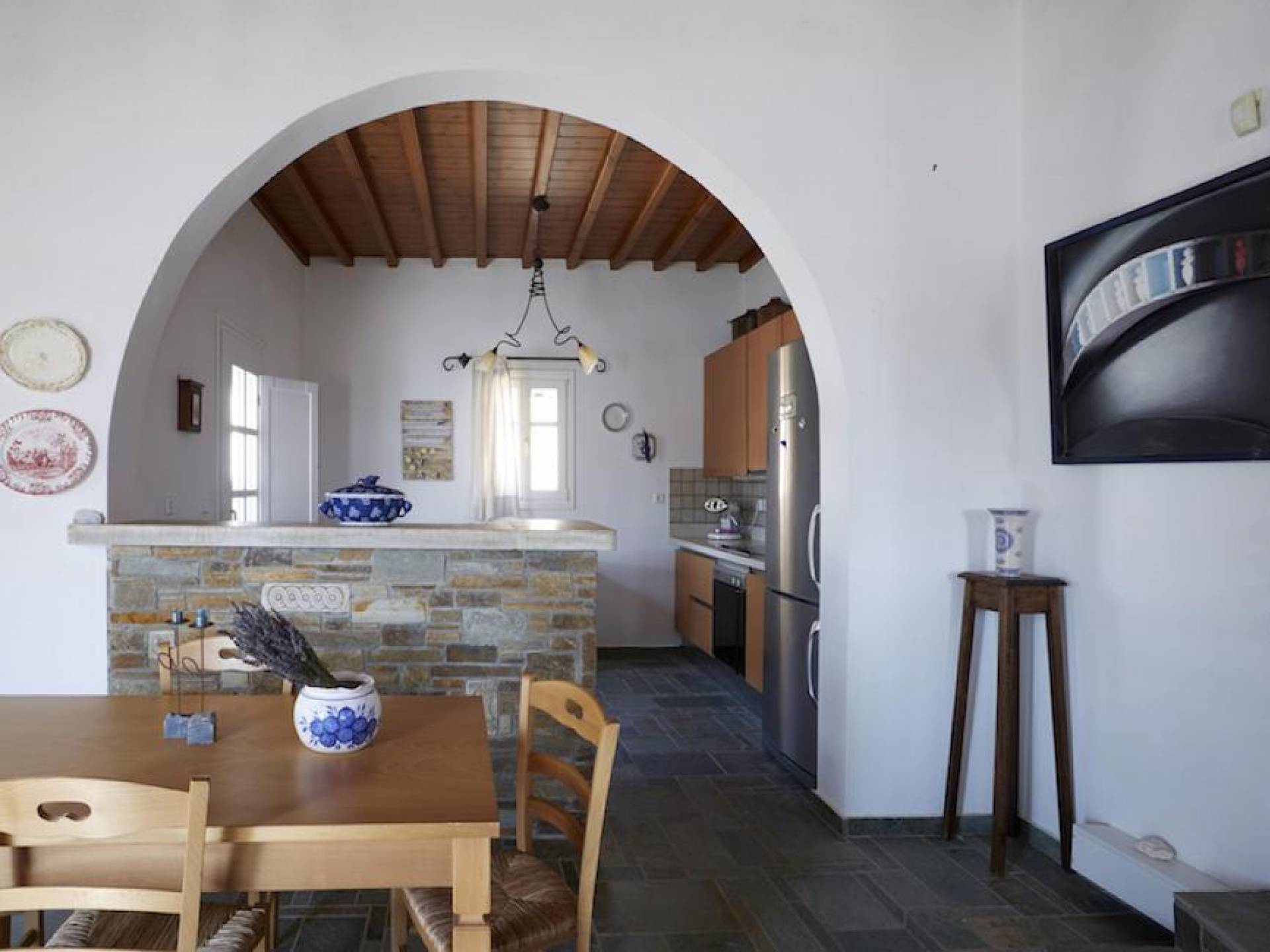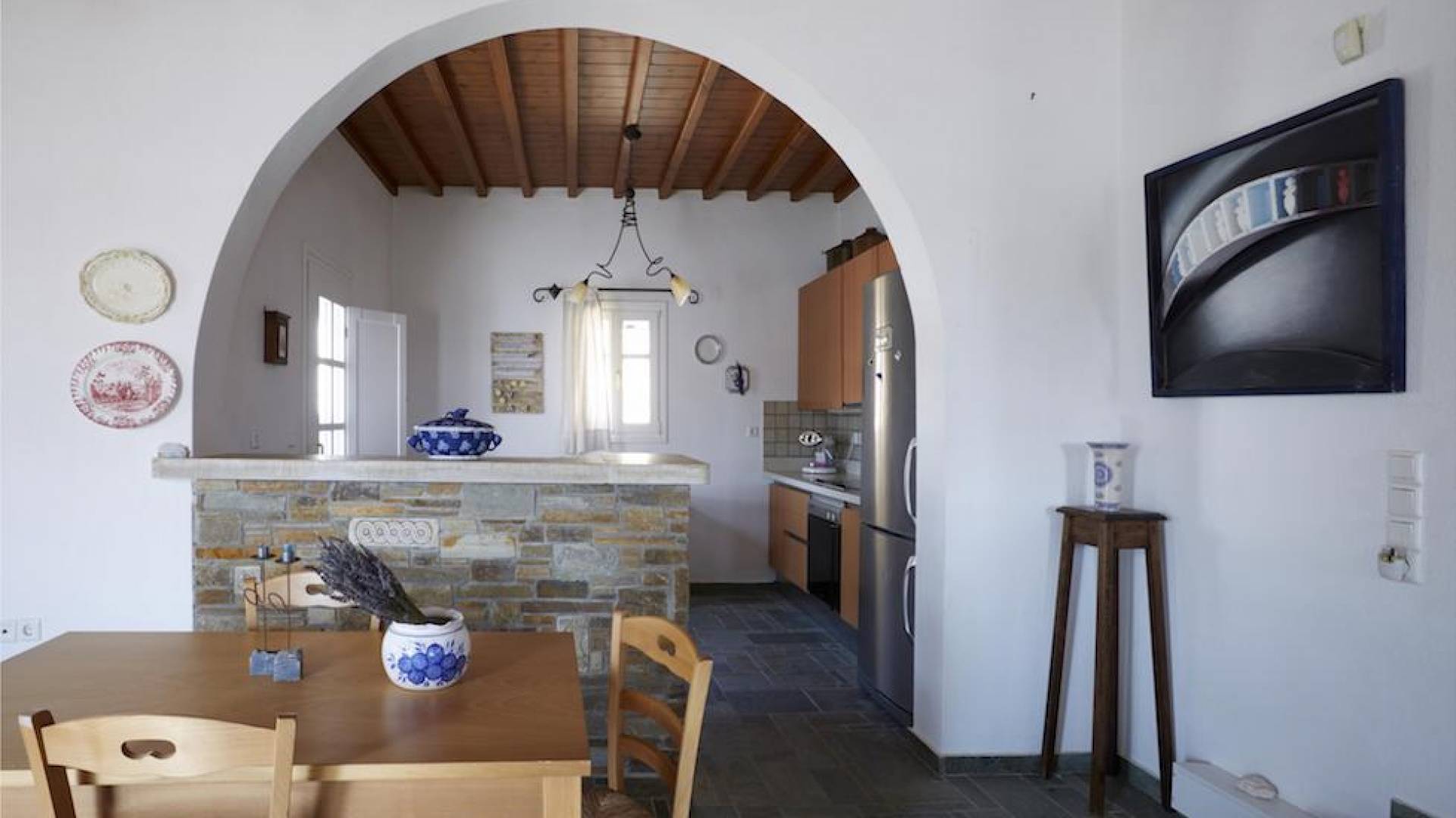 La plage d'Ornos Mykonos est située à 2,5 km près de Chora Mykonos et cela en fait la plage la plus proche de la capitale, avec du sable fin et des chaises longues / parasols à louer; c'est une très belle plage mais, malheureusement, elle est souvent surpeuplée en raison de sa proximité avec la ville. Une école de plongée, ainsi que des écoles de ski de mer et de planche à voile, se trouvent sur la plage pour les amateurs de sports nautiques. C'est une plage assez active. Sur la rive de la baie, vous trouverez un grand complexe hôtelier qui comprend une variété de restaurants et de bars. Ornos est accessible en bus local, au départ de la capitale. Son emplacement lui donne une vue privilégiée sur les maisons blanchies à la chaux construites en amphithéâtre sur la colline.