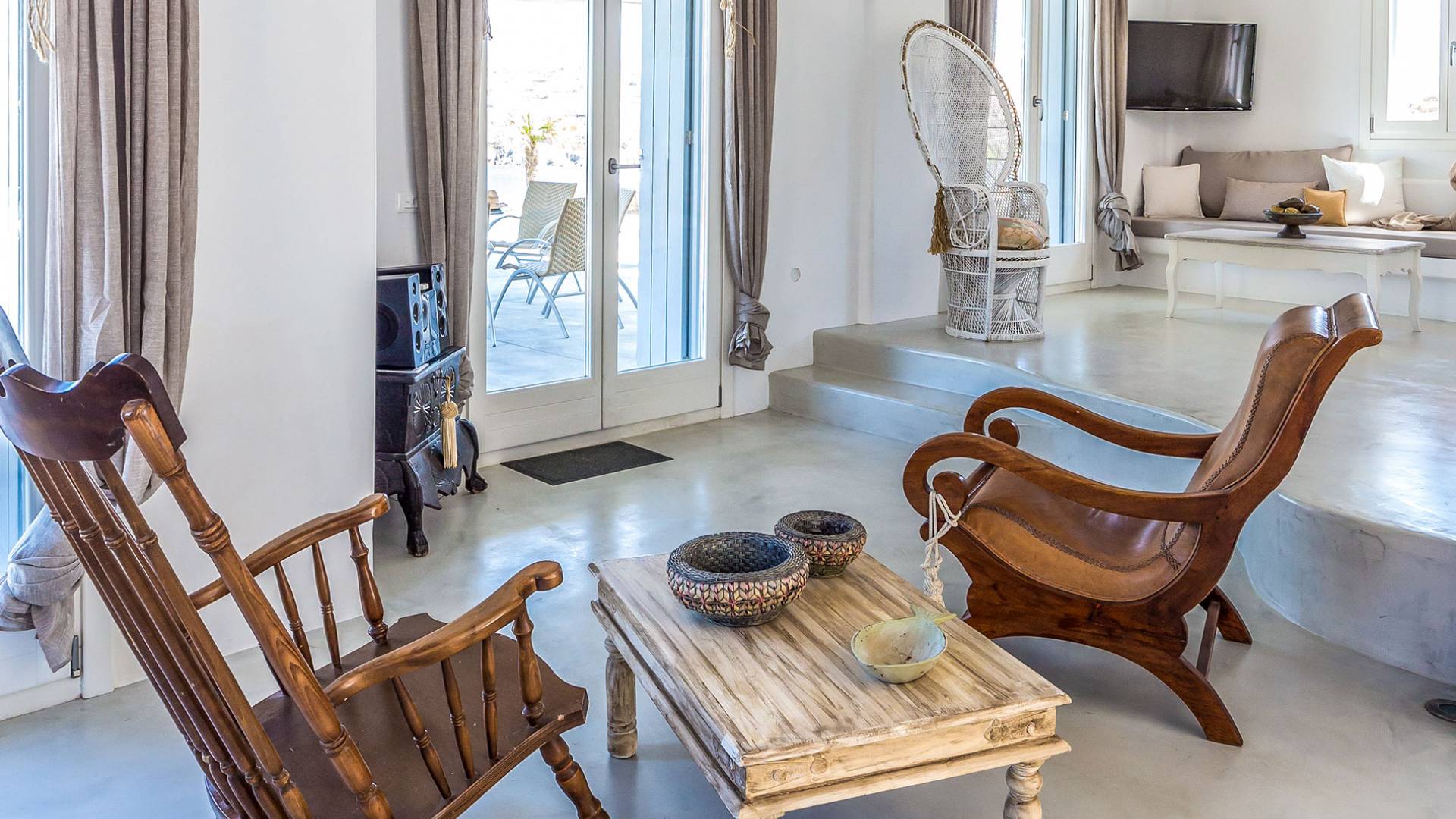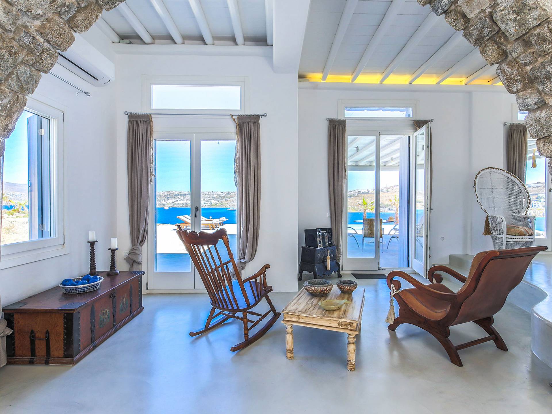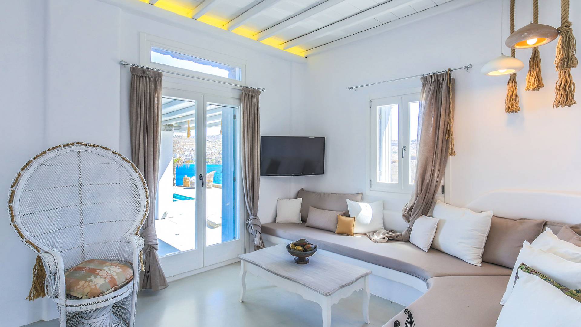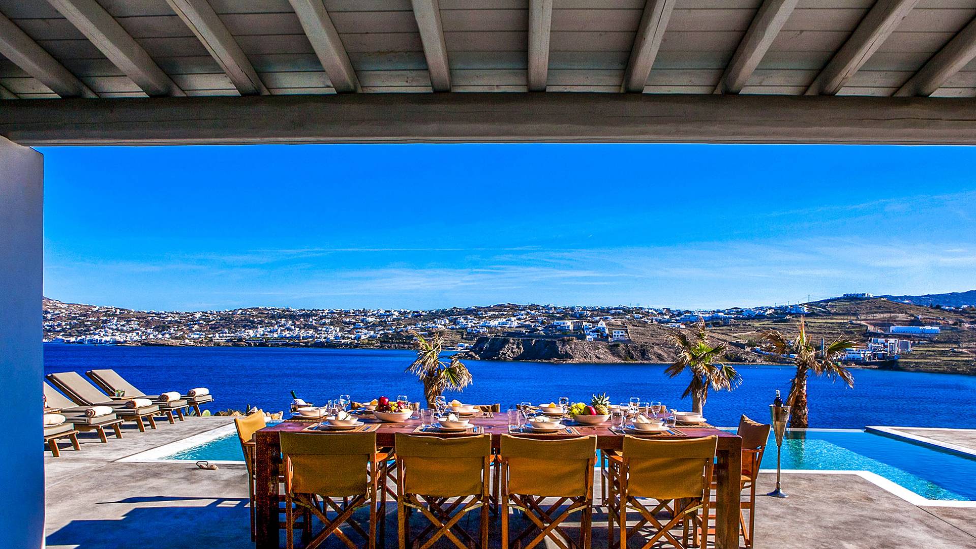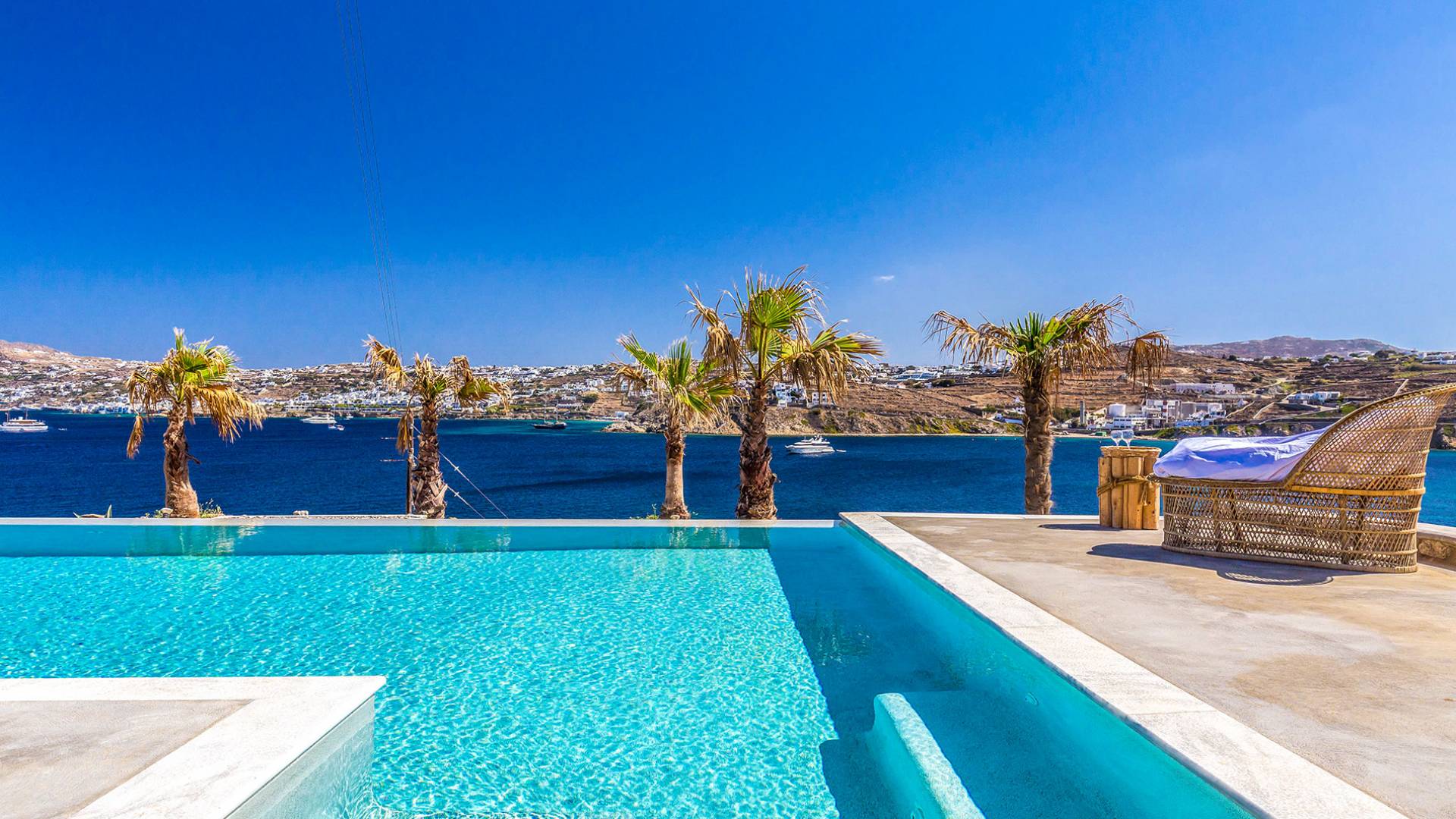 Chaque villa dispose d'une grande et élégante piscine à débordement de 30 m², construite avec des galets africains de haute qualité. Ces derniers sont entourés d'une spacieuse terrasse ensoleillée qui comprend un grand salon extérieur et ombragé par une pergola équipé de canapés confortables avec des coussins, des transats, des chaises longues et une grande table à manger qui prédispose les clients à savourer un délicieux repas ou un cocktail tout en regardant le majestueux lever de soleil. , écoutant les sons de la mer et surplombant la Petite Venise de Mykonos.