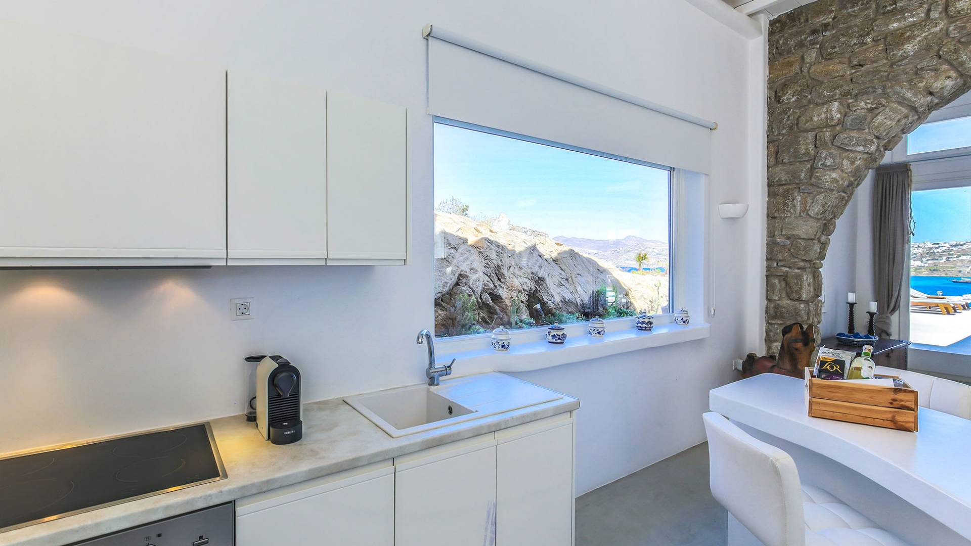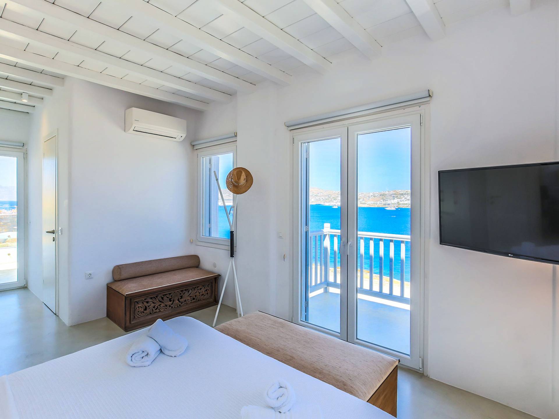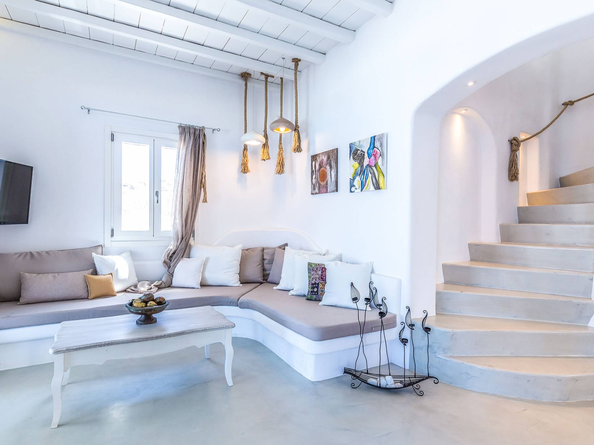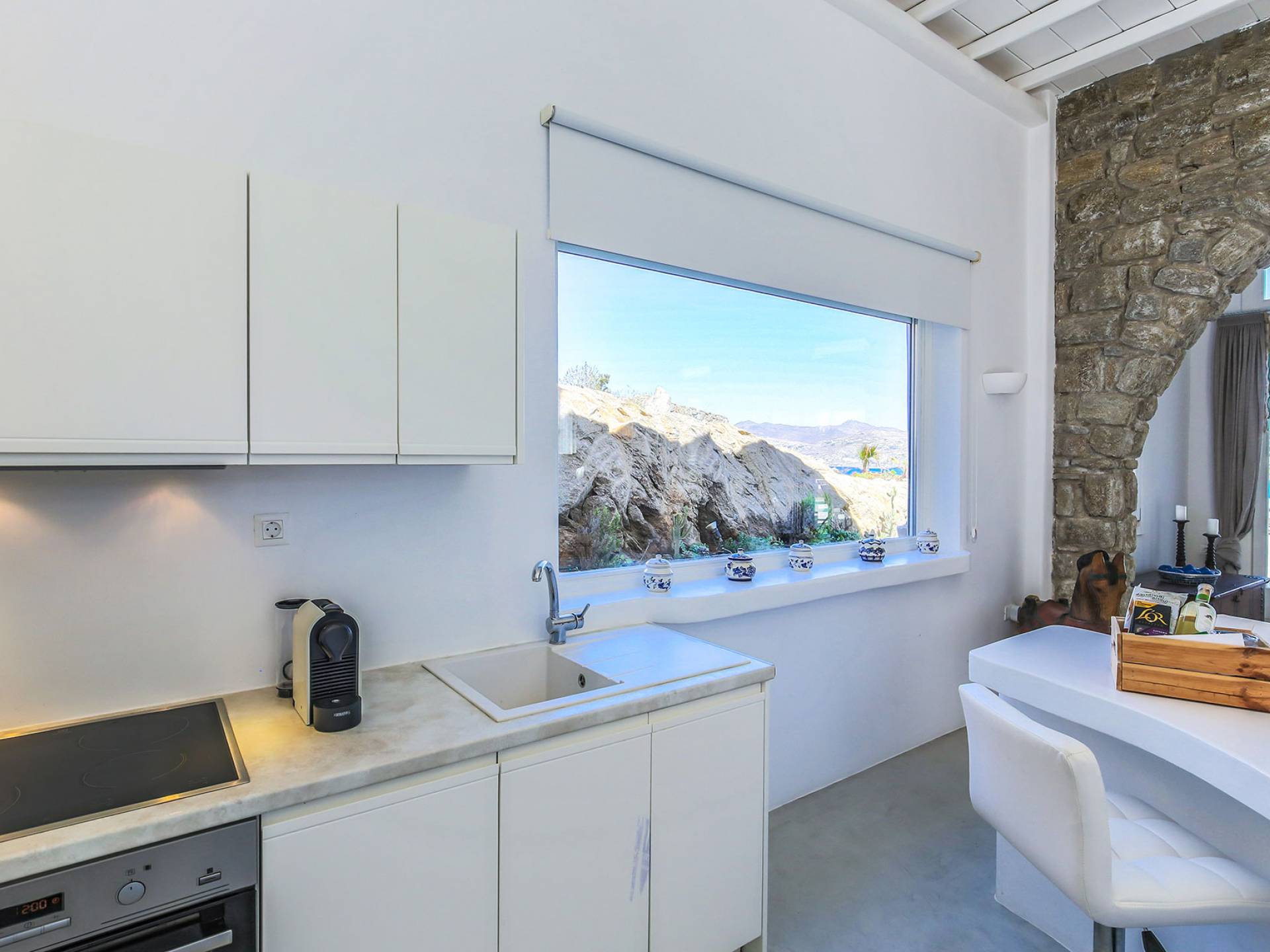 Chaque Villa est divisée en deux niveaux. Une propriété de 160 mètres carrés sur deux niveaux, tout en blanc, perchée sur une colline avec une vue panoramique à couper le souffle sur la mer Égée, offrant un grand espace de vie décloisonné à l'intérieur et à l'extérieur et offrant intimité et isolement dans un endroit très idyllique. Le rez-de-chaussée se compose d'un salon élégant et lumineux et d'une charmante salle à manger spacieuse, toutes deux ayant un accès direct à la piscine à débordement, une cuisine entièrement équipée, une spacieuse chambre king-size avec une salle de bain entièrement équipée et une grande véranda au espace piscine qui offre une vue magnifique sur la mer et la ville. Le niveau supérieur se compose d'une chambre principale king-size avec une salle de bains privative entièrement équipée, de deux (2) chambres queen-size et d'une autre salle de bains entièrement équipée, qui offrent toutes une vue magnifique sur la mer et la ville.