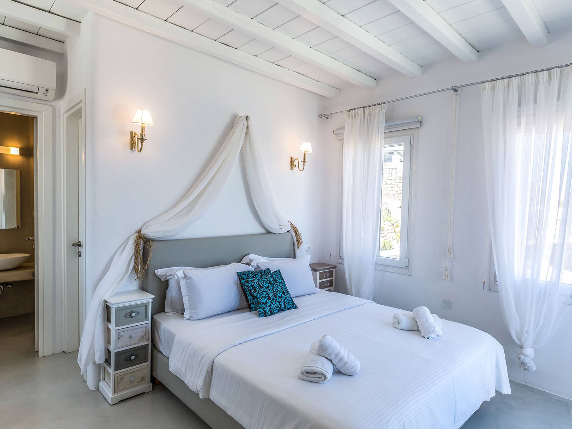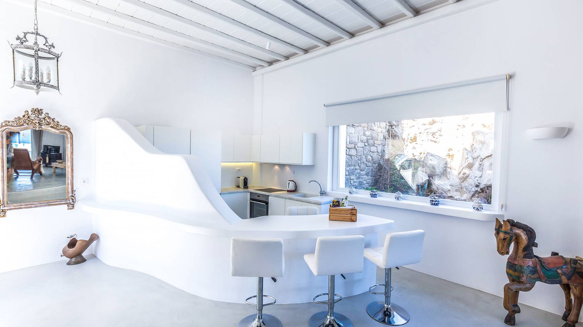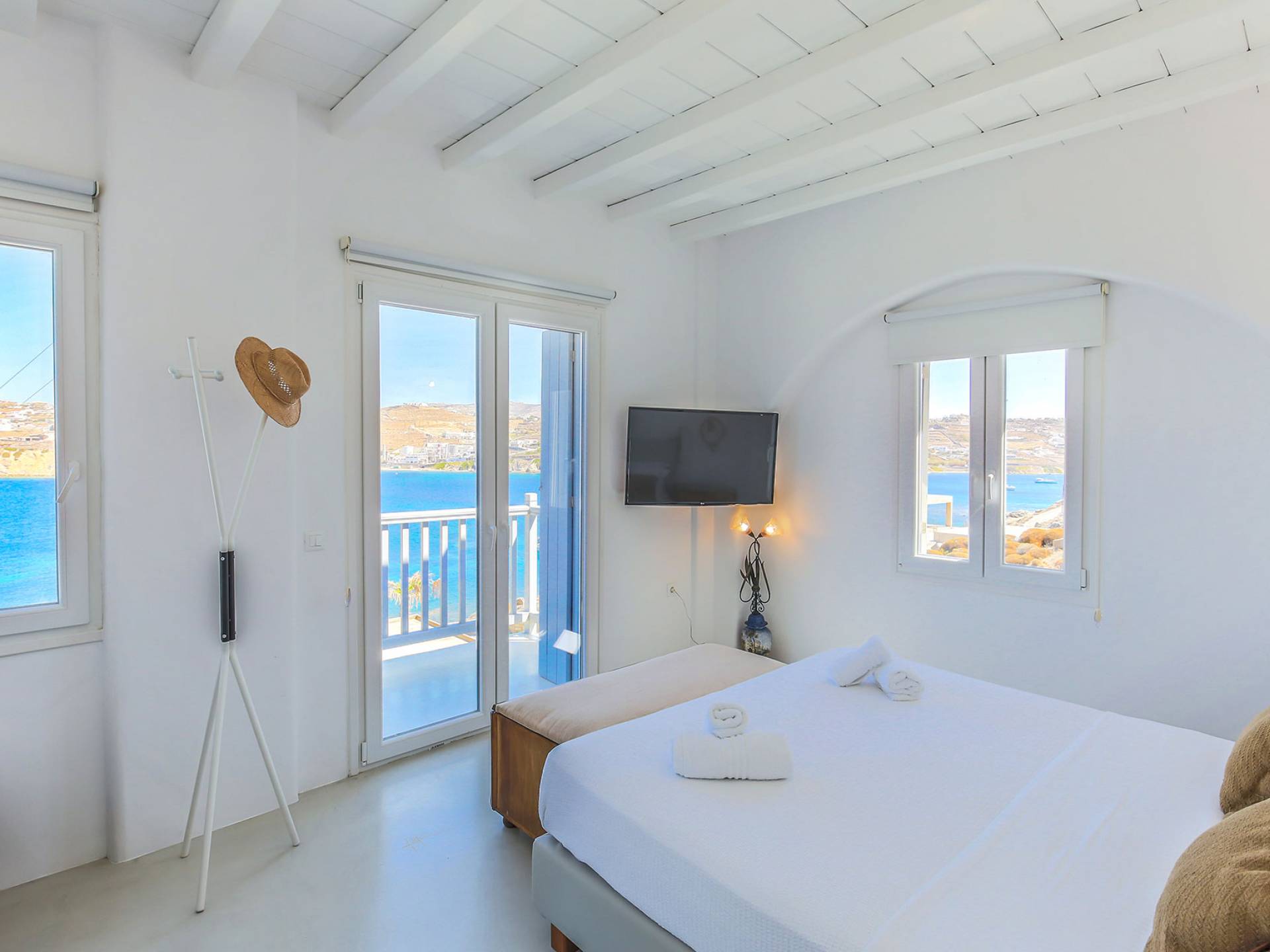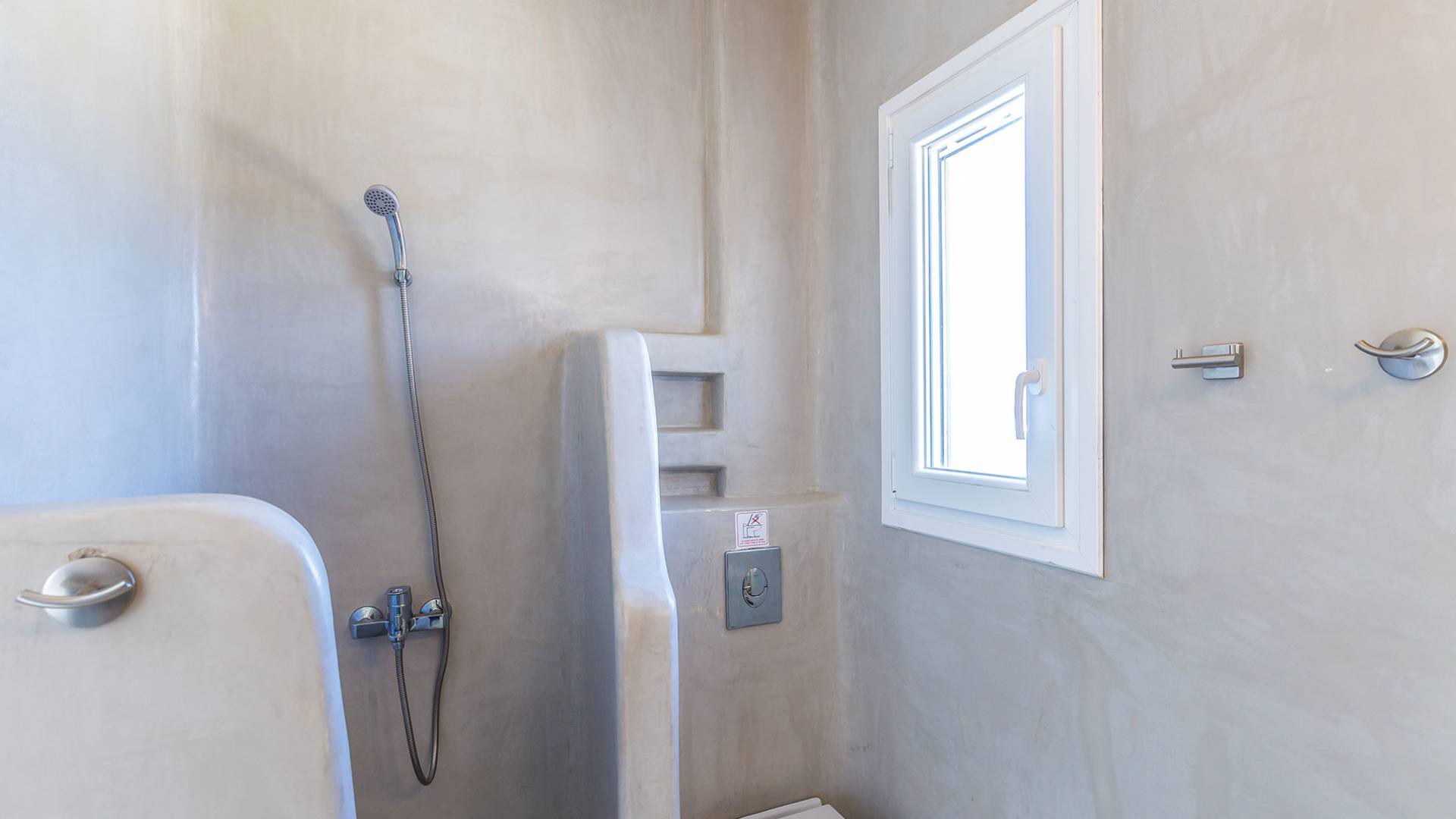 Chaque Villa est divisée en deux niveaux. Une propriété de 160 mètres carrés sur deux niveaux, tout en blanc, perchée sur une colline avec une vue panoramique à couper le souffle sur la mer Égée, offrant un grand espace de vie décloisonné à l'intérieur et à l'extérieur et offrant intimité et isolement dans un endroit très idyllique. Le rez-de-chaussée se compose d'un salon élégant et lumineux et d'une charmante salle à manger spacieuse, toutes deux ayant un accès direct à la piscine à débordement, une cuisine entièrement équipée, une spacieuse chambre king-size avec une salle de bain entièrement équipée et une grande véranda au espace piscine qui offre une vue magnifique sur la mer et la ville. Le niveau supérieur se compose d'une chambre principale king-size avec une salle de bains privative entièrement équipée, de deux (2) chambres queen-size et d'une autre salle de bains entièrement équipée, qui offrent toutes une vue magnifique sur la mer et la ville.