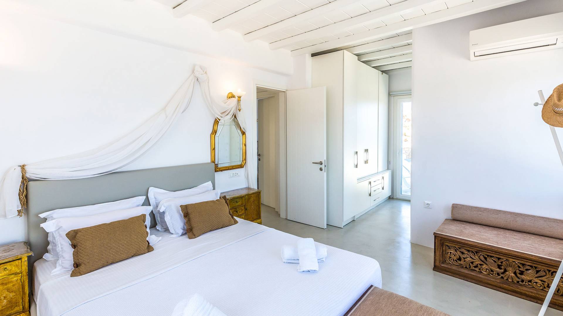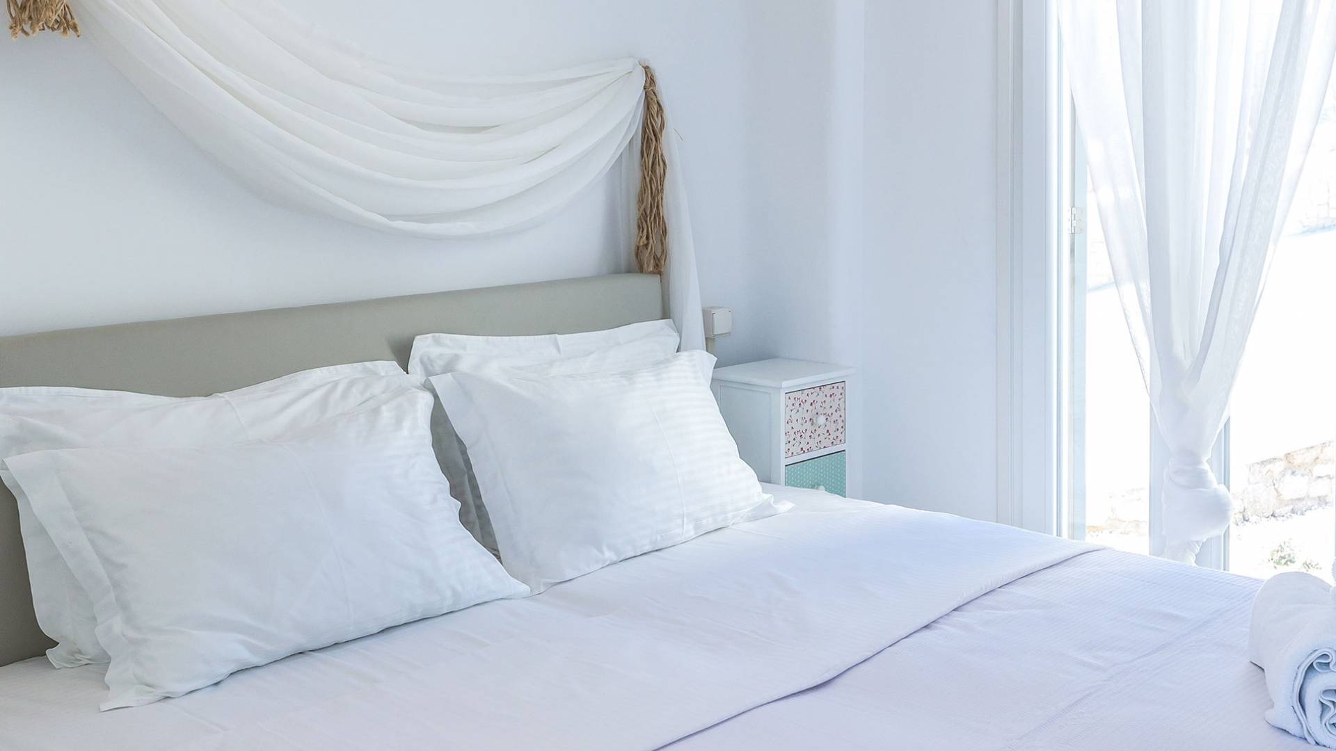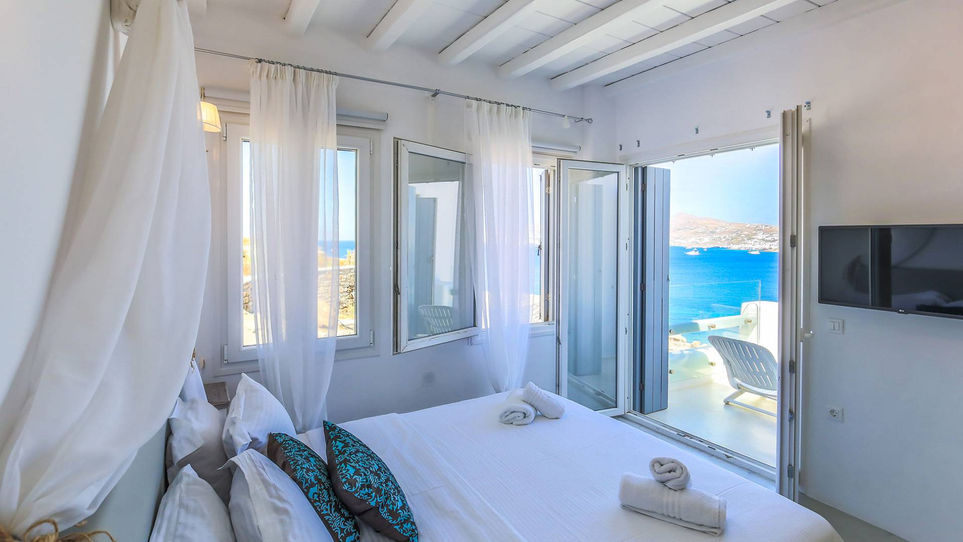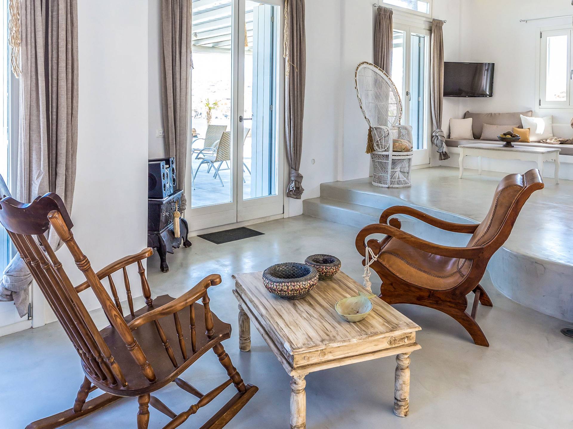 Chaque Villa est divisée en deux niveaux. Une propriété de 160 mètres carrés sur deux niveaux, tout en blanc, perchée sur une colline avec une vue panoramique à couper le souffle sur la mer Égée, offrant un grand espace de vie décloisonné à l'intérieur et à l'extérieur et offrant intimité et isolement dans un endroit très idyllique. Le rez-de-chaussée se compose d'un salon élégant et lumineux et d'une charmante salle à manger spacieuse, toutes deux ayant un accès direct à la piscine à débordement, une cuisine entièrement équipée, une spacieuse chambre king-size avec une salle de bain entièrement équipée et une grande véranda au espace piscine qui offre une vue magnifique sur la mer et la ville. Le niveau supérieur se compose d'une chambre principale king-size avec une salle de bains privative entièrement équipée, de deux (2) chambres queen-size et d'une autre salle de bains entièrement équipée, qui offrent toutes une vue magnifique sur la mer et la ville.