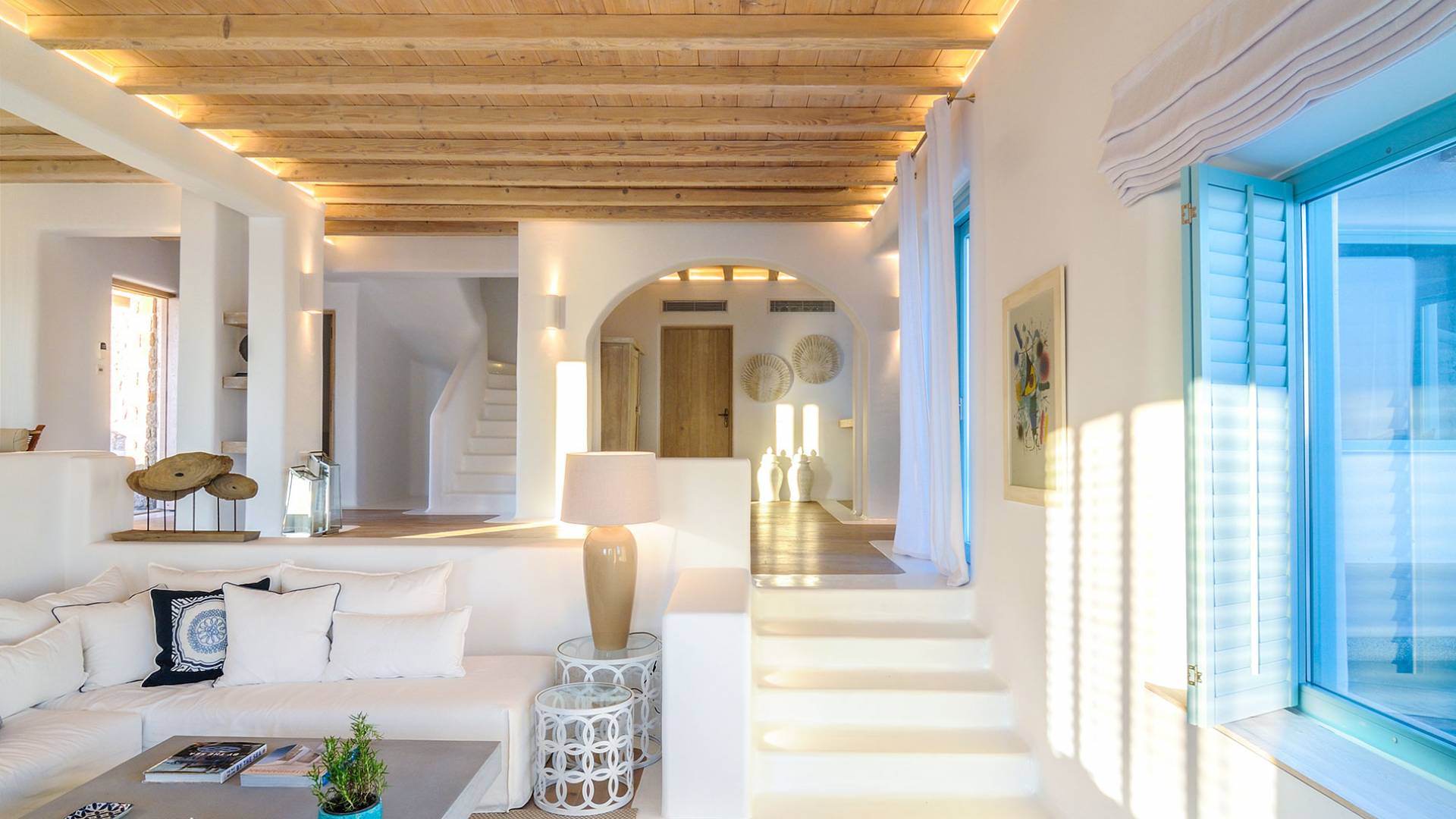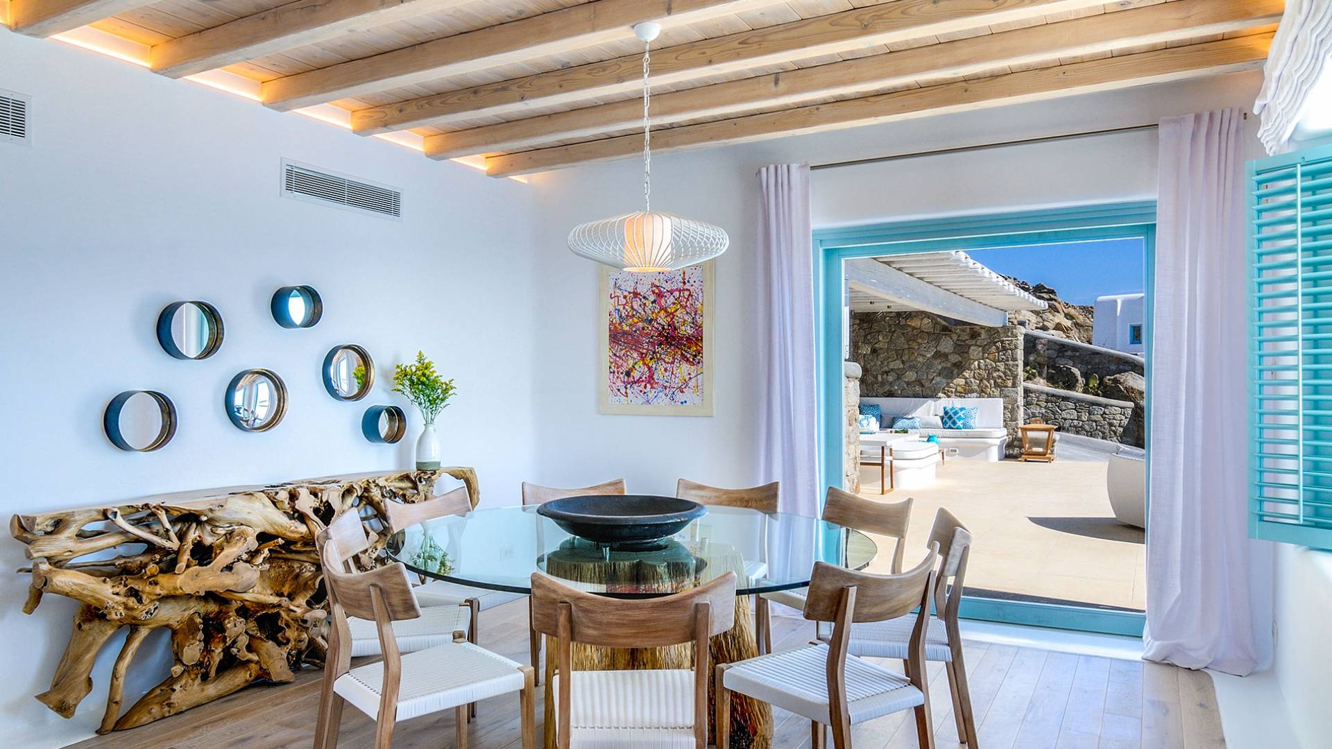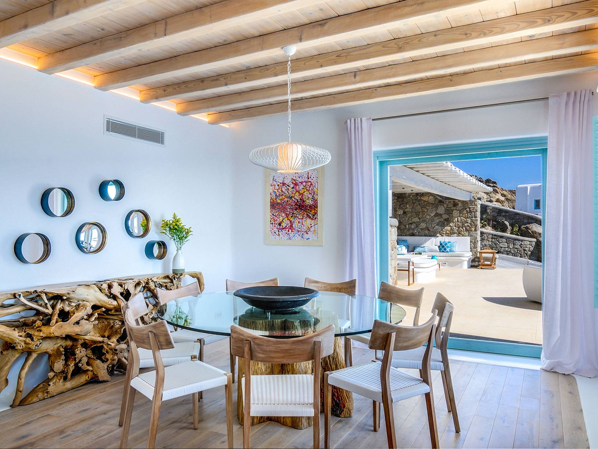 Les multiples espaces spacieux de la villa en font un choix idéal pour les grandes familles ou les groupes d'amis. La vue magnifique vous libérera des mauvaises pensées et du stress de la vie quotidienne et fera de votre séjour une expérience unique et mémorable. De merveilleuses vues sur les îles pittoresques de Delos et Rhenia et la vie insulaire enviable se fondent harmonieusement dans une maison magnifique qui embrasse ses résidents.