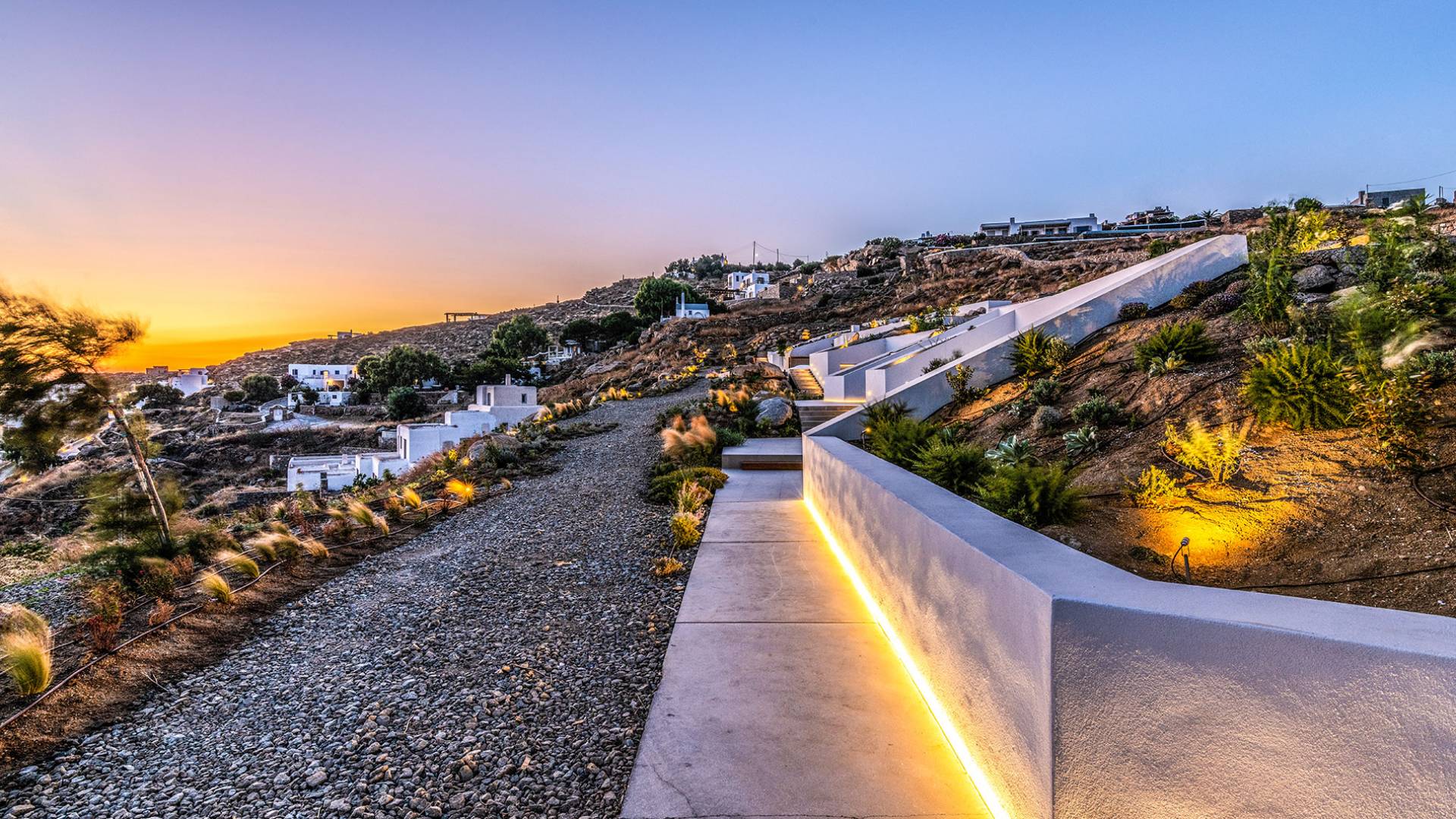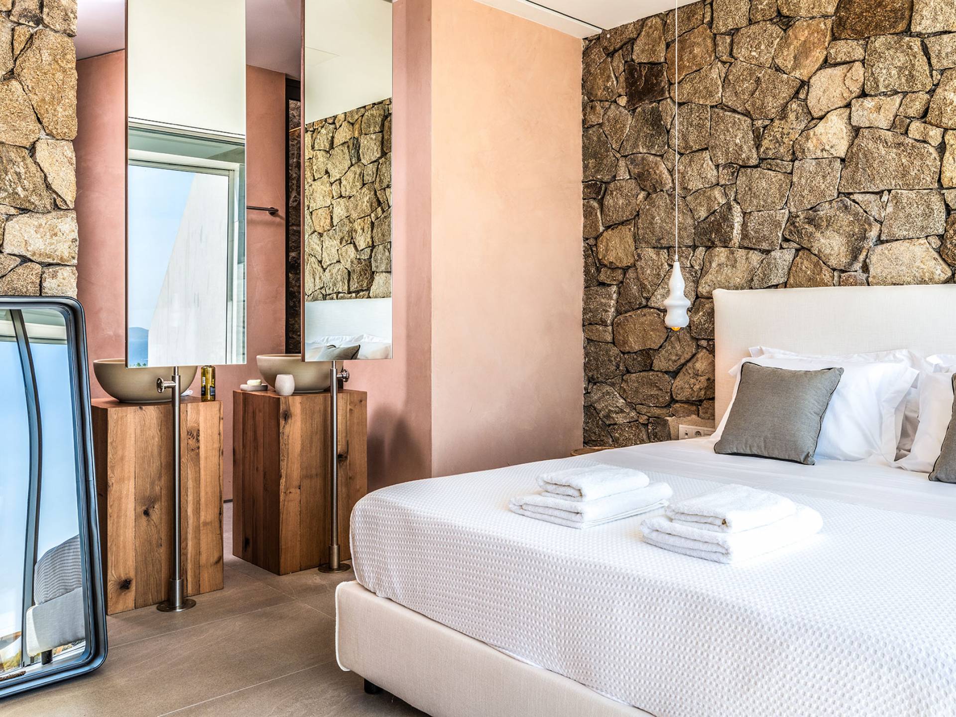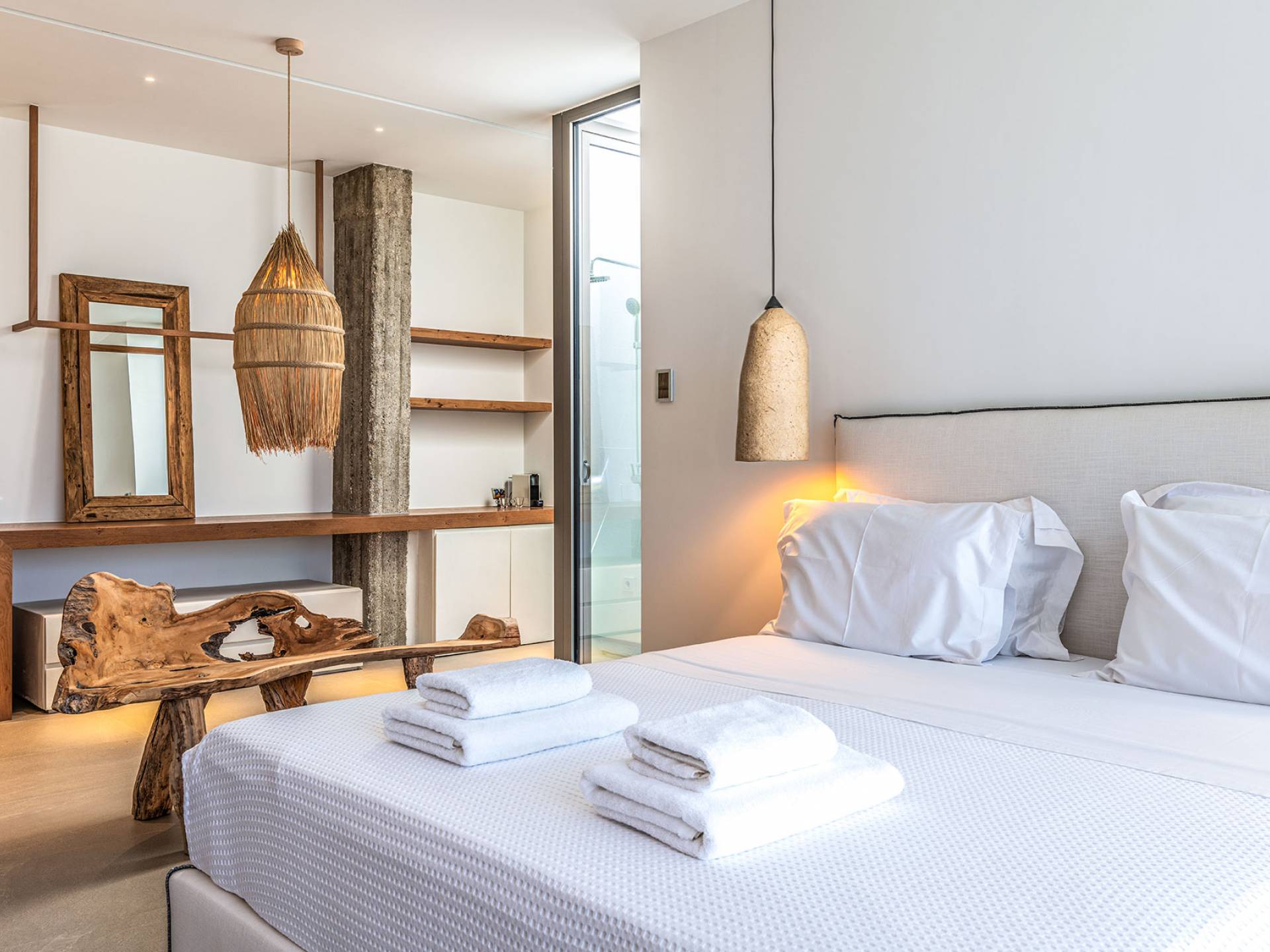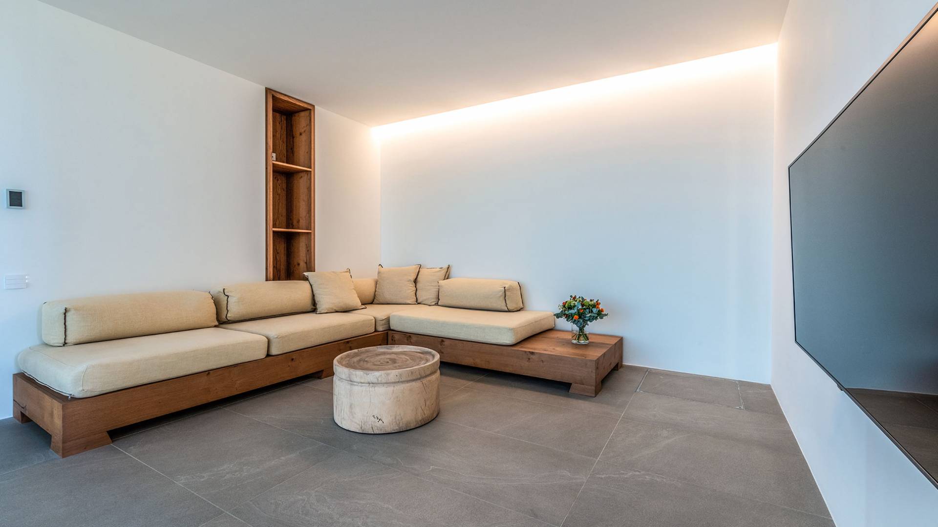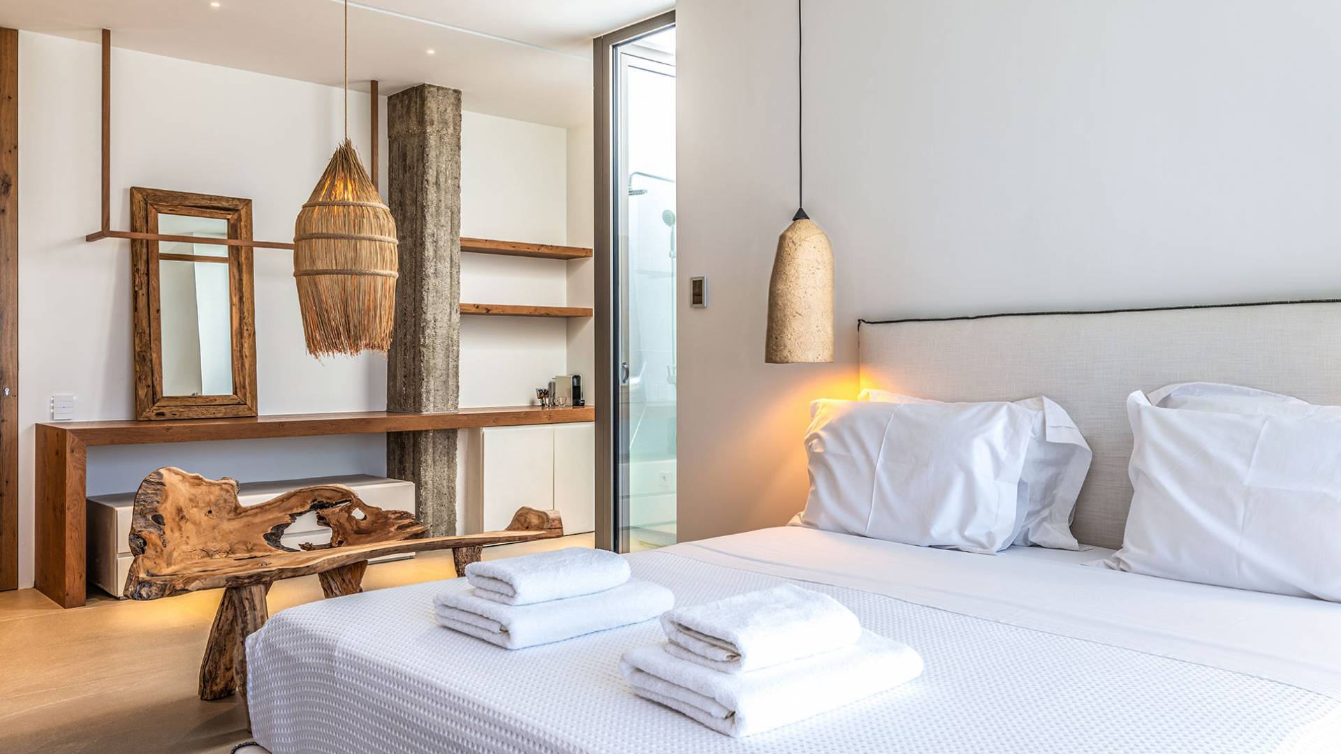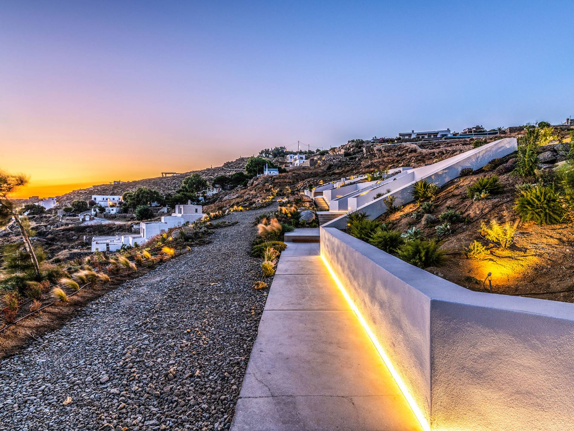 The Cove Villa Mykonos est une location de villa de luxe avec 6 chambres et une piscine privée. C'est une villa extraordinaire au concept architectural souterrain unique et à la décoration de style minimaliste avec des éléments en bois, dont la construction a été achevée en 2019. Elle peut accueillir confortablement jusqu'à 12 personnes et est située à proximité du centre de Mykonos (Chora) mais sur un terrain exceptionnellement privé et calme. emplacement à Tourlos, surplombant la baie d'Agios Stefanos. En raison de son design distinctif, chaque pièce de la propriété fait face à l'ouest de la mer Égée et bénéficie d'une vue imprenable sur le coucher de soleil sur la mer.