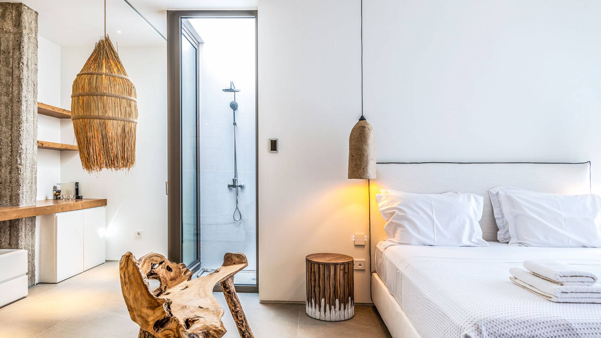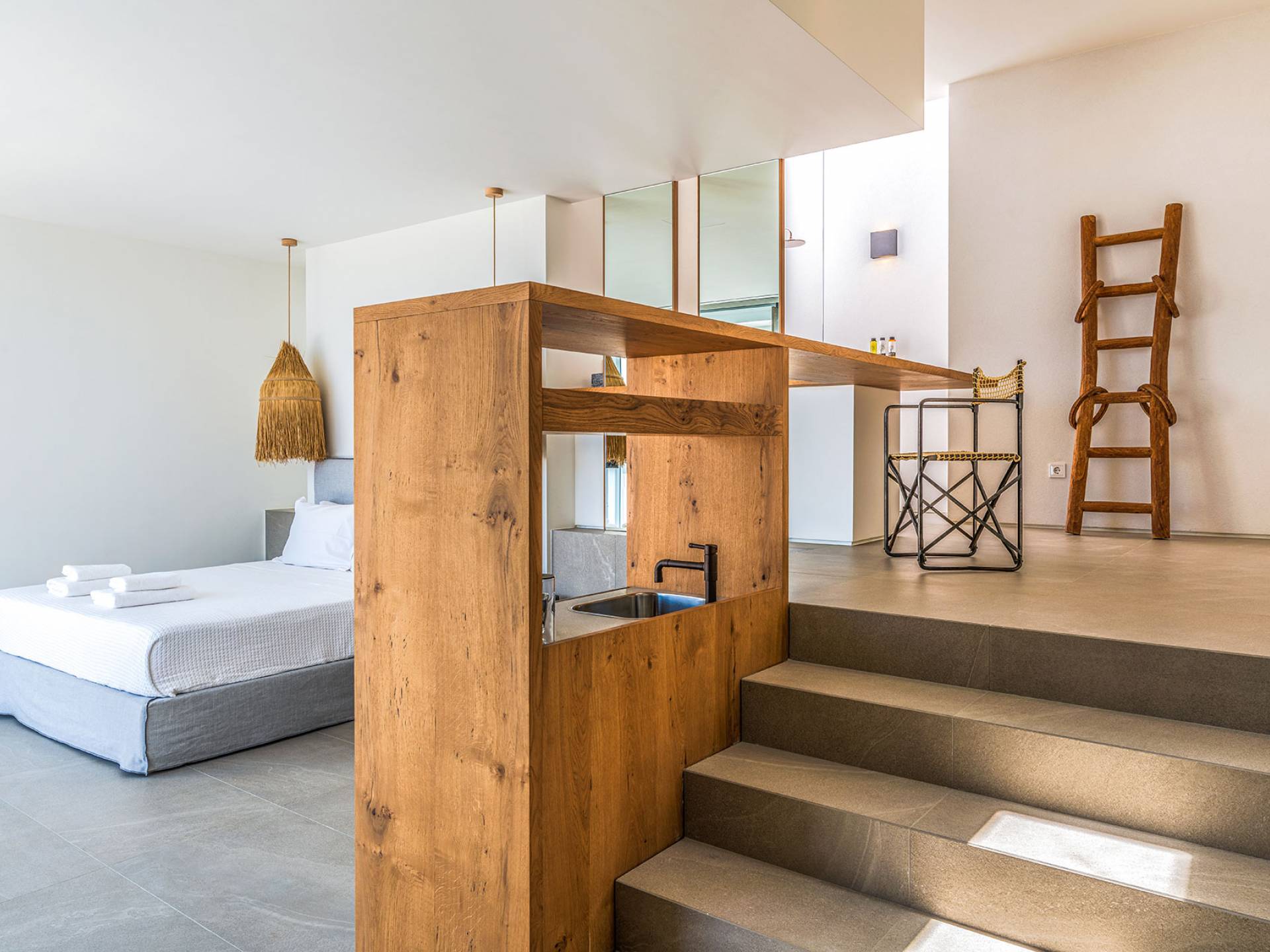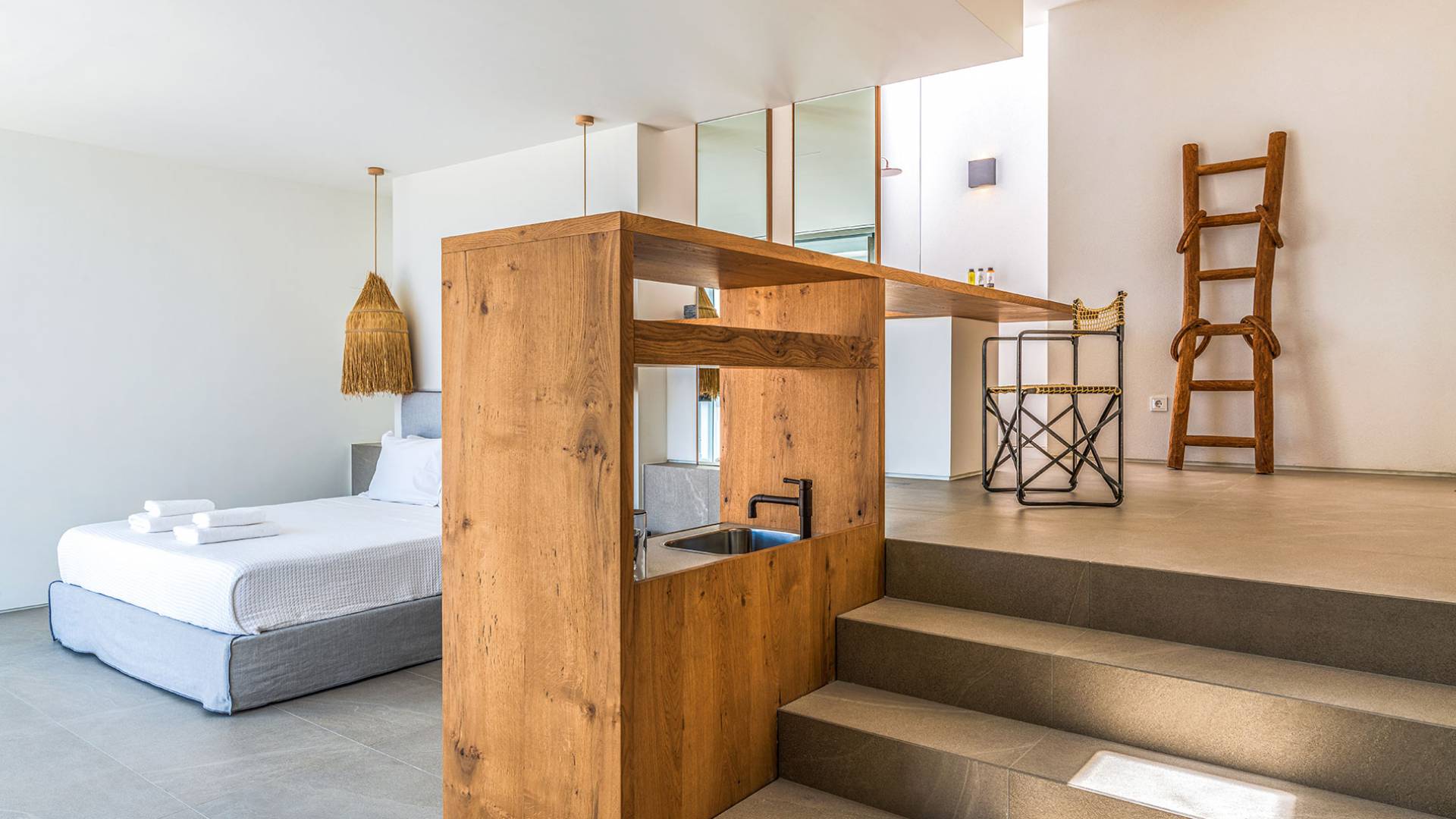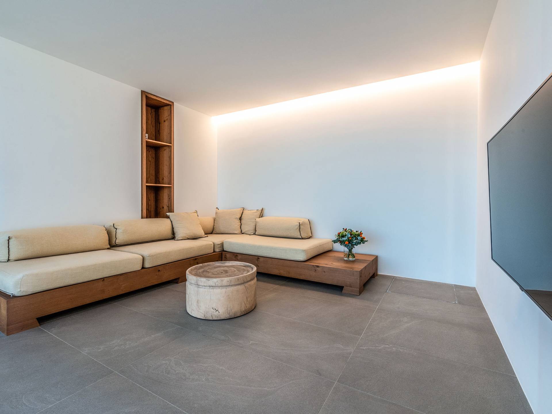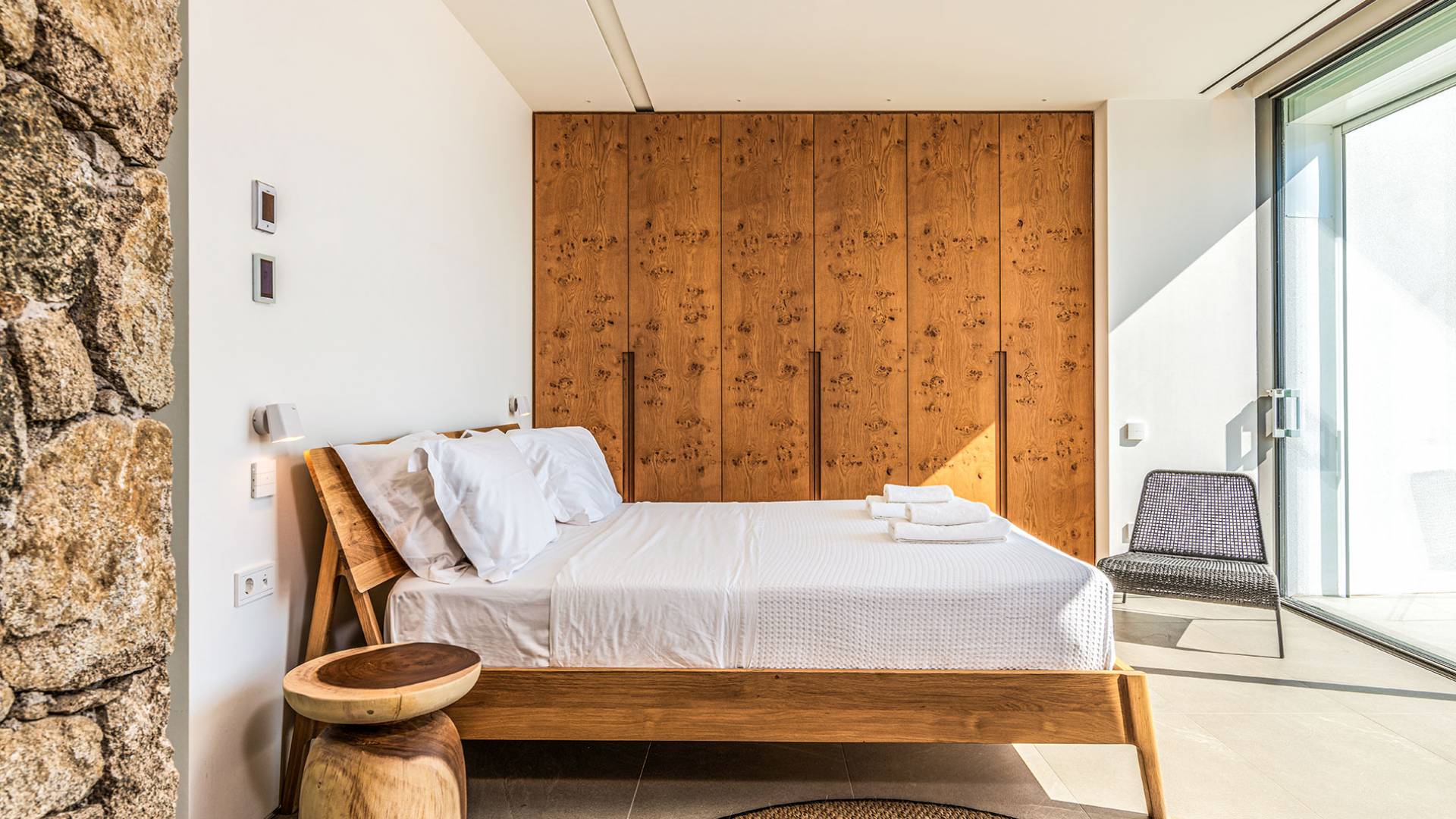 The Cove Villa Mykonos est une location de villa de luxe avec 6 chambres et une piscine privée. C'est une villa extraordinaire au concept architectural souterrain unique et à la décoration de style minimaliste avec des éléments en bois, dont la construction a été achevée en 2019. Elle peut accueillir confortablement jusqu'à 12 personnes et est située à proximité du centre de Mykonos (Chora) mais sur un terrain exceptionnellement privé et calme. emplacement à Tourlos, surplombant la baie d'Agios Stefanos. En raison de son design distinctif, chaque pièce de la propriété fait face à l'ouest de la mer Égée et bénéficie d'une vue imprenable sur le coucher de soleil sur la mer.