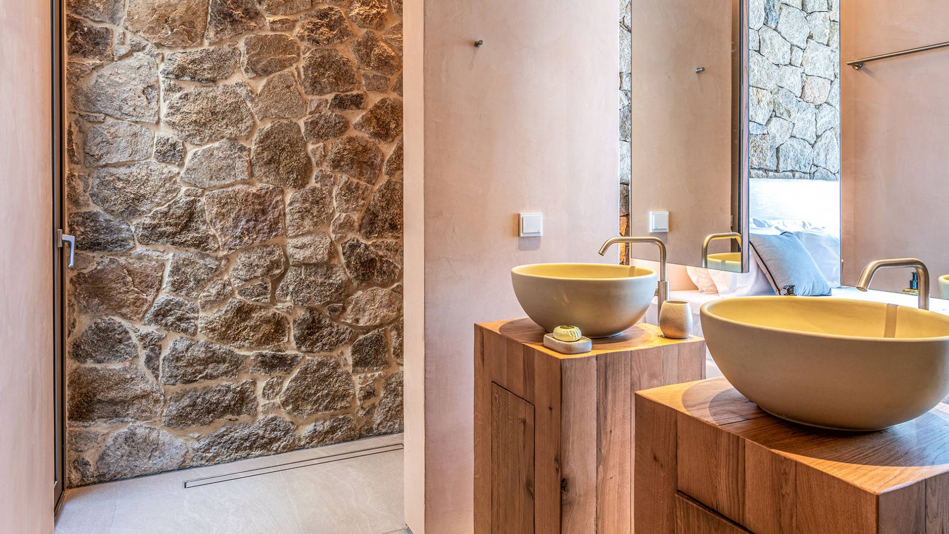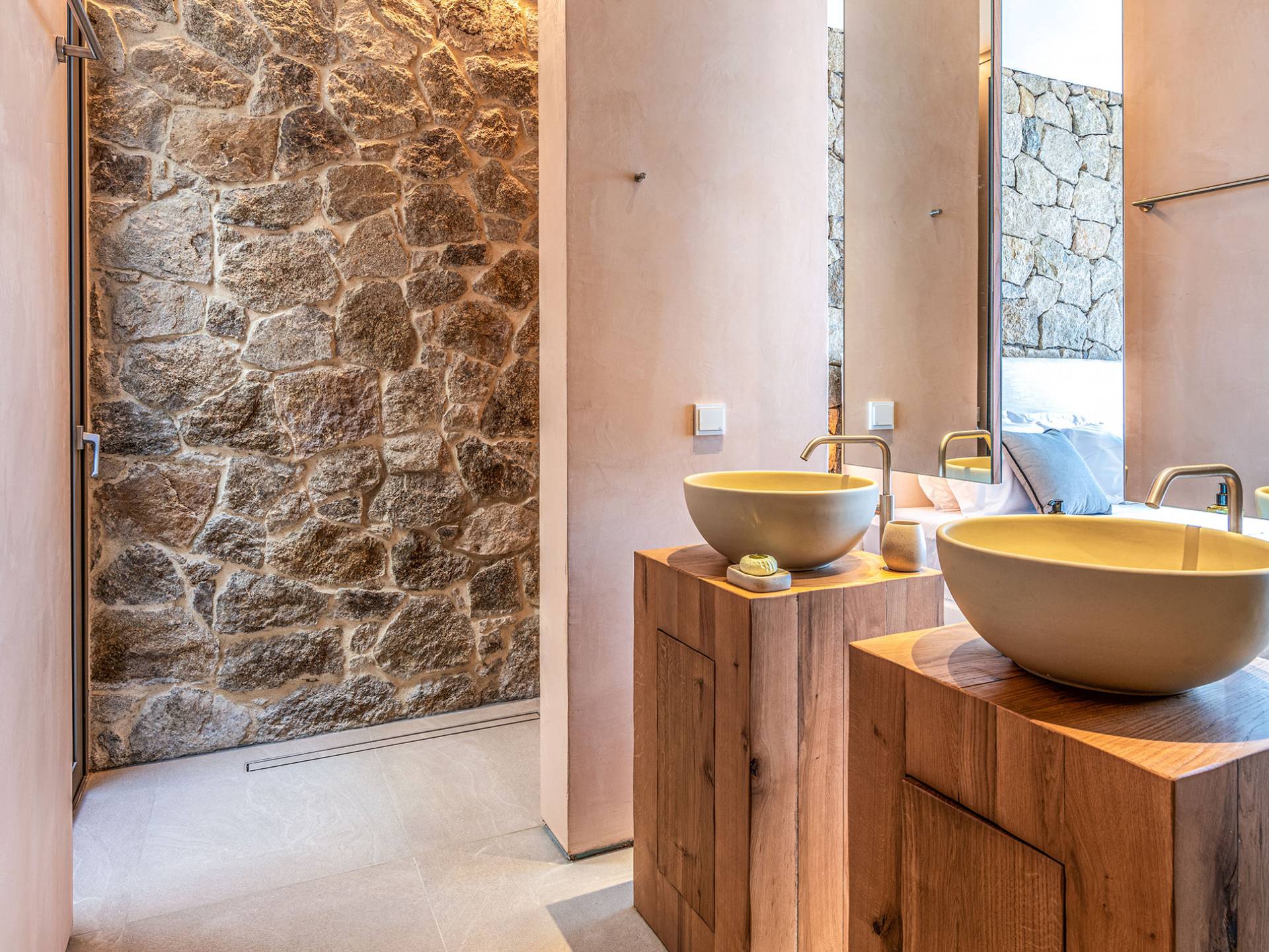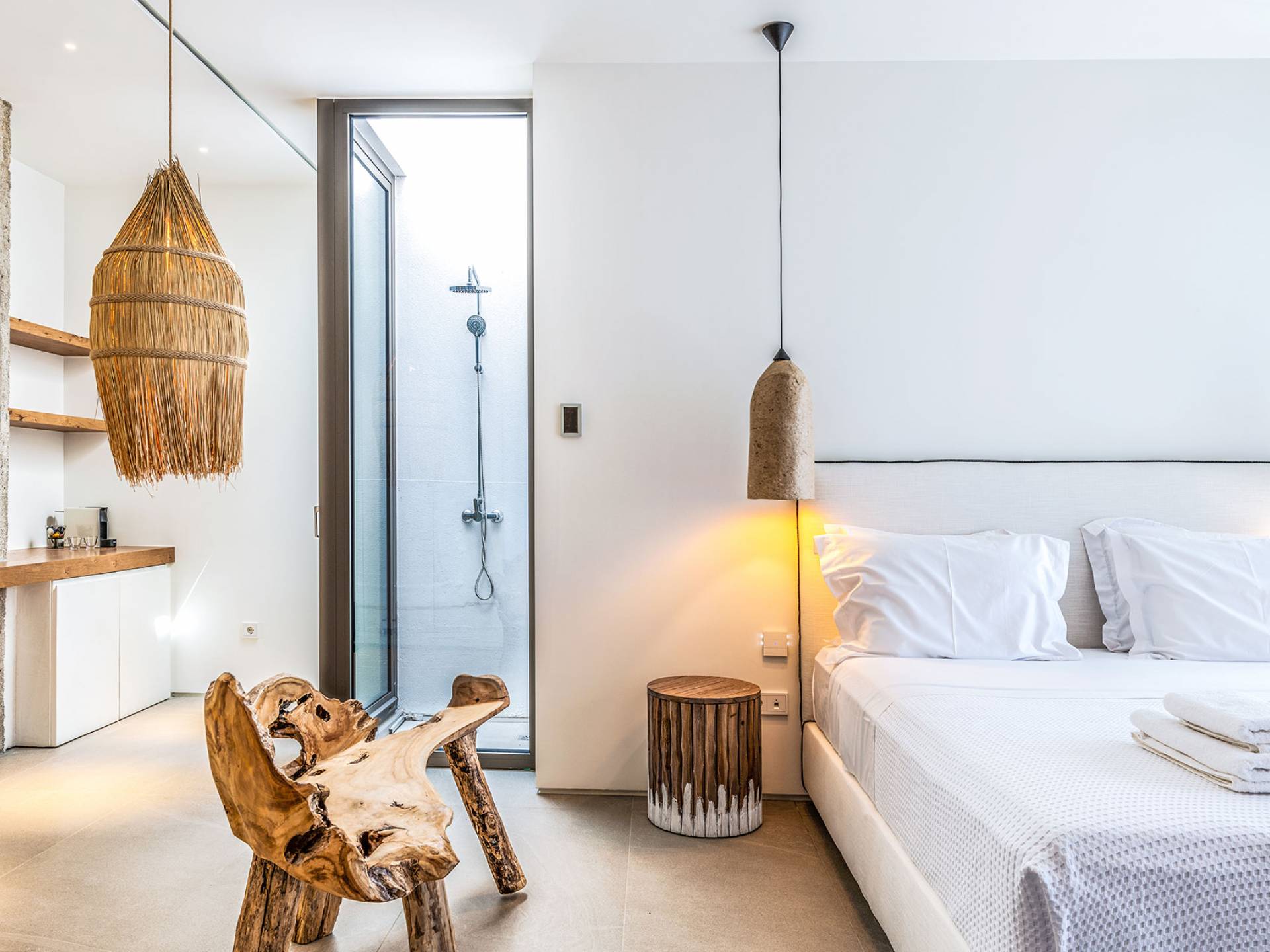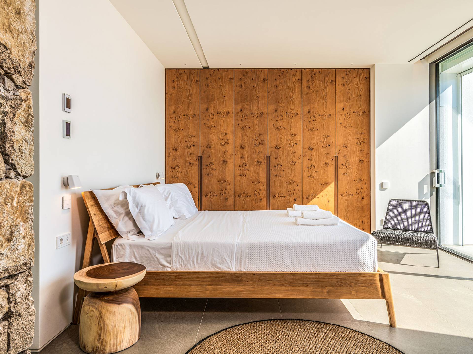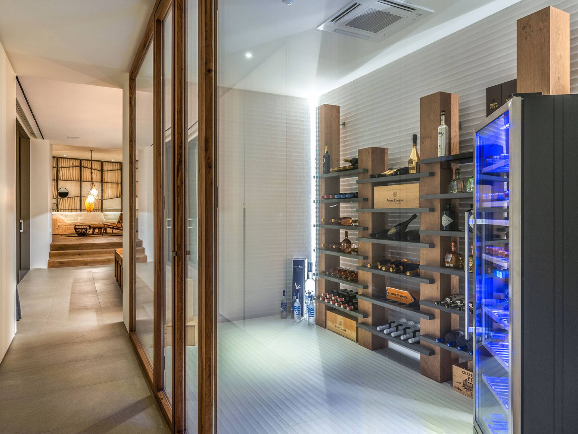 The Cove Villa Mykonos est une location de villa de luxe avec 6 chambres et une piscine privée. C'est une villa extraordinaire au concept architectural souterrain unique et à la décoration de style minimaliste avec des éléments en bois, dont la construction a été achevée en 2019. Elle peut accueillir confortablement jusqu'à 12 personnes et est située à proximité du centre de Mykonos (Chora) mais sur un terrain exceptionnellement privé et calme. emplacement à Tourlos, surplombant la baie d'Agios Stefanos. En raison de son design distinctif, chaque pièce de la propriété fait face à l'ouest de la mer Égée et bénéficie d'une vue imprenable sur le coucher de soleil sur la mer.