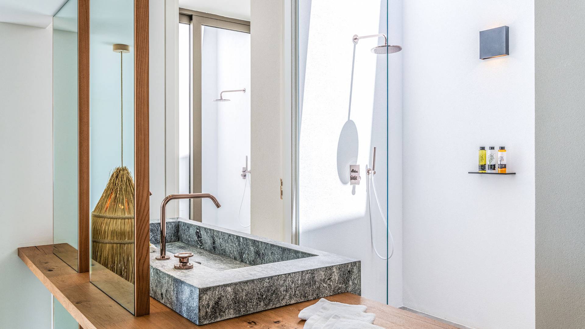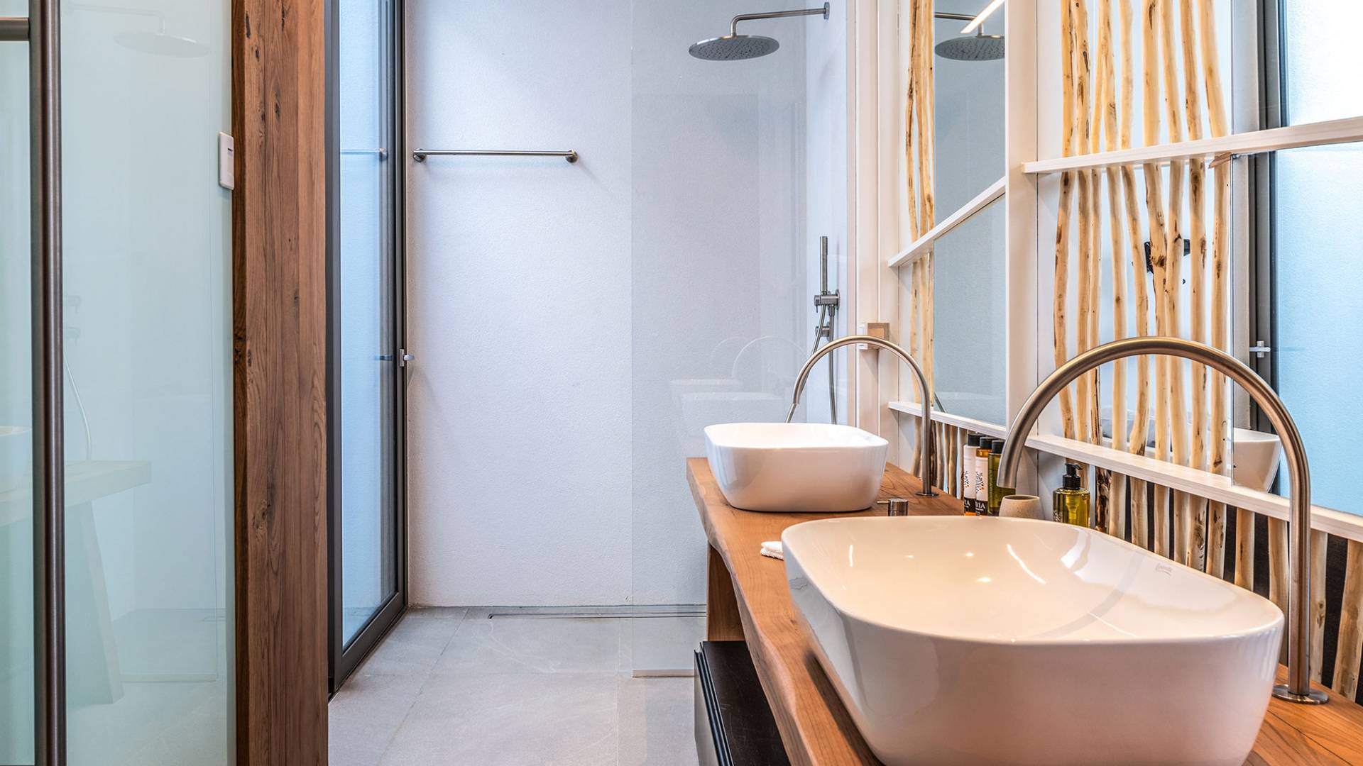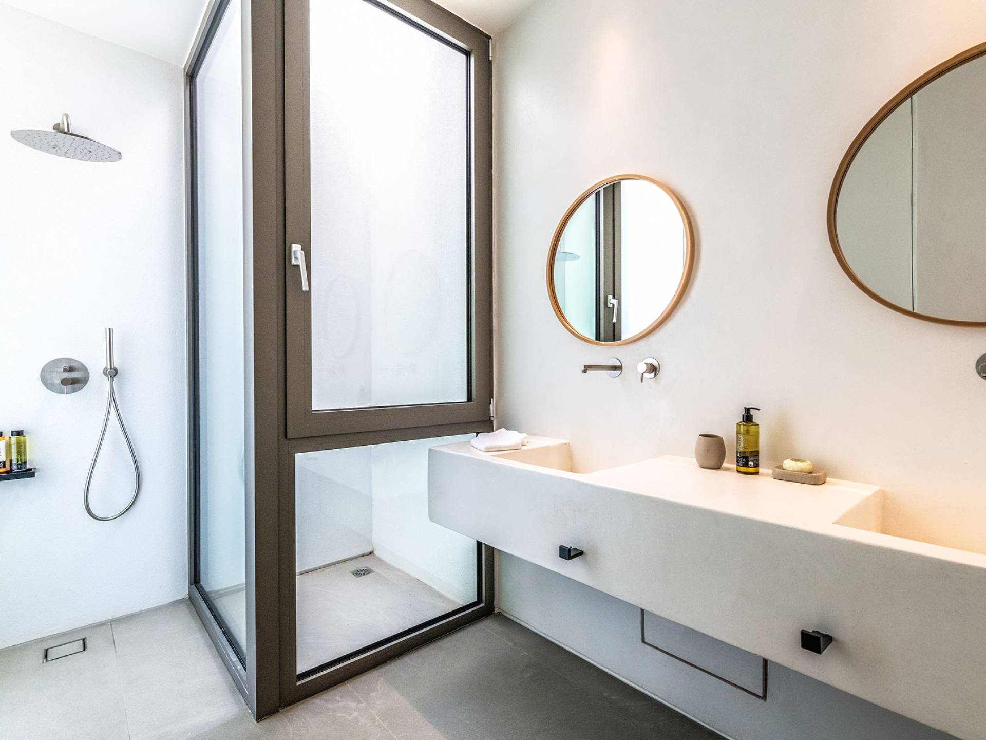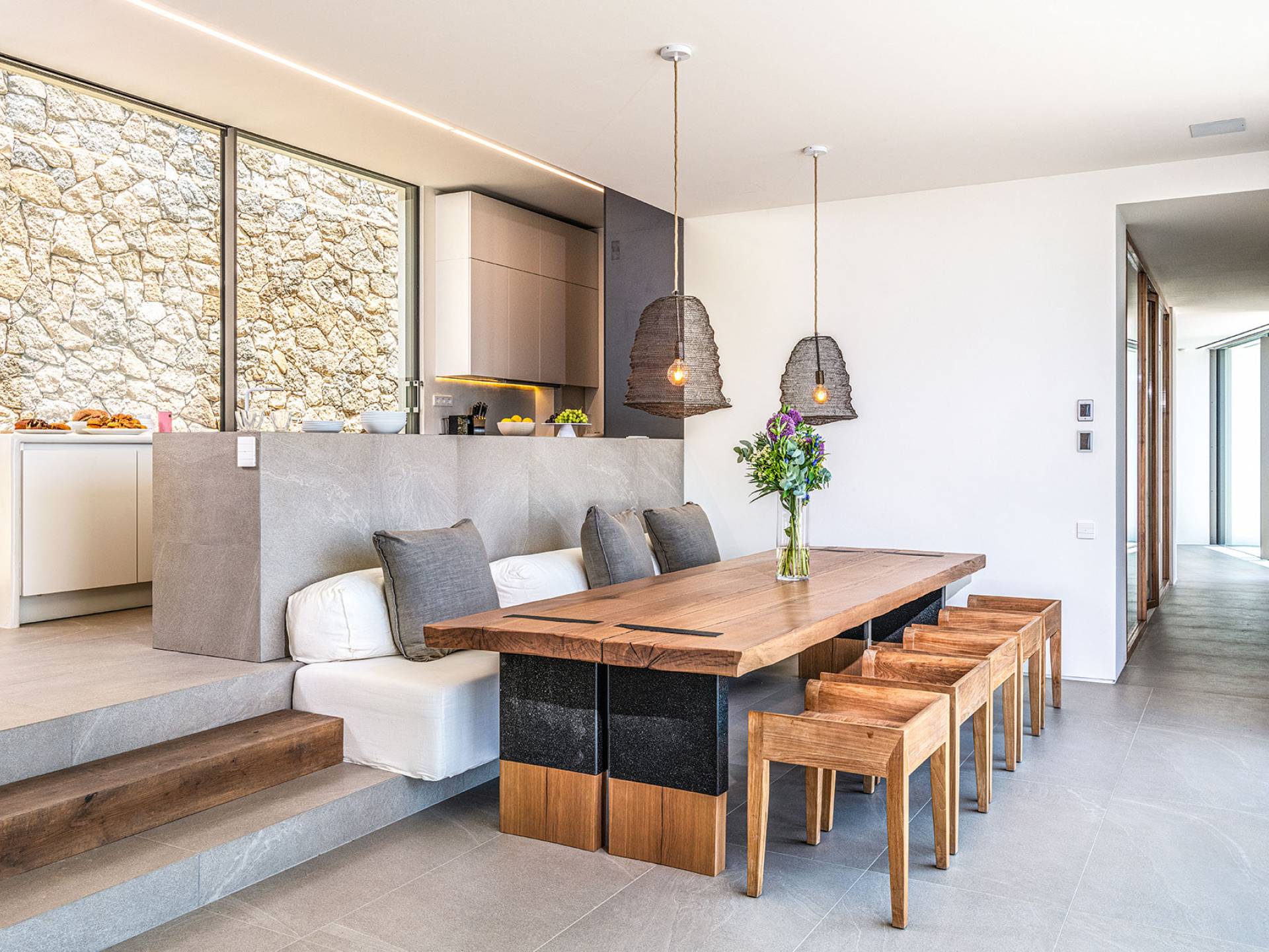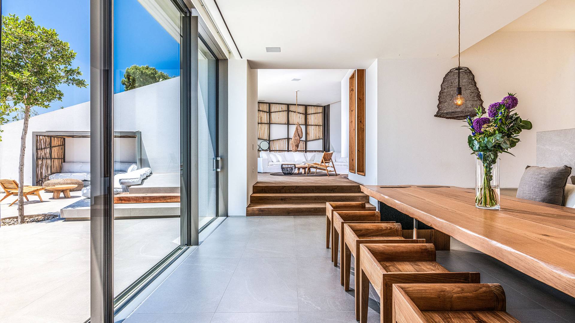 The Cove Villa Mykonos est une location de villa de luxe avec 6 chambres et une piscine privée. C'est une villa extraordinaire au concept architectural souterrain unique et à la décoration de style minimaliste avec des éléments en bois, dont la construction a été achevée en 2019. Elle peut accueillir confortablement jusqu'à 12 personnes et est située à proximité du centre de Mykonos (Chora) mais sur un terrain exceptionnellement privé et calme. emplacement à Tourlos, surplombant la baie d'Agios Stefanos. En raison de son design distinctif, chaque pièce de la propriété fait face à l'ouest de la mer Égée et bénéficie d'une vue imprenable sur le coucher de soleil sur la mer.