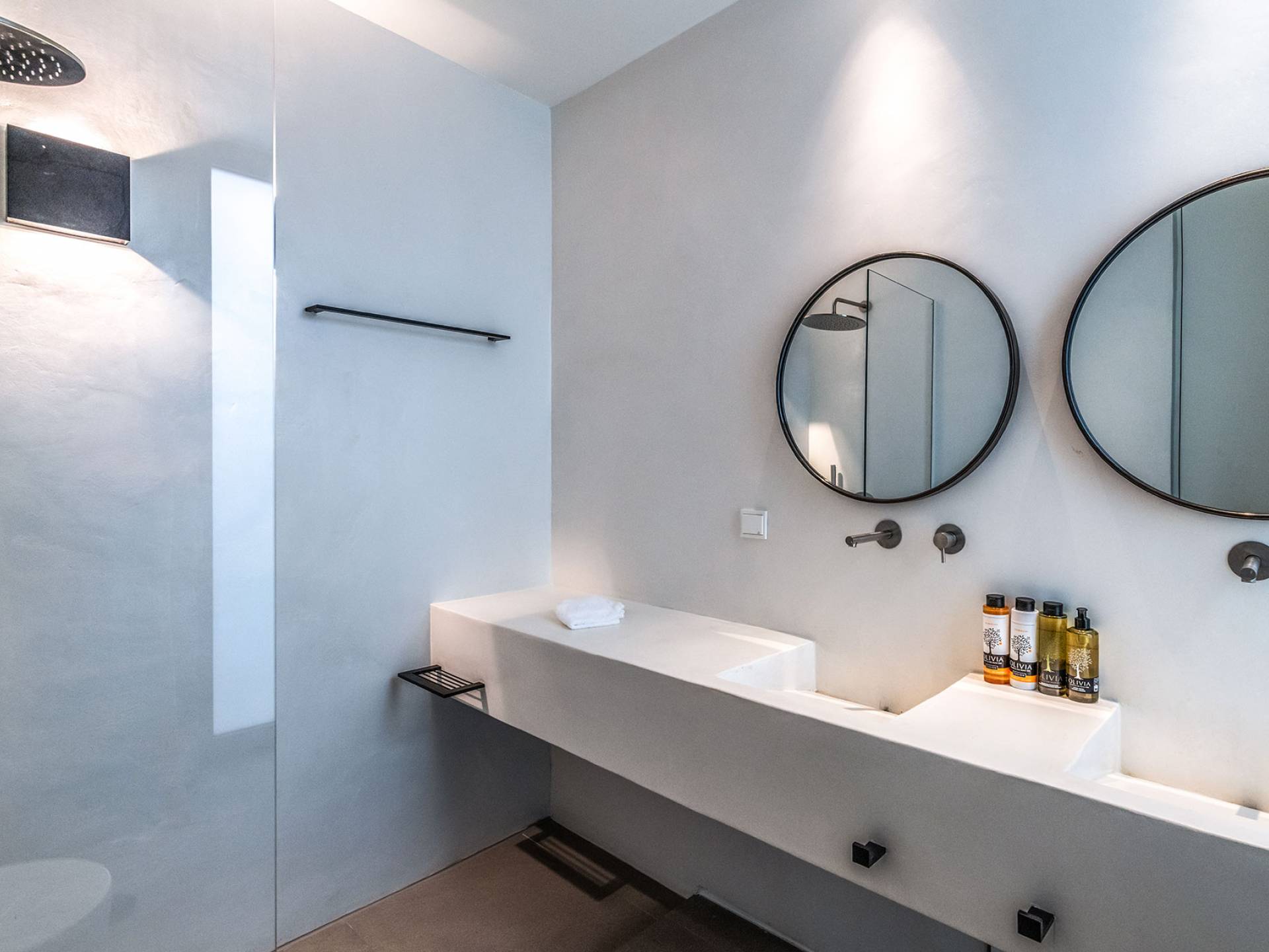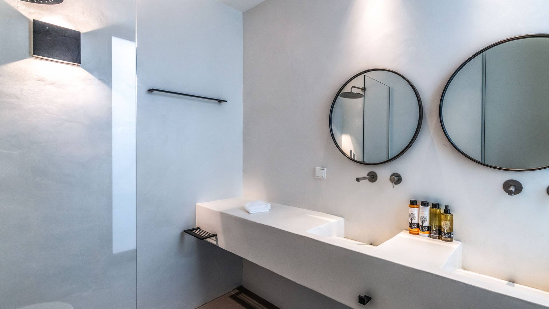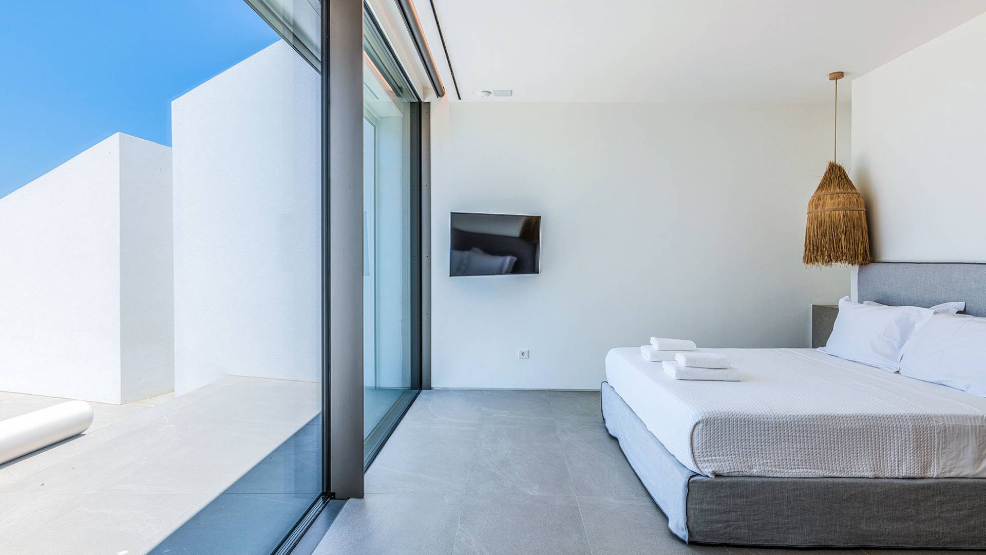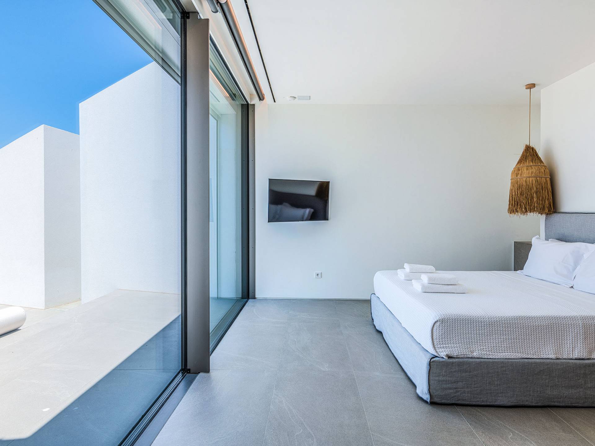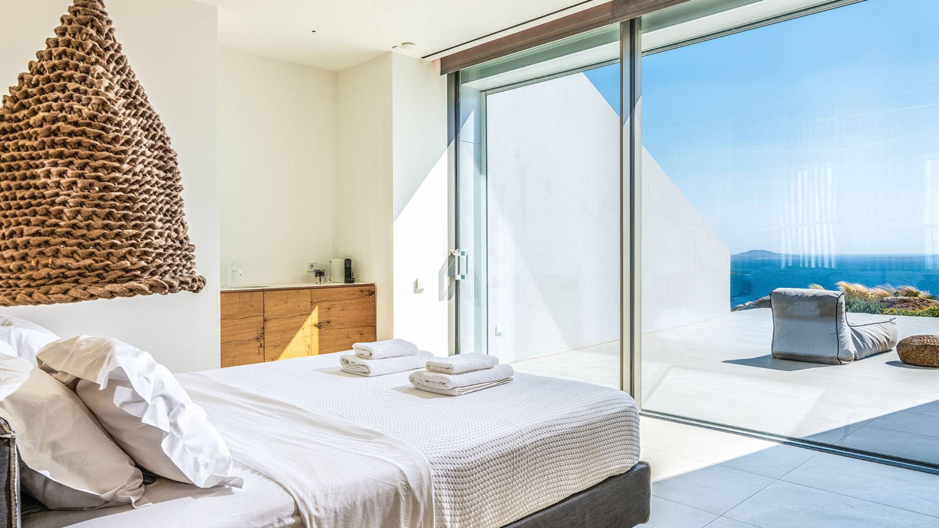 La Cove Villa Mykonos se compose de la villa principale et de la maison d'hôtes et dispose de 5 chambres plus 1 chambre d'appoint et de 8 salles de bains. La terrasse extérieure spacieuse (d'un total d'environ 500 m2) dispose de 20x4 m. piscine privée à débordement qui surplombe la mer Égée, la salle à manger et le barbecue, le home cinéma extérieur et les multiples coins salon et salon tout autour de la propriété où les clients peuvent se détendre ensemble ou indépendamment.