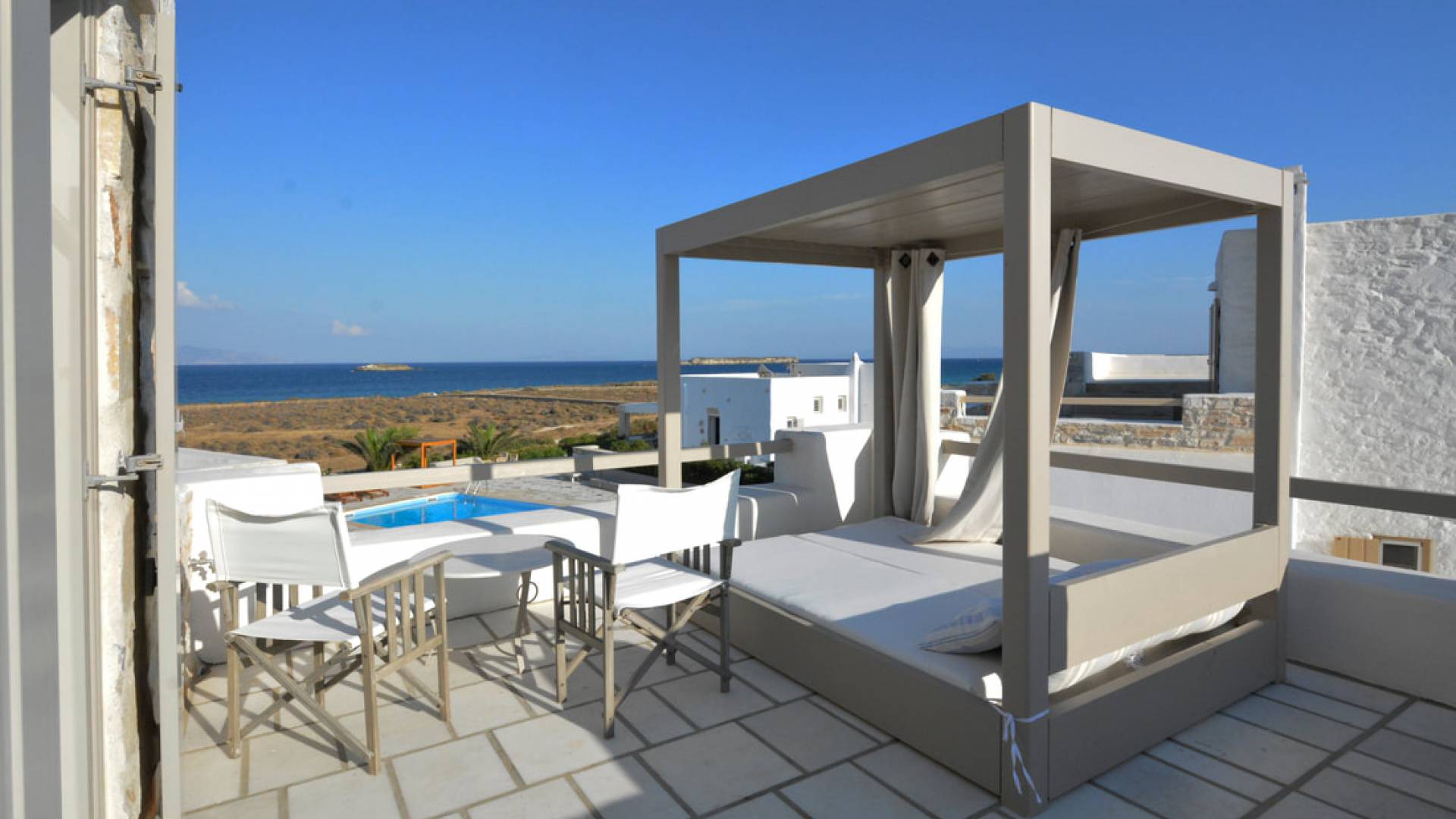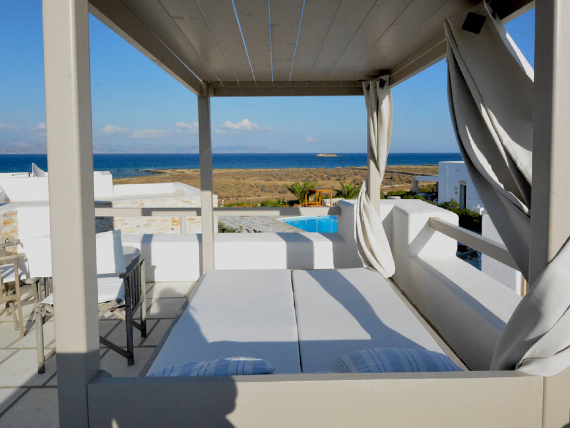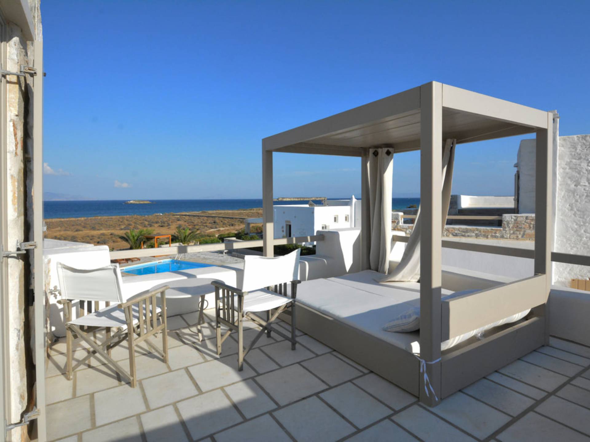 Les espaces intérieurs comme extérieurs sont dessinés avec finesse et luxe. Les intérieurs sont équipés de beaux meubles et d'œuvres d'art uniques. Toutes les villas ont une vue dégagée sur la mer et l'île de Naxos depuis n'importe quel endroit où vous choisissez de vous asseoir et peuvent vous offrir une vraie détente. Le complexe offre également un grand jardin, un parking ainsi qu'une grande cour commune avec une grande piscine.