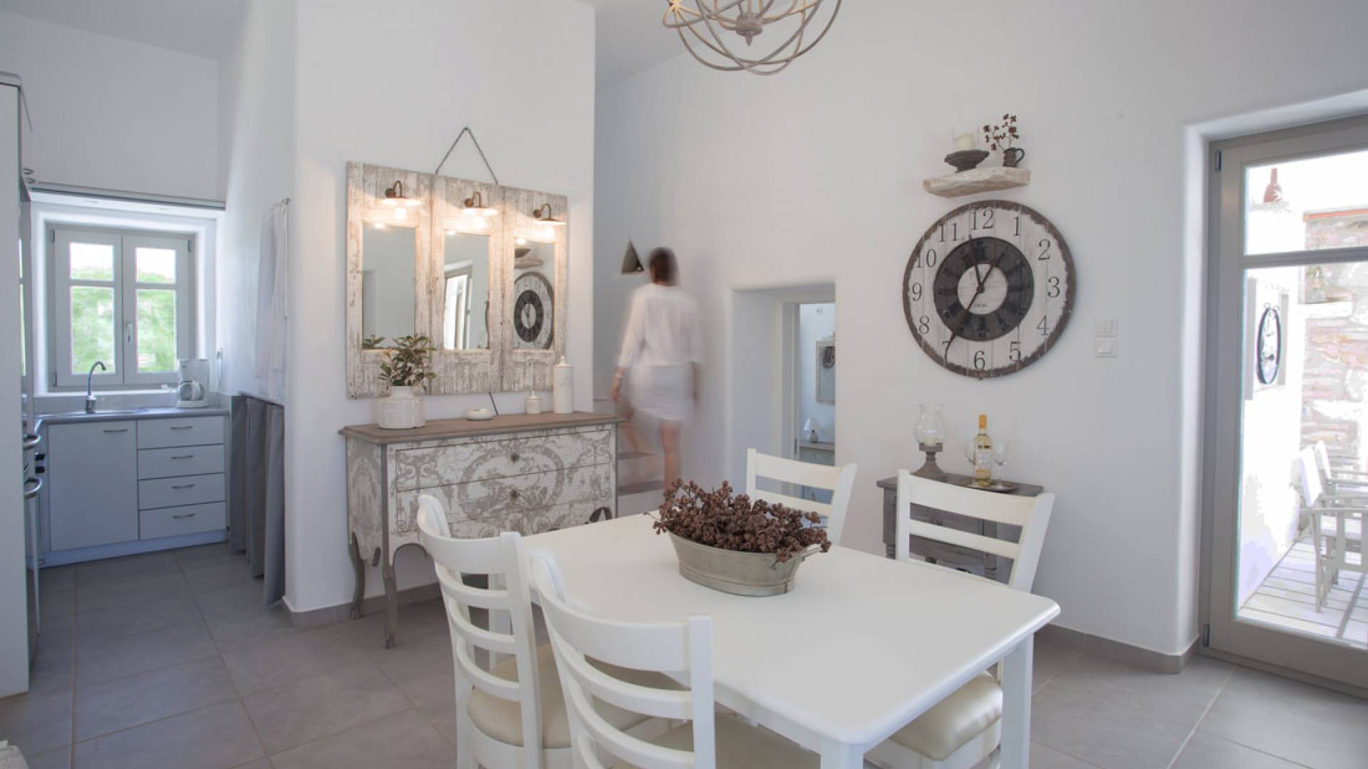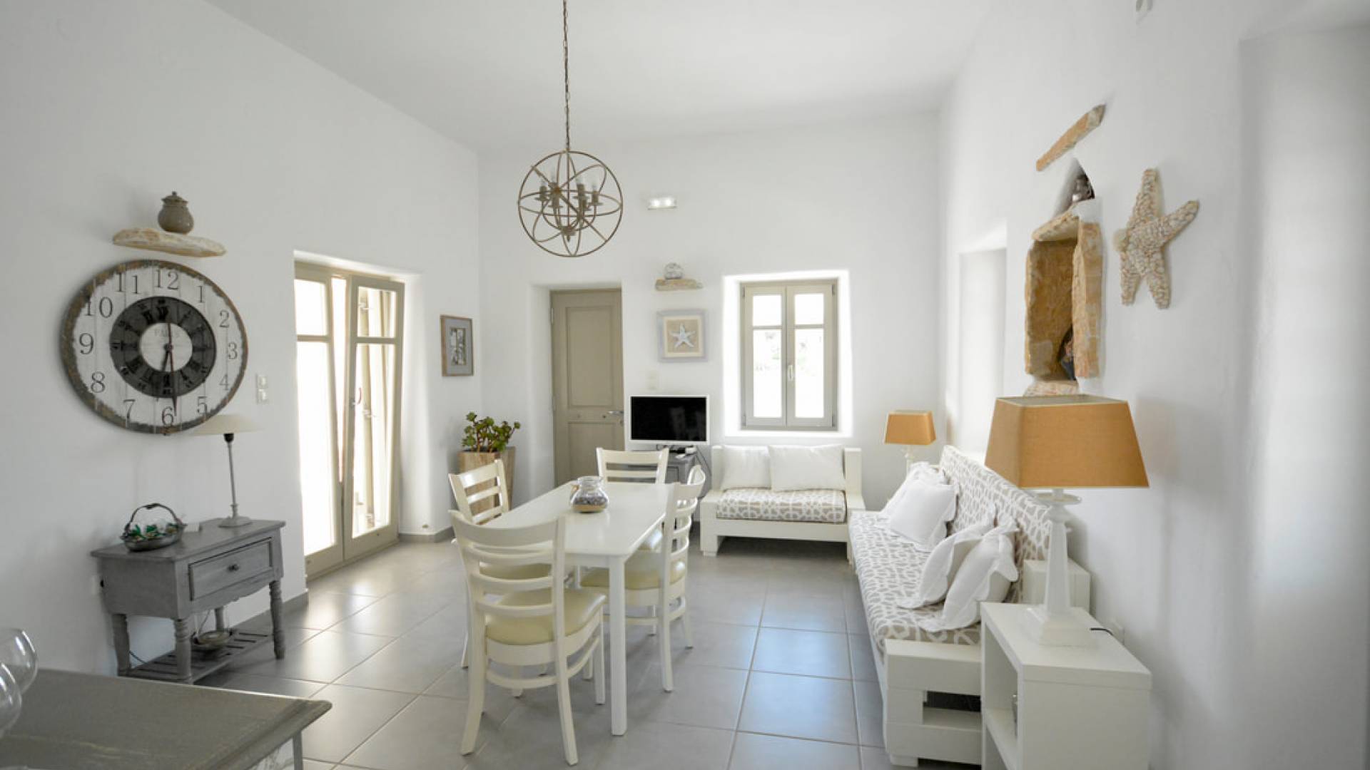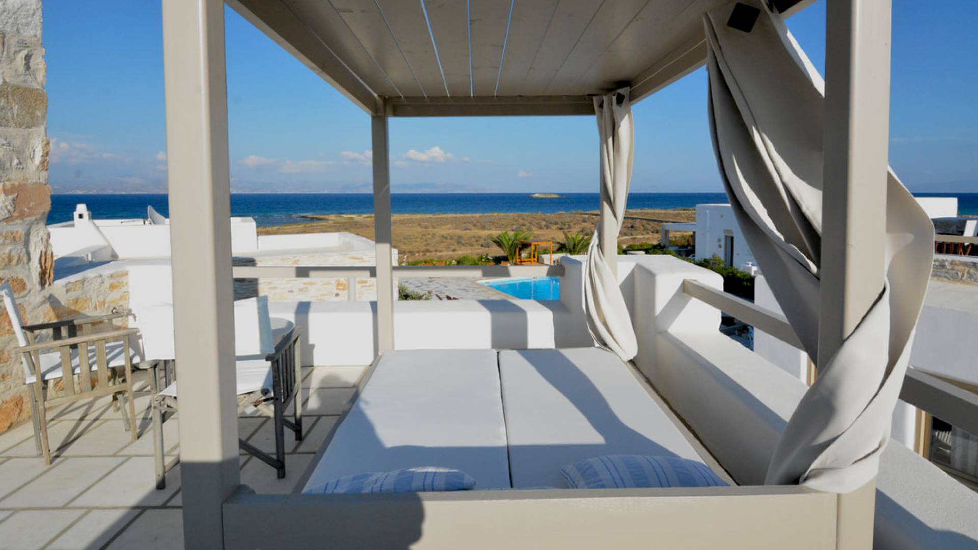 Les espaces intérieurs comme extérieurs sont dessinés avec finesse et luxe. Les intérieurs sont équipés de beaux meubles et d'œuvres d'art uniques. Toutes les villas ont une vue dégagée sur la mer et l'île de Naxos depuis n'importe quel endroit où vous choisissez de vous asseoir et peuvent vous offrir une vraie détente. Le complexe offre également un grand jardin, un parking ainsi qu'une grande cour commune avec une grande piscine.