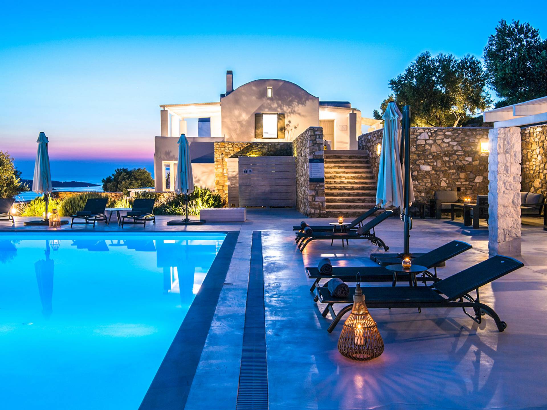 Ciel Villas est situé dans la région de Petaloudes - Glysidia au sud-ouest de Paros, face à Antiparos avec une vue imprenable sur le coucher du soleil. Construit sur une pente entourée d'oliviers, dans un domaine de 2,2 acres, pour une expérience ultime d'intimité et de tranquillité.