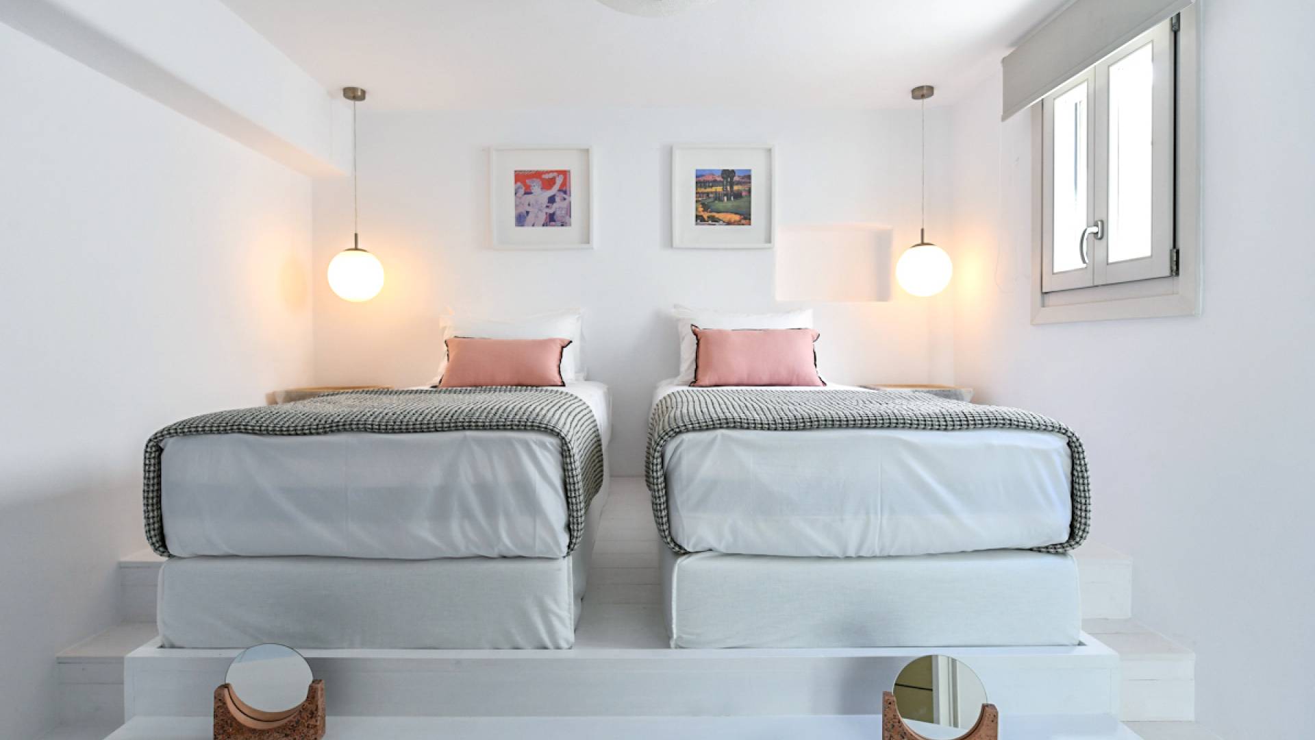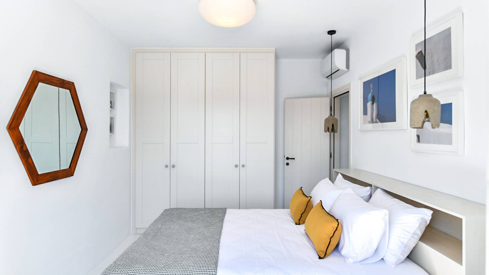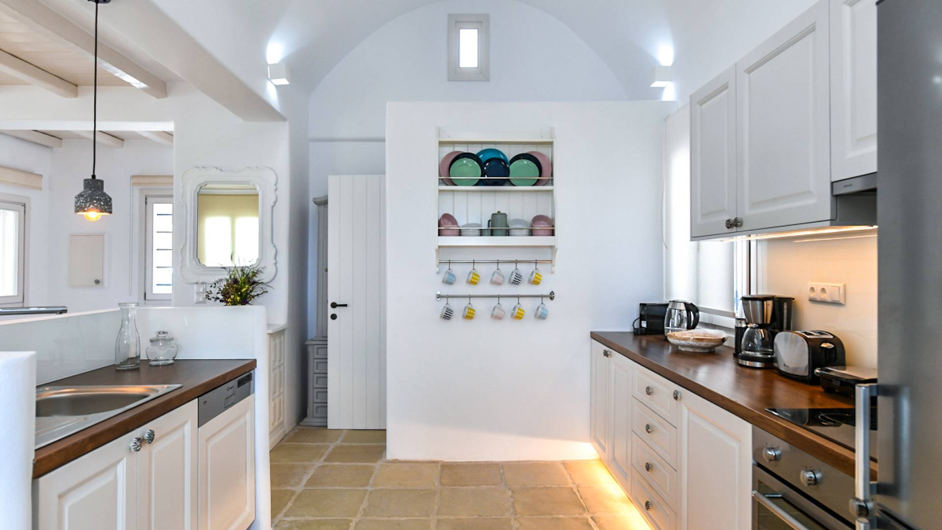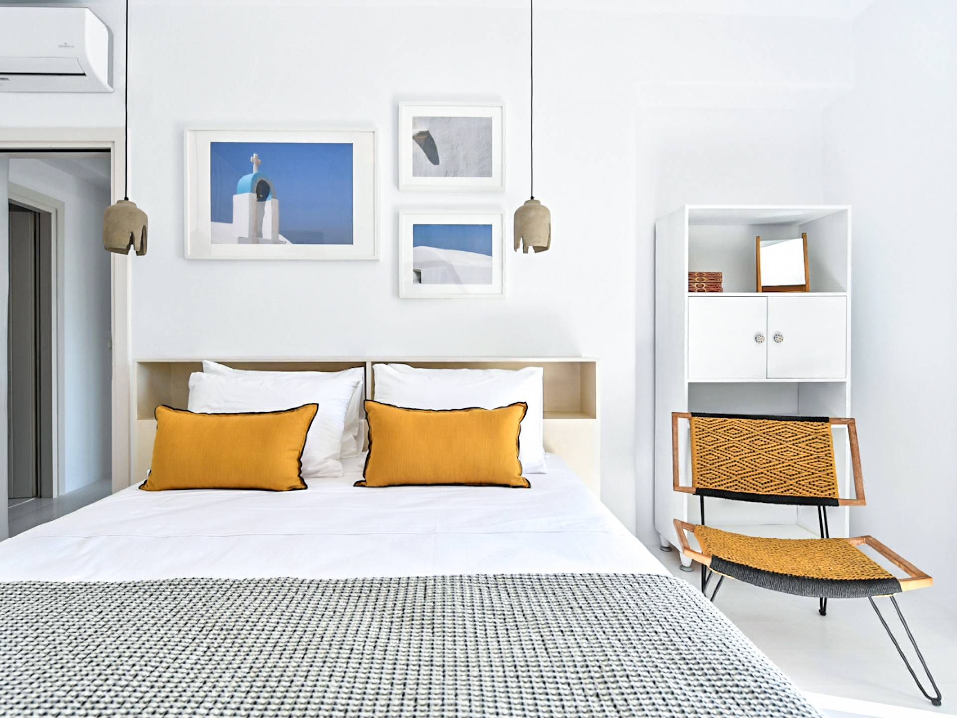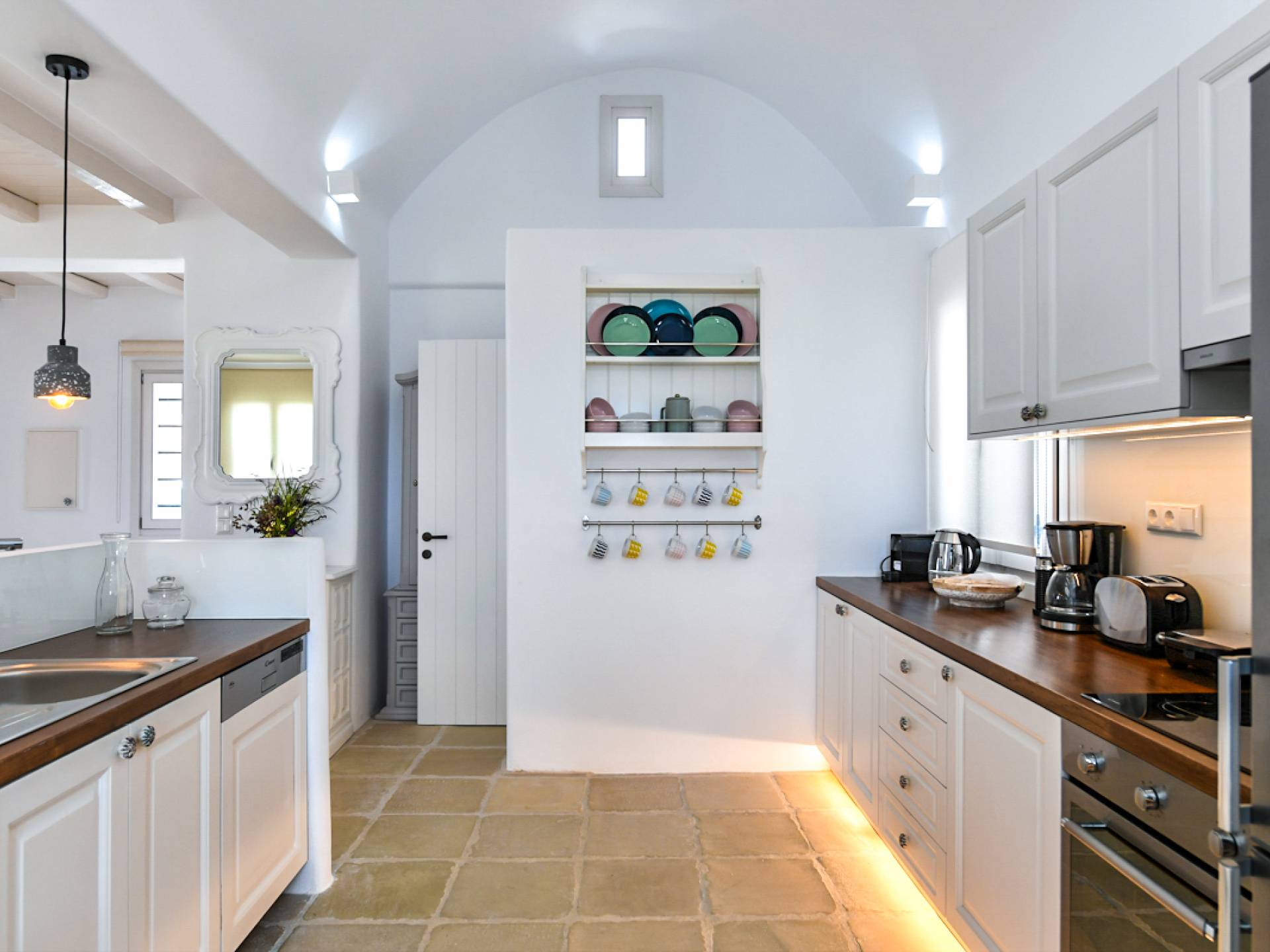 Pour les clients qui souhaitent se détendre dans le luxe et l'intimité, ne cherchez pas plus loin. Les cinq chambres de Khallirhoe sont situées au premier niveau. Un lit queen-size domine la première chambre principale avec une salle de bain attenante et une porte donnant sur le patio. La deuxième chambre a un lit queen-size, une salle de bain attenante et une fenêtre avec une vue imprenable sur la mer. La troisième chambre a des lits jumeaux habillés de draps en coton fin pour assurer un sommeil profond et ininterrompu et une salle de bain attenante. La quatrième chambre a un lit queen-size et un balcon privé meublé avec une vue magnifique. La cinquième chambre a un lit king-size et un balcon. Ces deux chambres partagent une salle de bain complète. Le salon est composé d'un canapé-lit, d'un bureau d'ordinateur, d'une armoire commune, d'un espace de rangement et d'une buanderie. La Kallirhoe Villa est la maison loin de chez vous que vous souhaiterez ne jamais quitter.