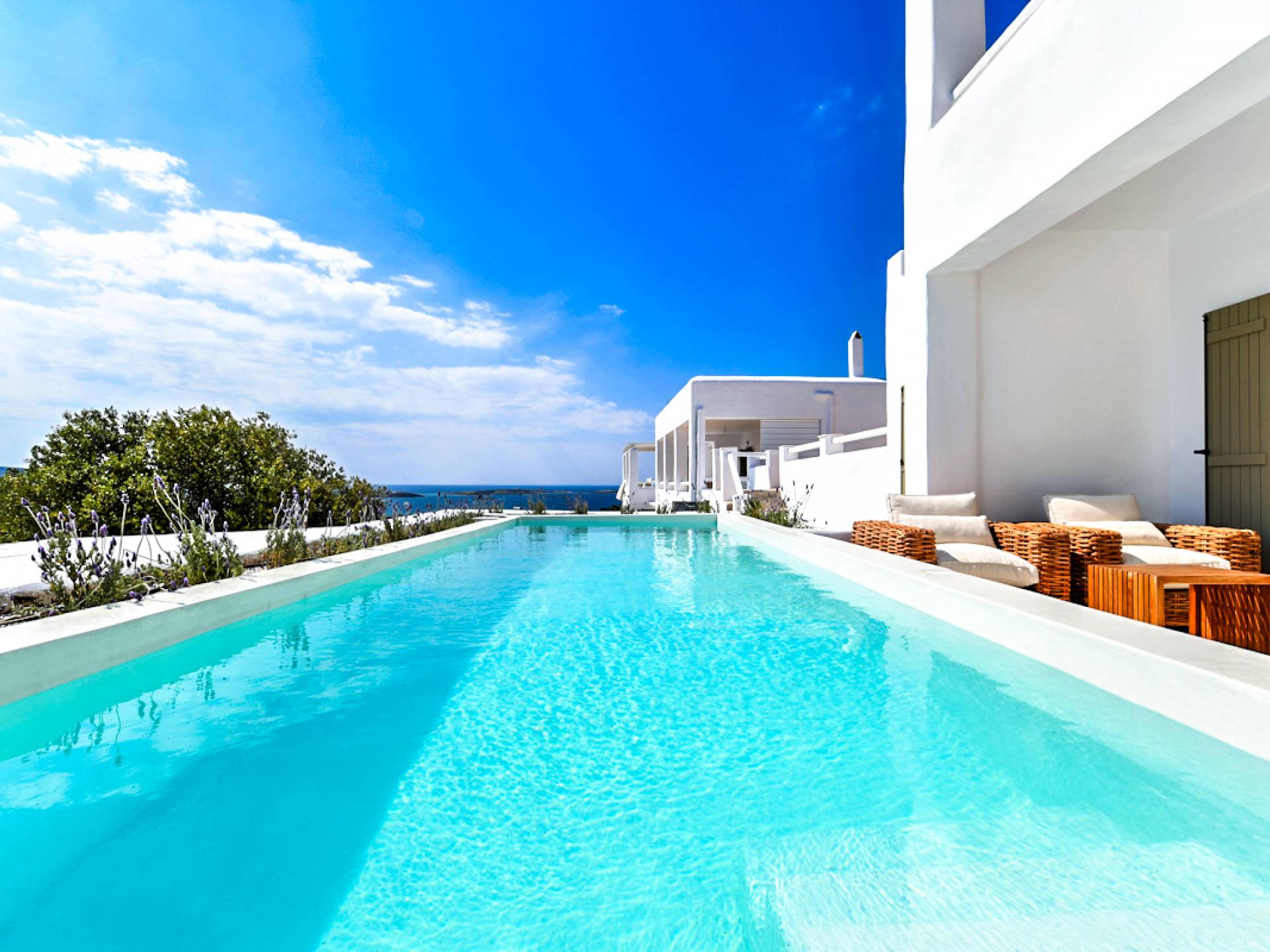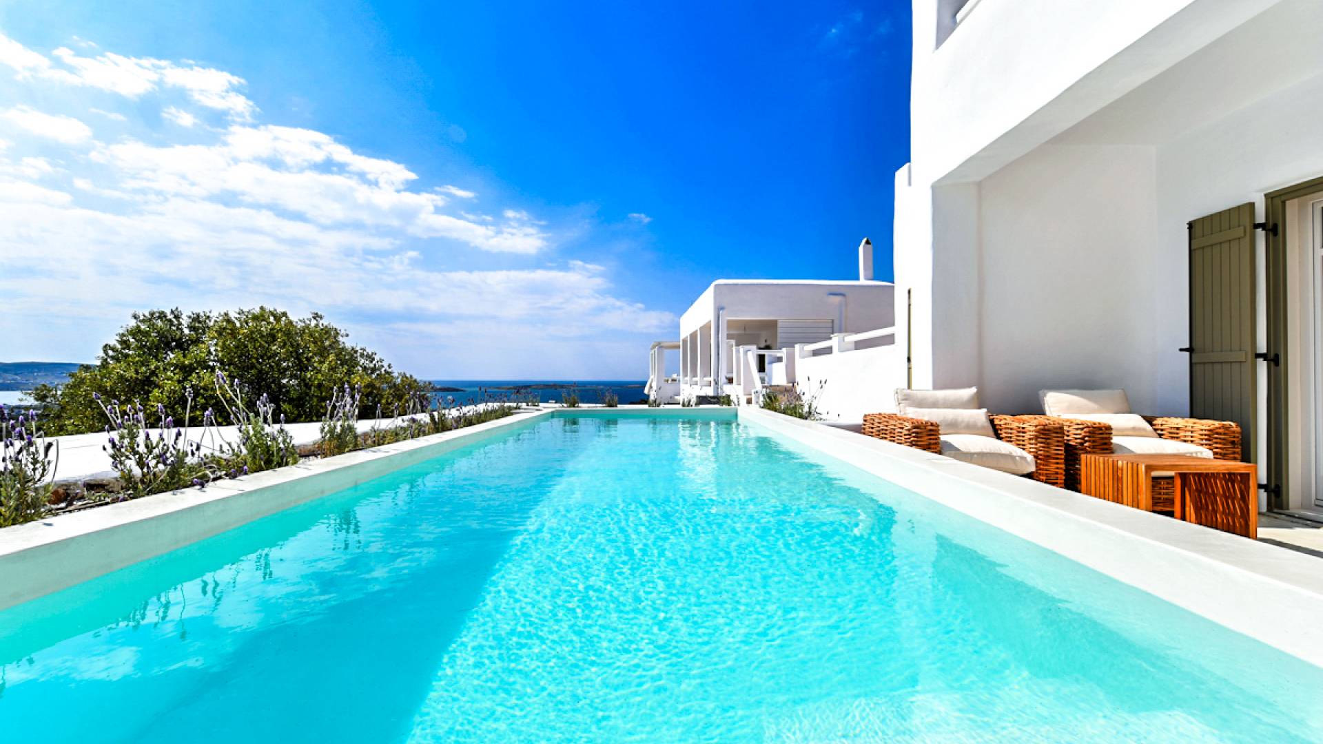 L'hébergement le plus distinctif de Ciel Paros capture l'essence du raffinement et de l'intimité à grande échelle. Cette spacieuse villa de cinq chambres est un havre d'intimité pour des vacances inoubliables. Kallirhoe peut accueillir jusqu'à 12 personnes.