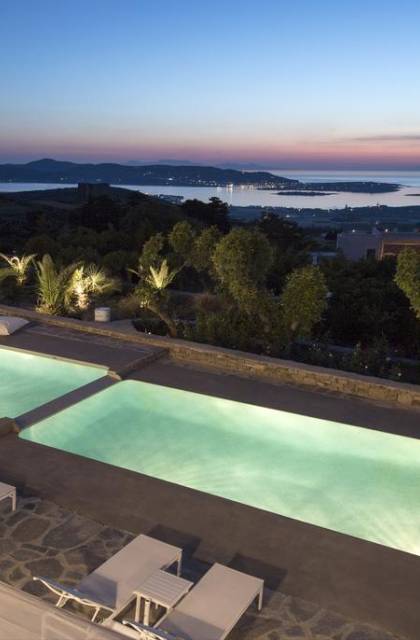 Les Paros Butterfly Villas sont un complexe nouvellement construit de neuf villas séparées et autonomes. La luxuriante vallée des papillons, associée au bruit de l'eau courante et aux vues infinies, laissera le spectateur sans voix, tandis que l'architecture cycladique avec ses rues pavées et ses maisons blanchies à la chaux crée un sentiment de la vieille ville.
