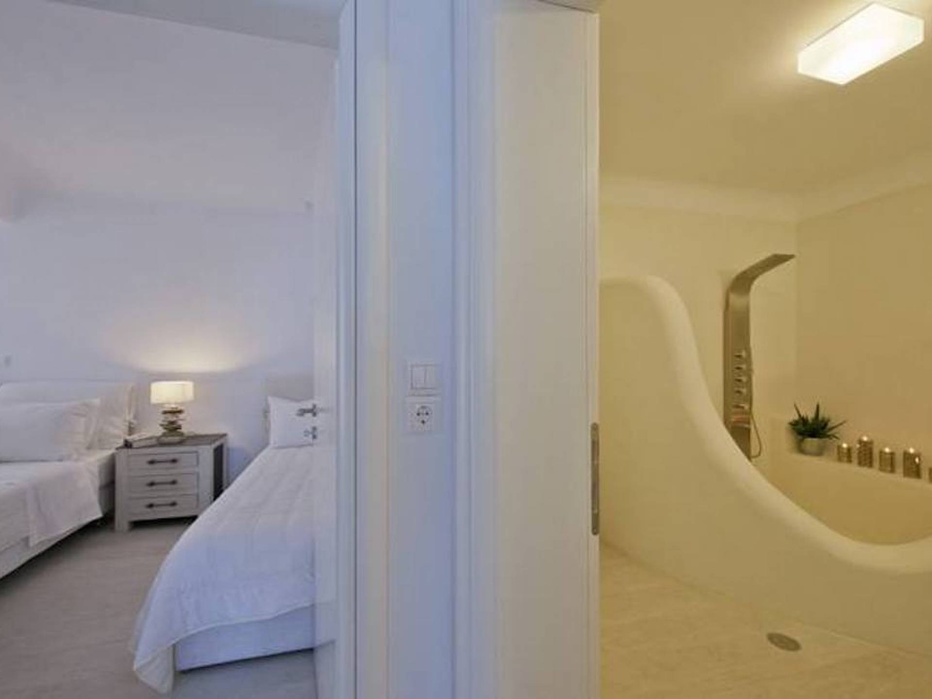 Paros Butterfly Villa 6 est une location de villa de luxe avec 3 chambres. Deux d'entre elles ont des lits doubles et des armoires encastrées et la troisième chambre a un lit double avec un lit simple qui pourrait être converti en un lit double. Il dispose également de 2 salles de bains traditionnelles intégrées avec douche et douche jacuzzi, d'une cuisine entièrement équipée et d'un confortable salon-salle à manger. Il dispose d'un jardin et d'un patio agréables et très confortables avec une vue magnifique et dégagée sur la mer et Antiparos. La villa propose des places de parking gratuites dans un coffre privé et sécurisé.
