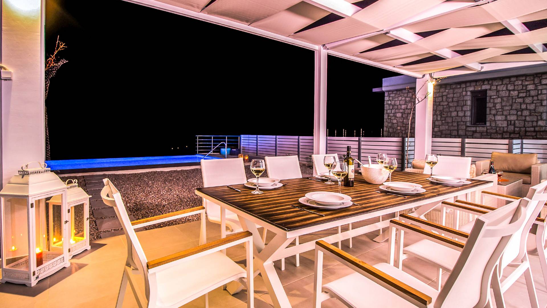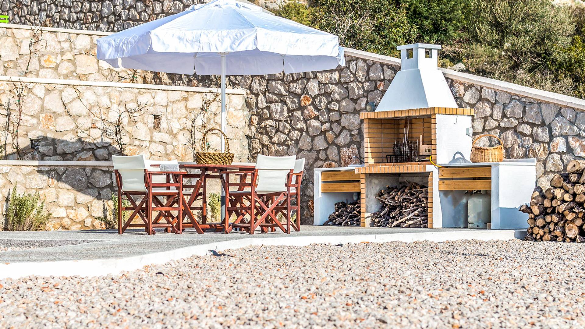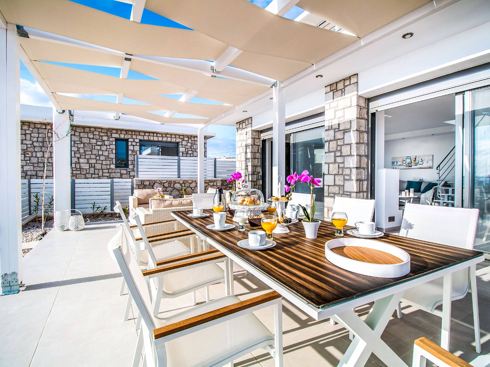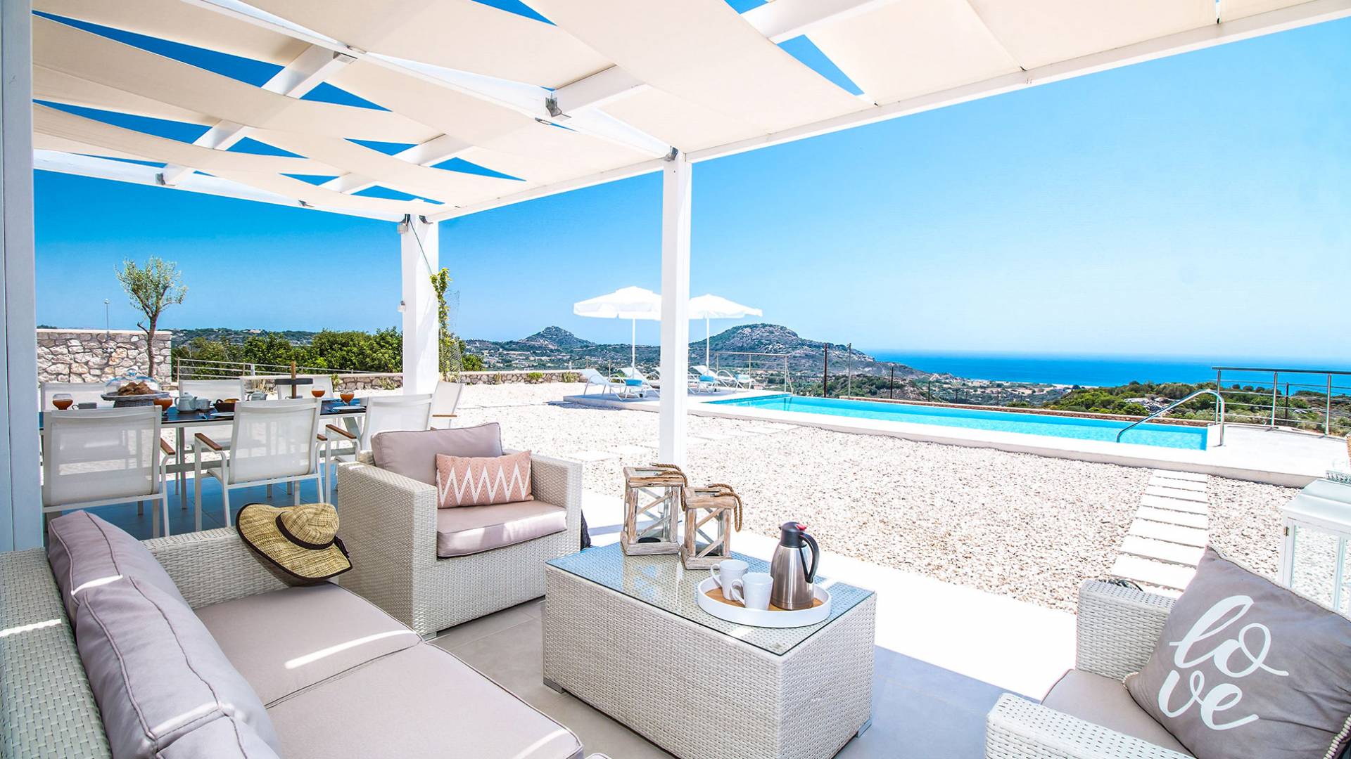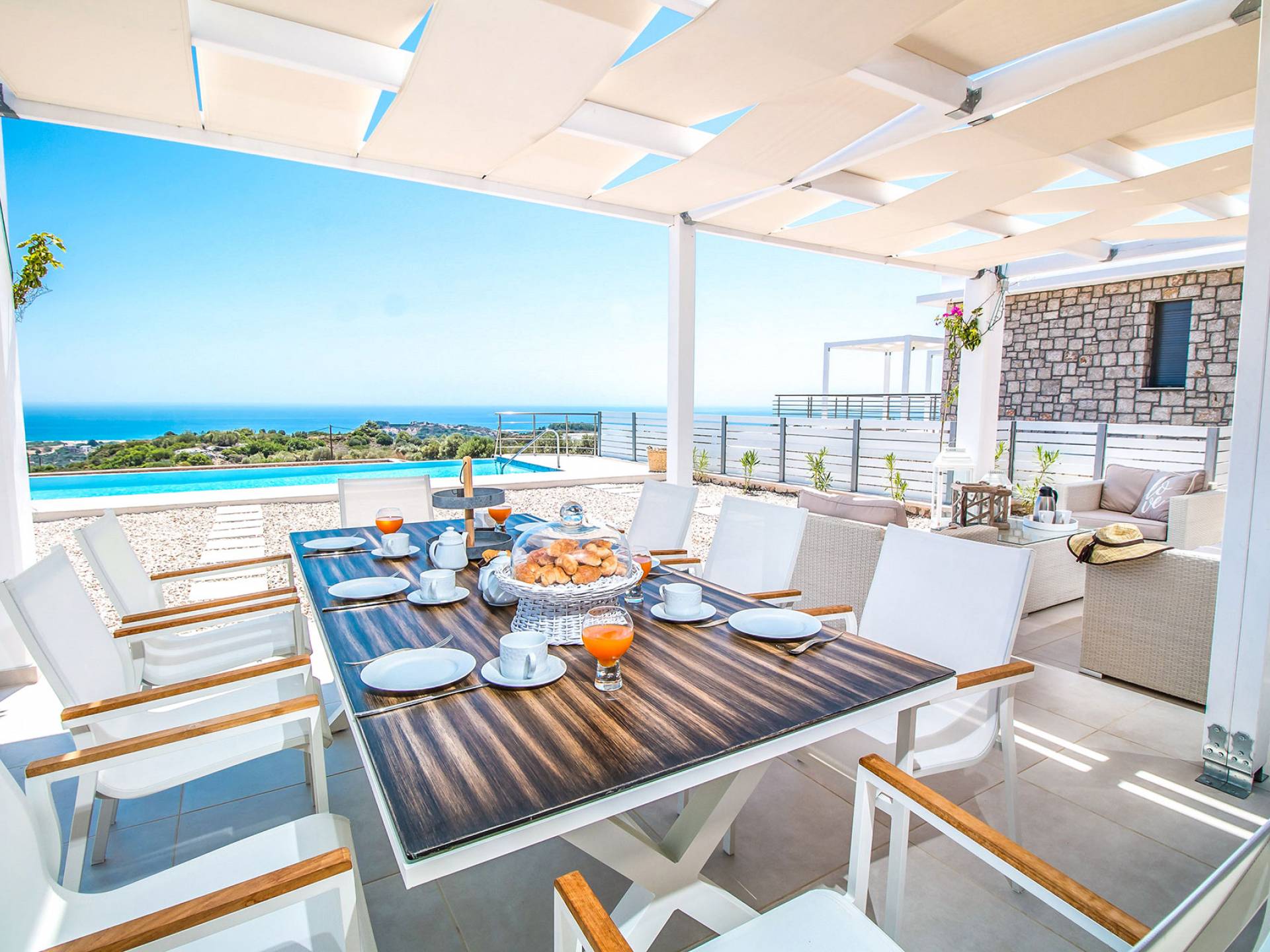 La villa dispose d'une piscine privée 9x4 avec un joli jardin paysager privé, des parasols, des transats et une grande terrasse meublée entourant la zone. Équipé d'une salle à manger et d'un barbecue, c'est l'endroit idéal pour prendre le petit-déjeuner et le dîner avec une vue imprenable sur la mer !