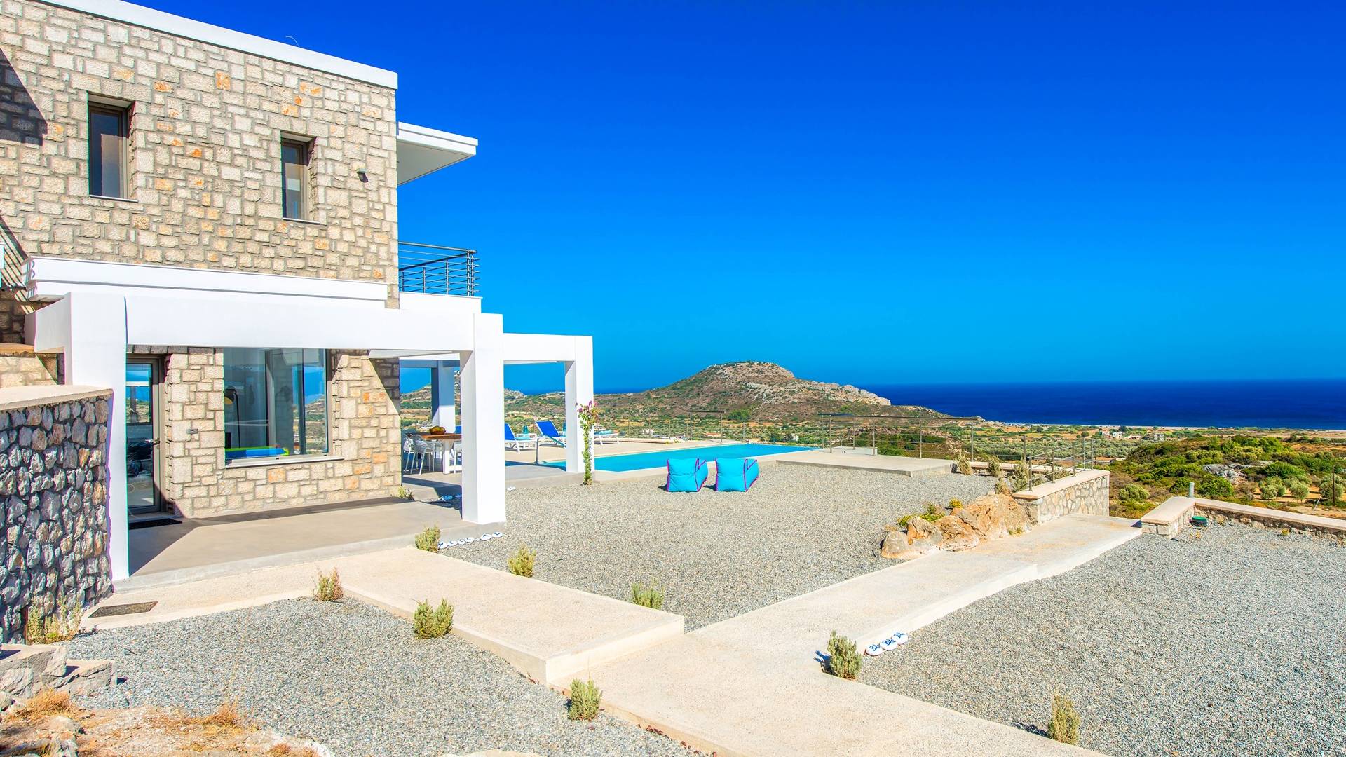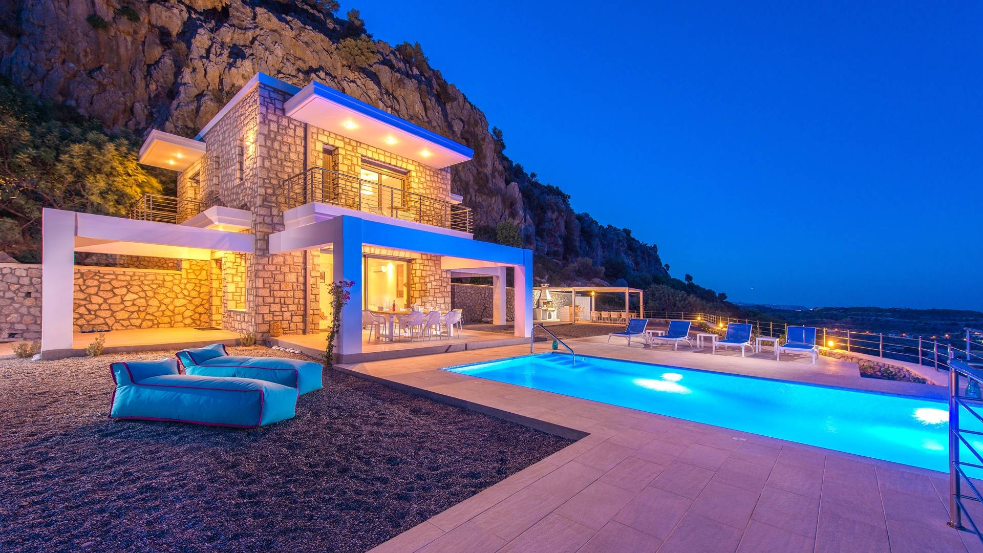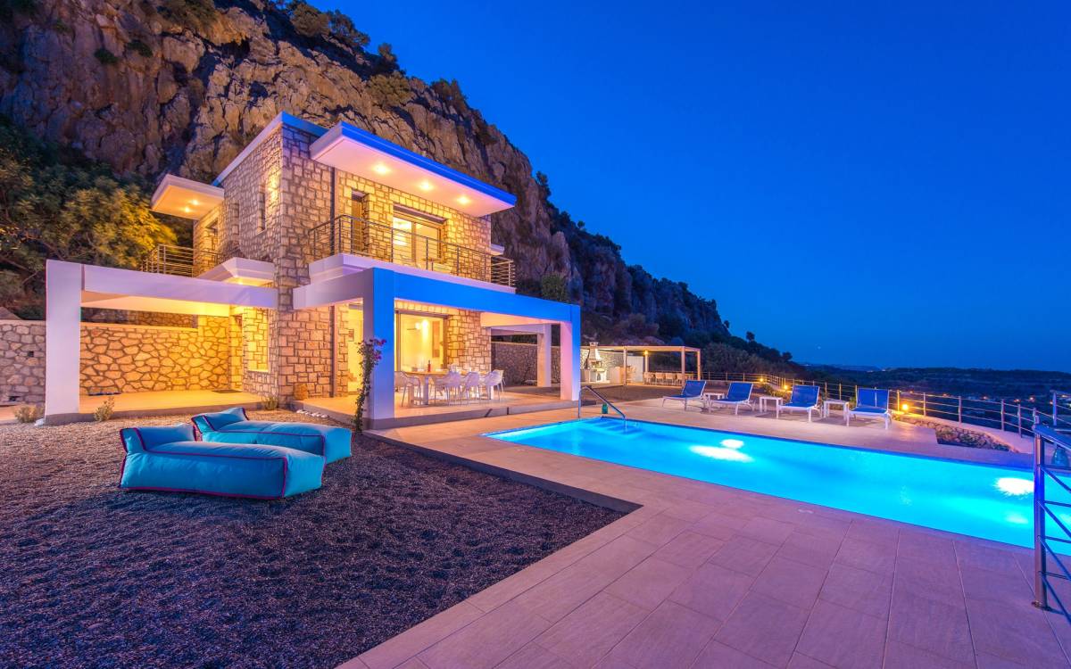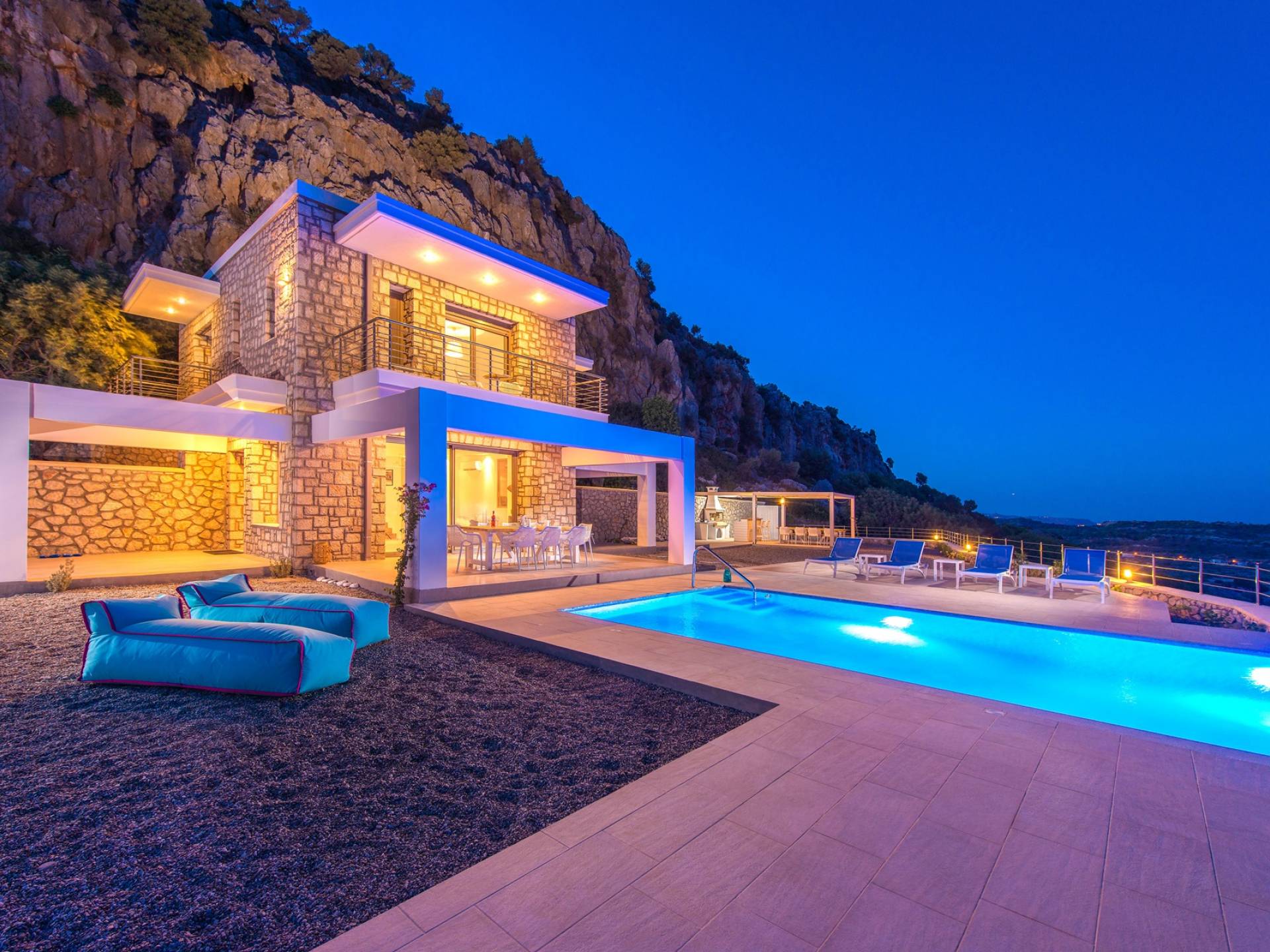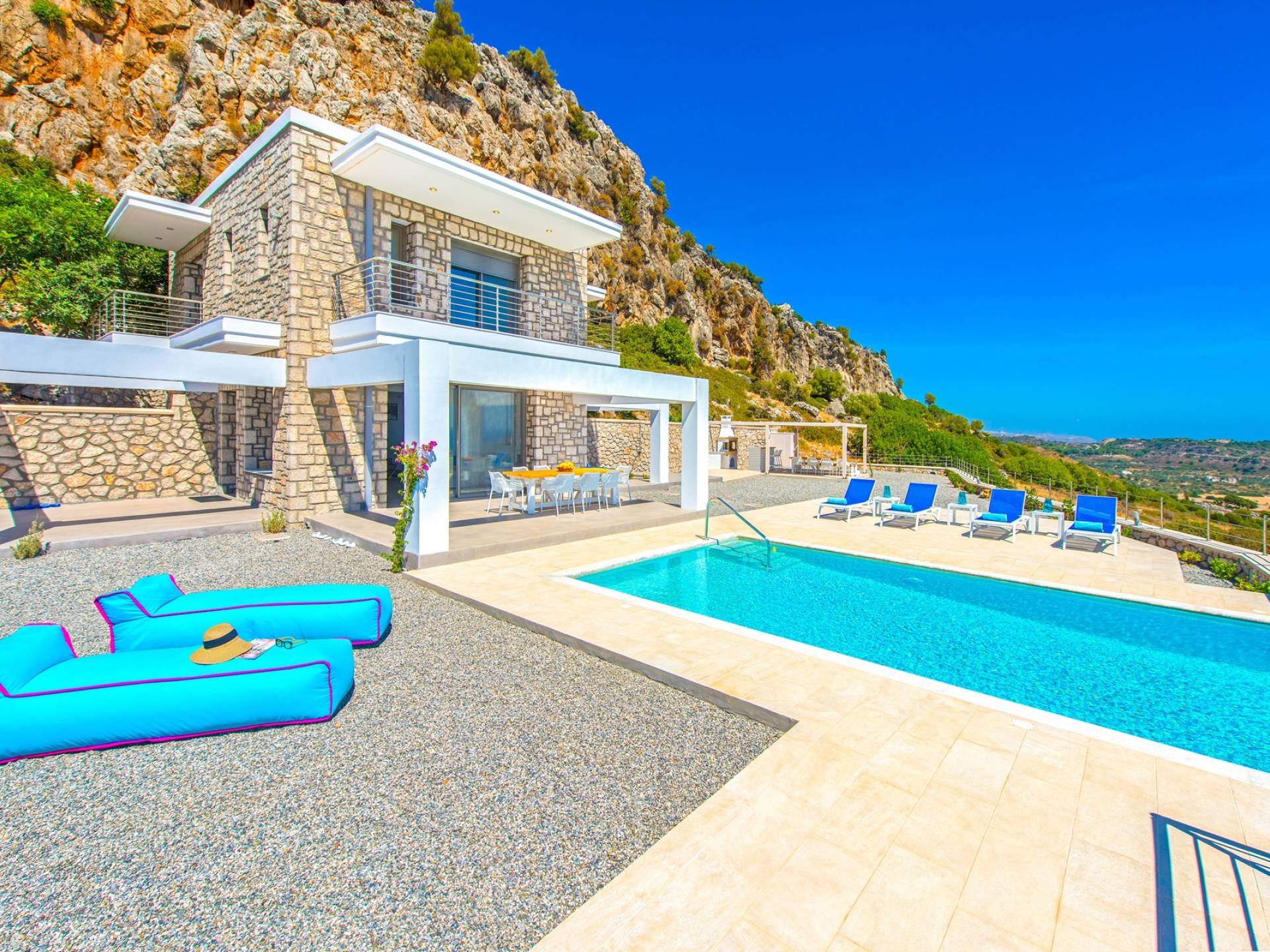 La Villa Olympos sur l'île de Rhodes est une villa exclusive nouvellement construite, qui offre confort et luxe dans un environnement privé. Construit avec des matériaux naturels il a une vue montagne à l'arrière et une vue mer à 180° à l'avant.