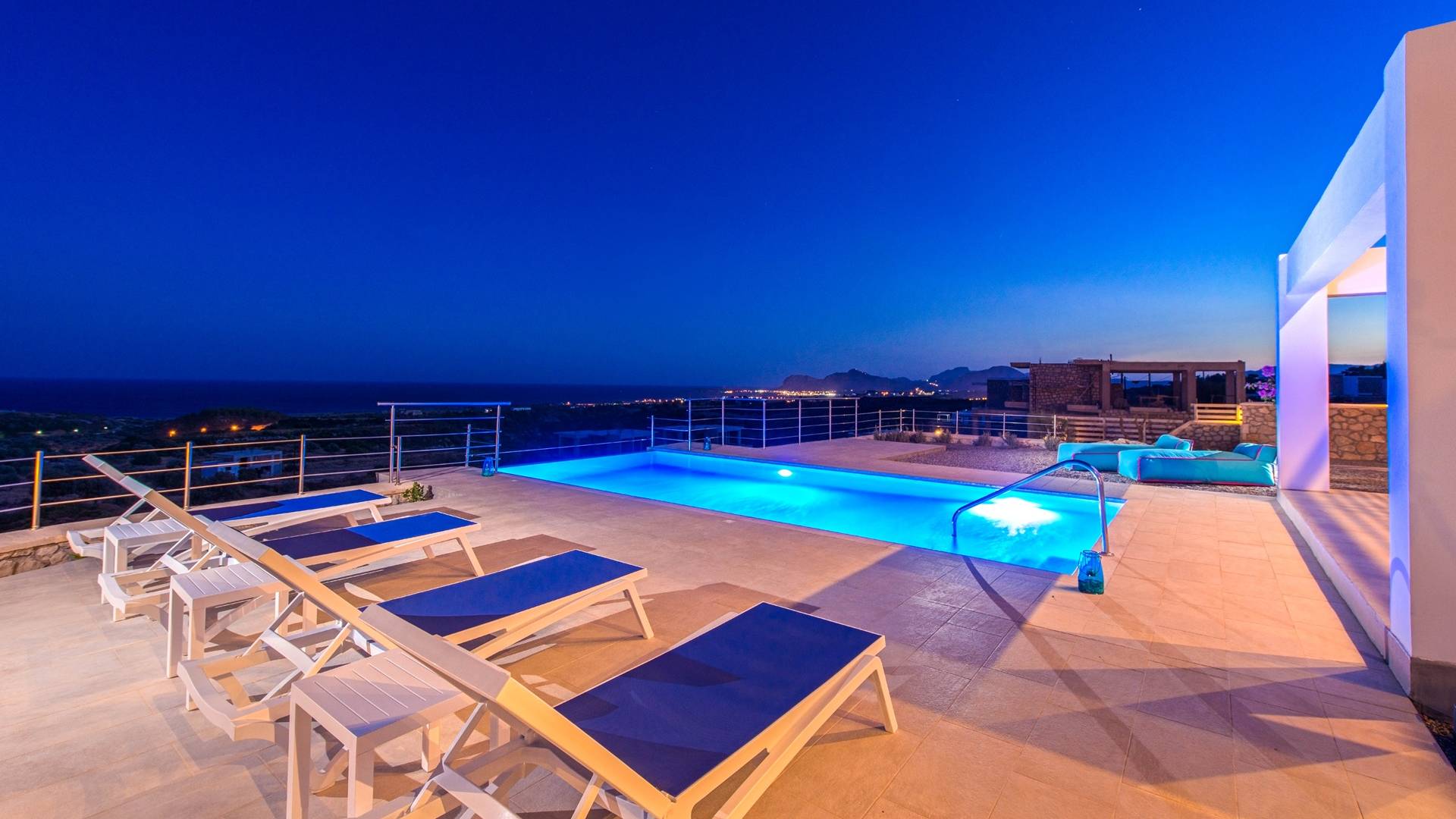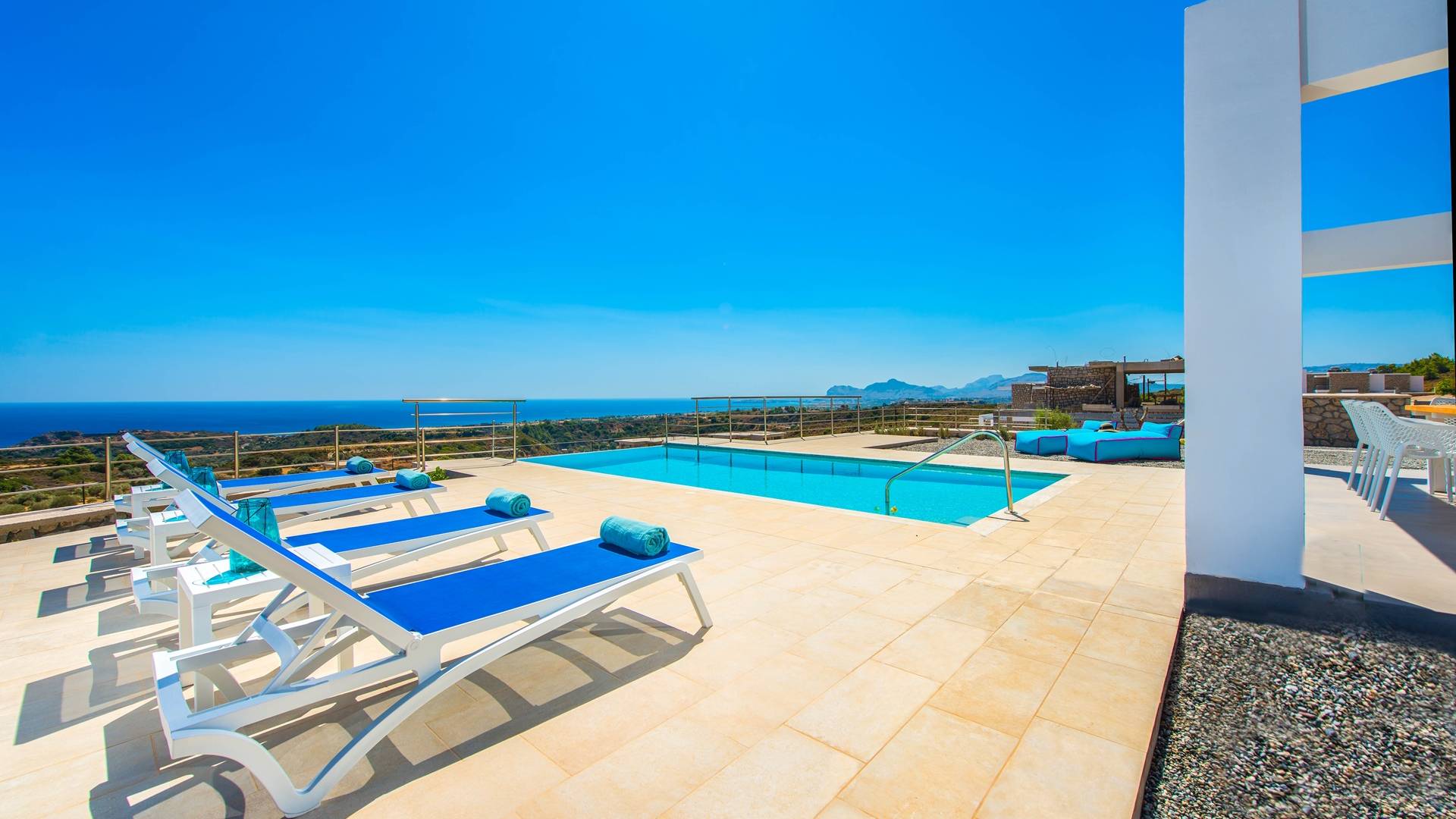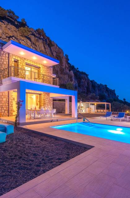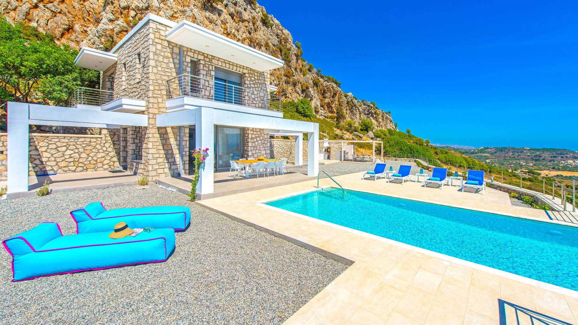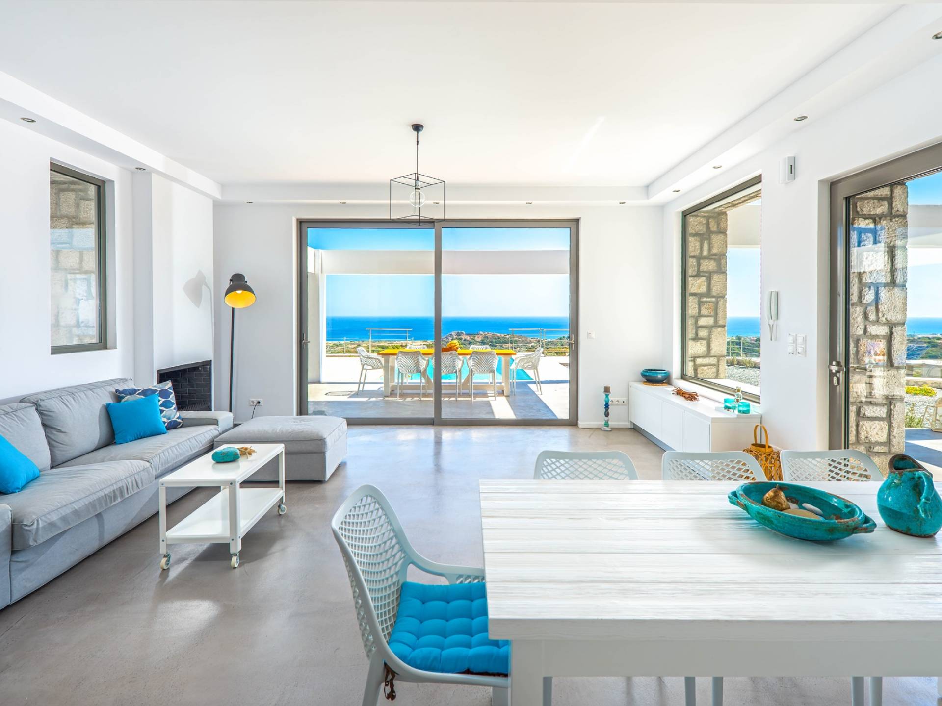 La Villa Olympos sur l'île de Rhodes est une villa exclusive nouvellement construite, qui offre confort et luxe dans un environnement privé. Construit avec des matériaux naturels il a une vue montagne à l'arrière et une vue mer à 180° à l'avant.