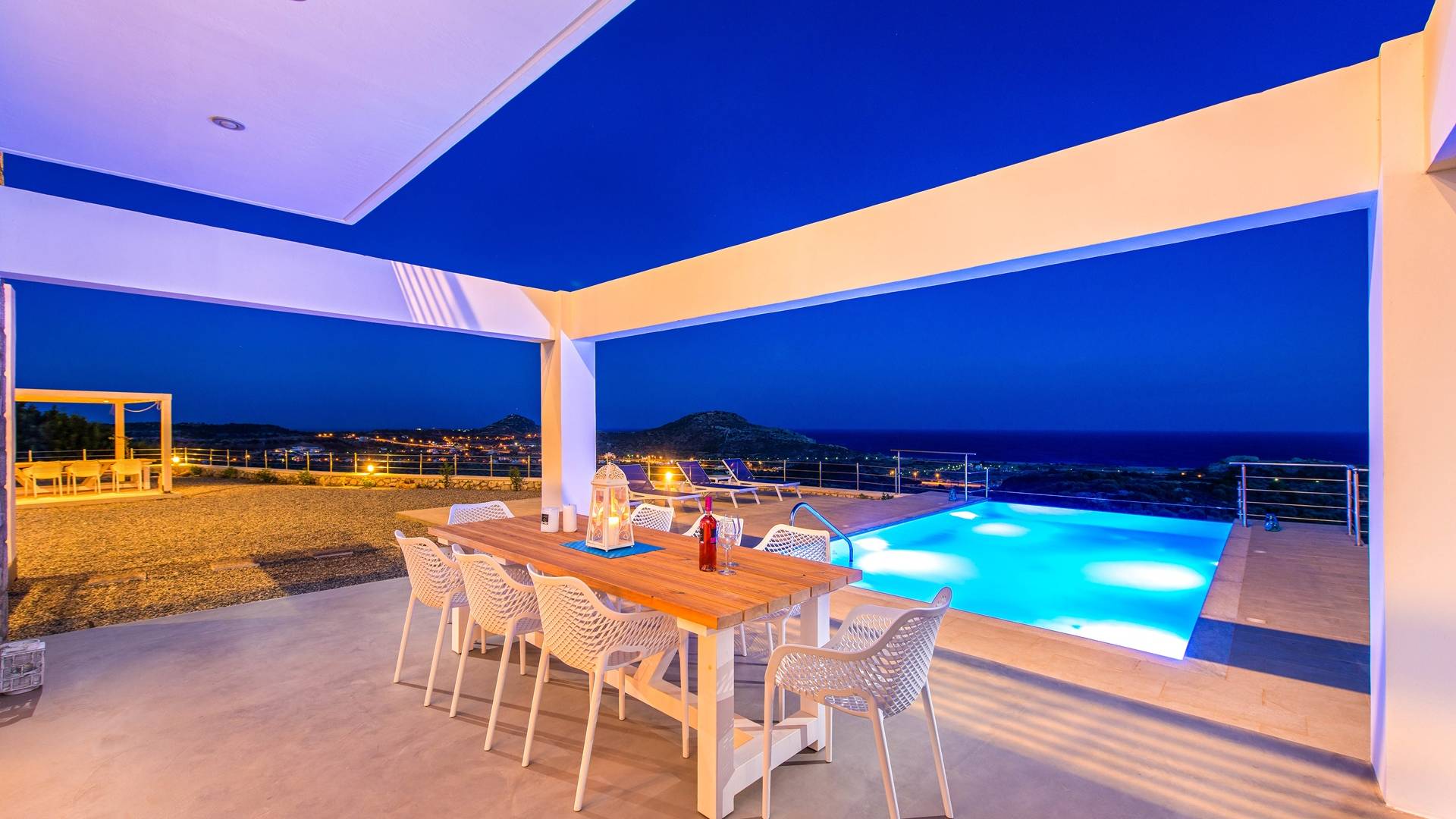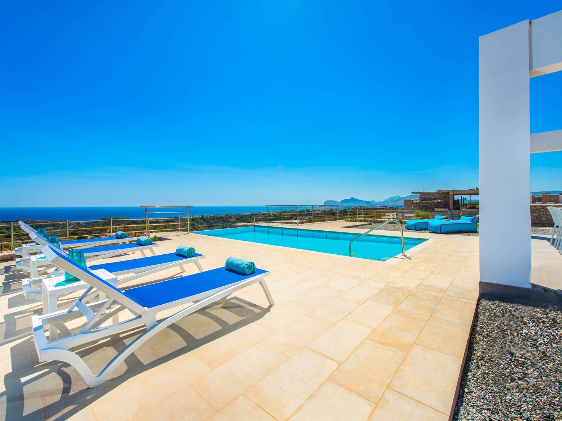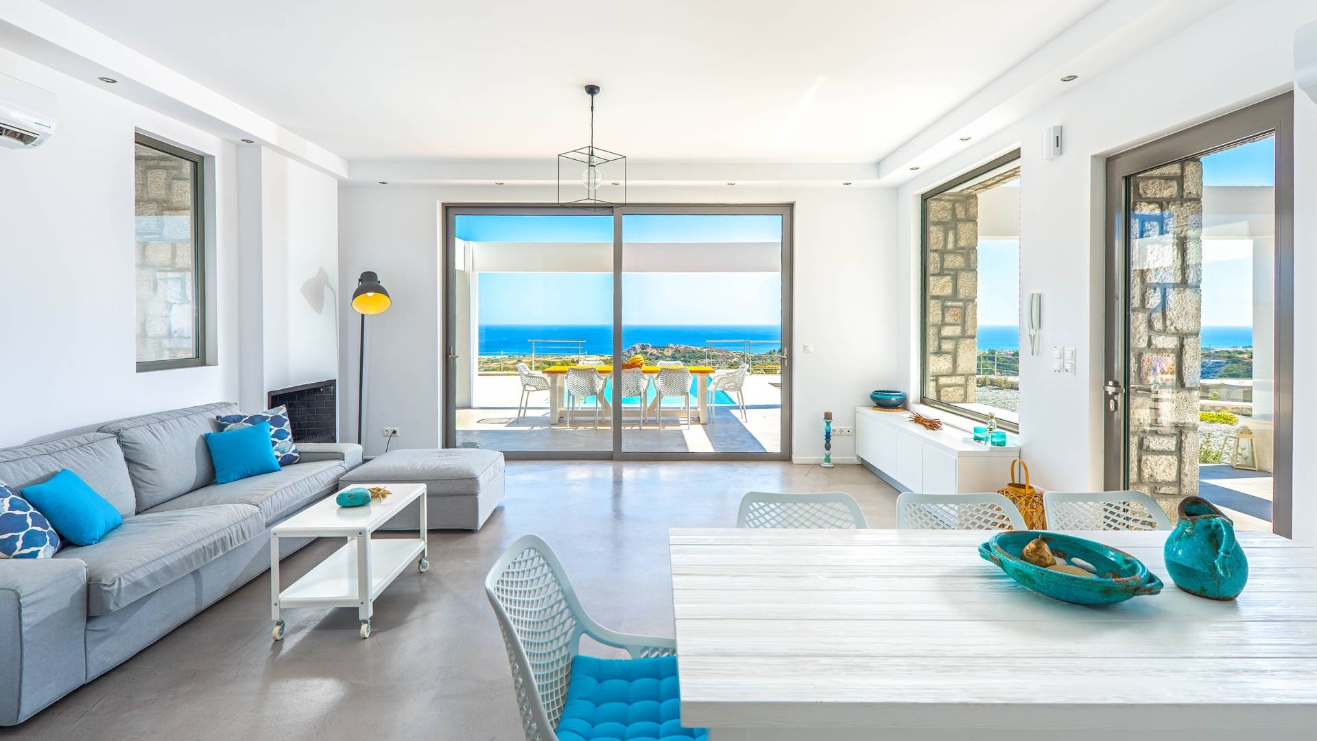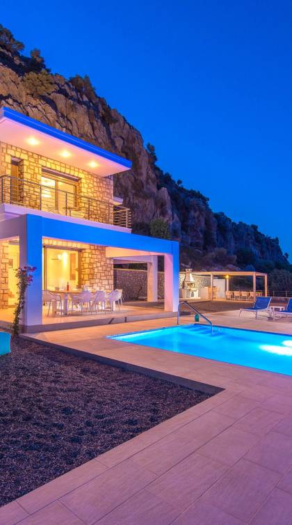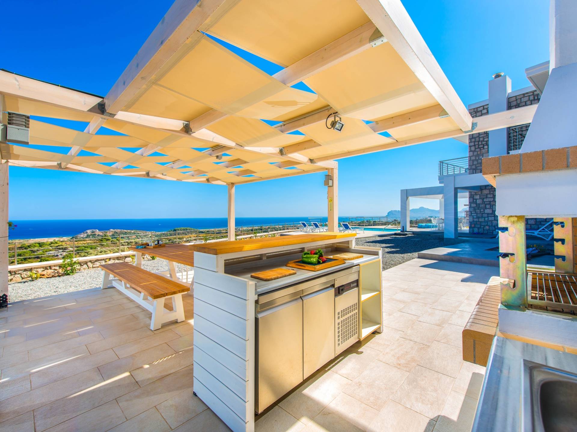 La Villa Olympos sur l'île de Rhodes est une villa exclusive nouvellement construite, qui offre confort et luxe dans un environnement privé. Construit avec des matériaux naturels il a une vue montagne à l'arrière et une vue mer à 180° à l'avant.