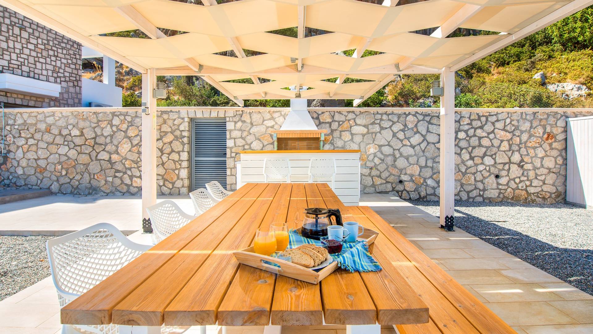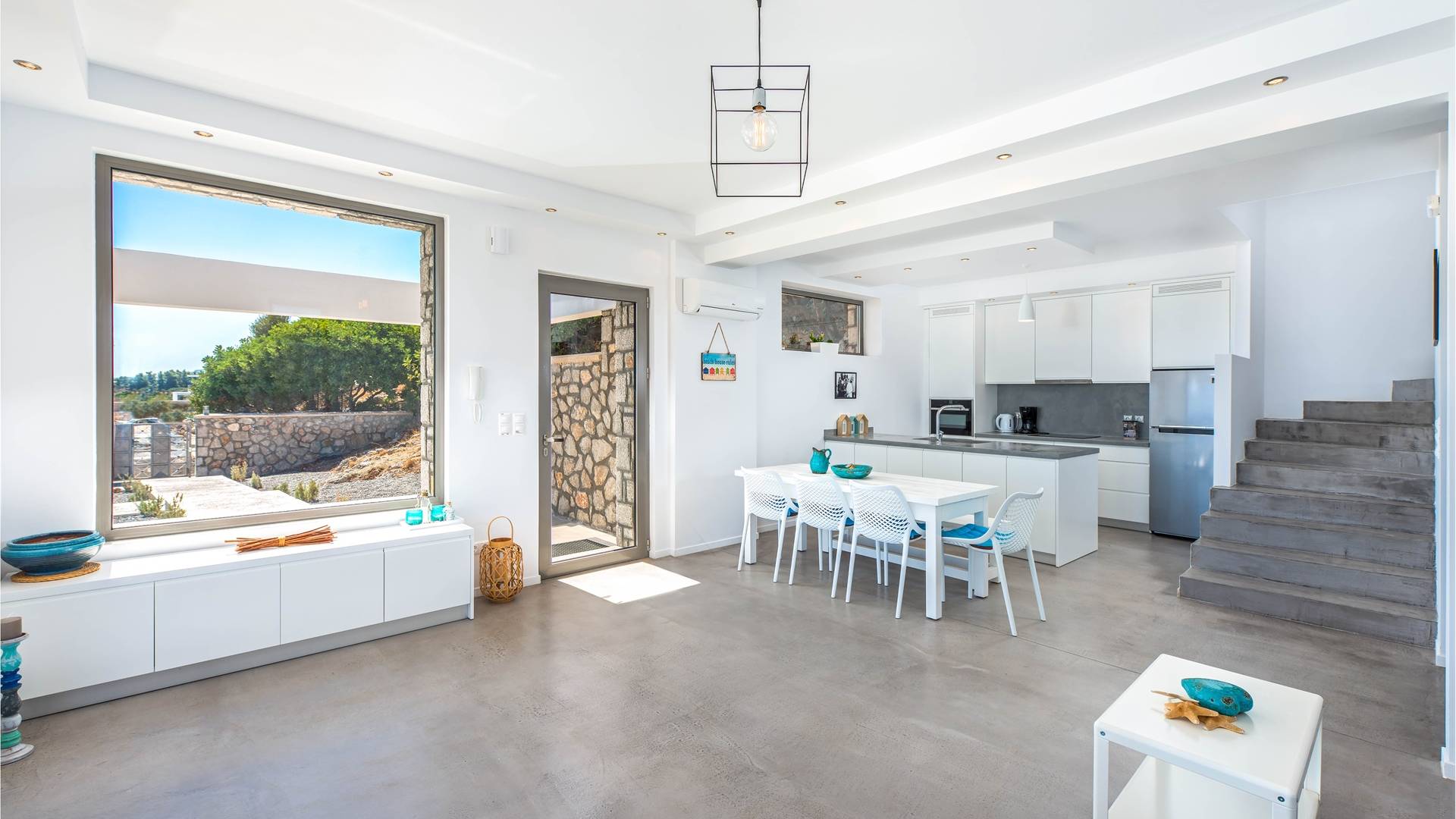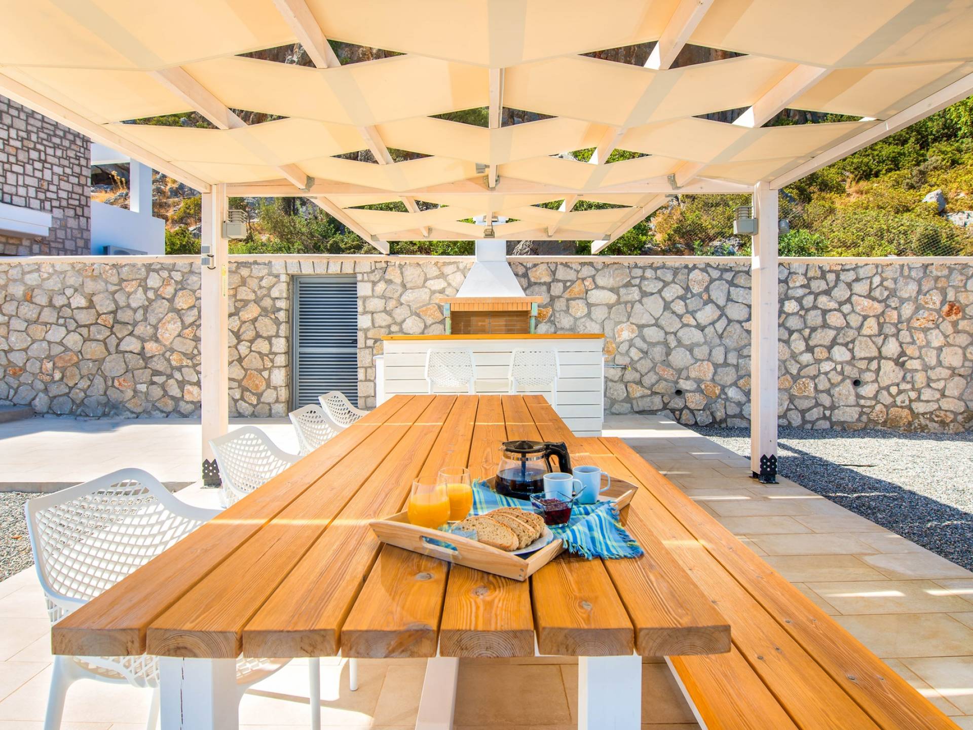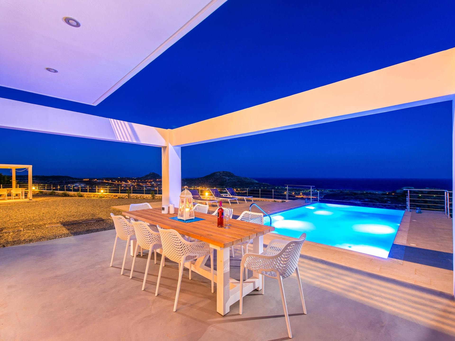 La Villa Olympos sur l'île de Rhodes est une villa exclusive nouvellement construite, qui offre confort et luxe dans un environnement privé. Construit avec des matériaux naturels il a une vue montagne à l'arrière et une vue mer à 180° à l'avant.
