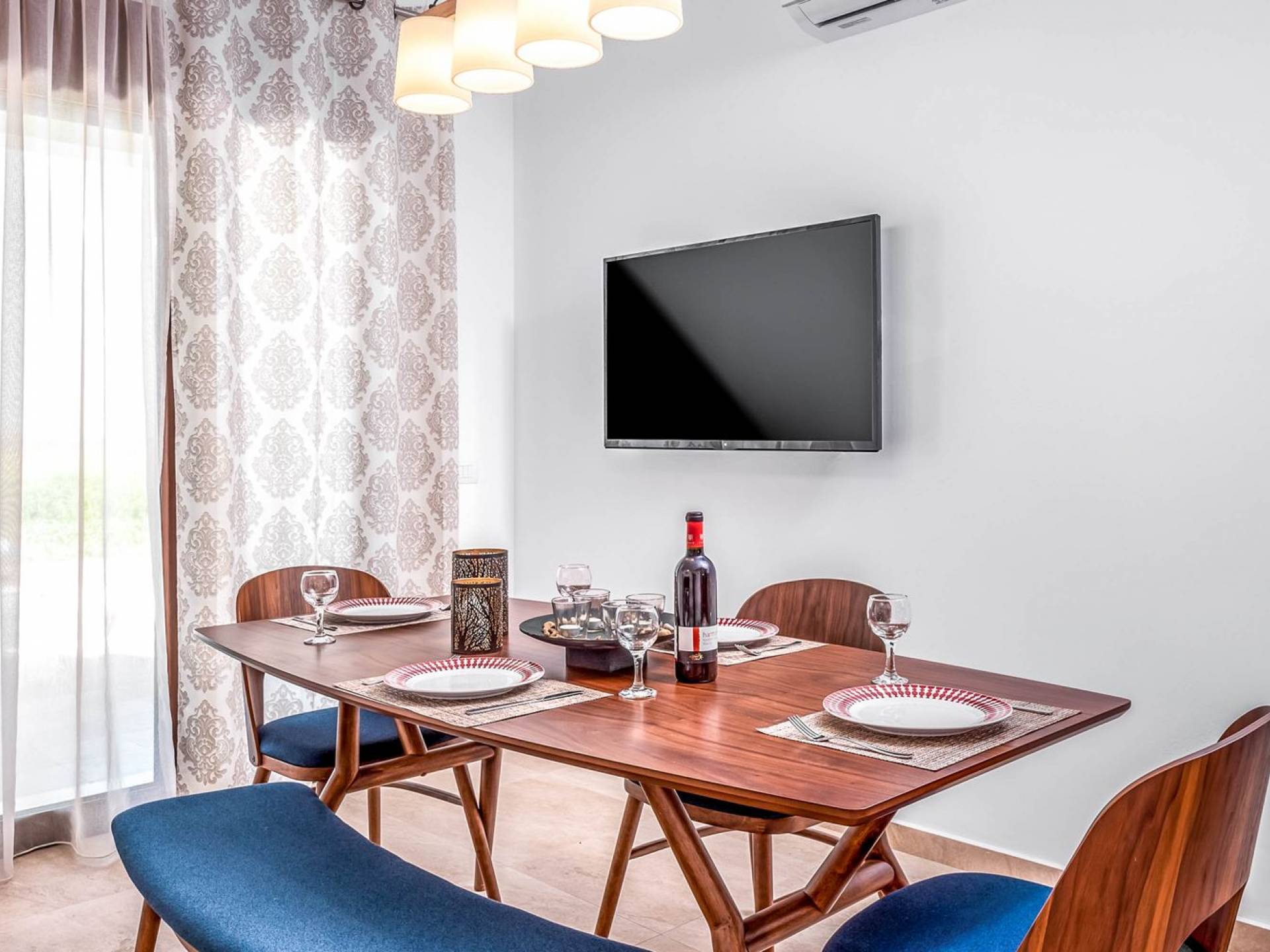 La décoration est simple, pratique et confortable. Il y a deux chambres au premier étage et un canapé-lit double au rez-de-chaussée. Il y a aussi une salle de bain avec douche à chaque étage. La cuisine est entièrement équipée et les ustensiles de barbecue à l'extérieur vous offrent la possibilité de profiter de dîners en plein air au bord de la piscine, tandis que la grande télévision à écran plat et le wifi gratuit vous occuperont pendant que vous planifiez votre prochaine aventure à l'extérieur.