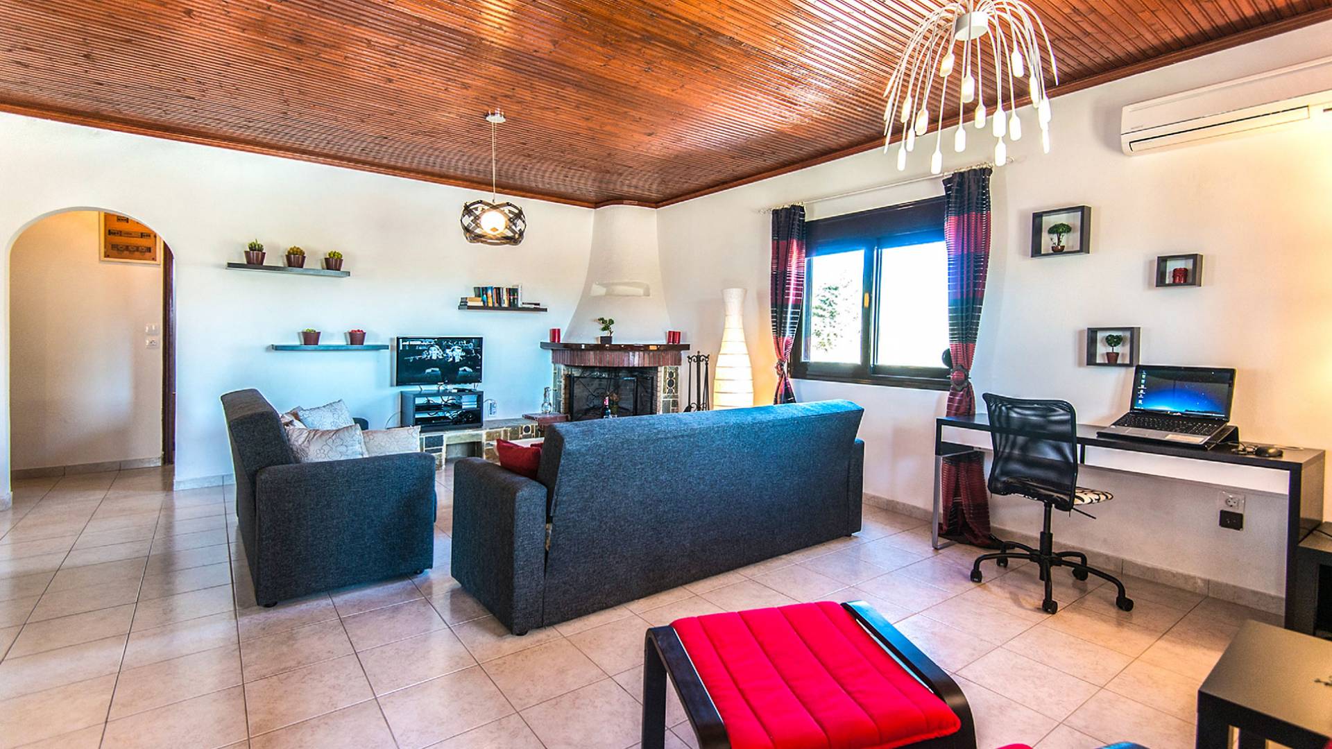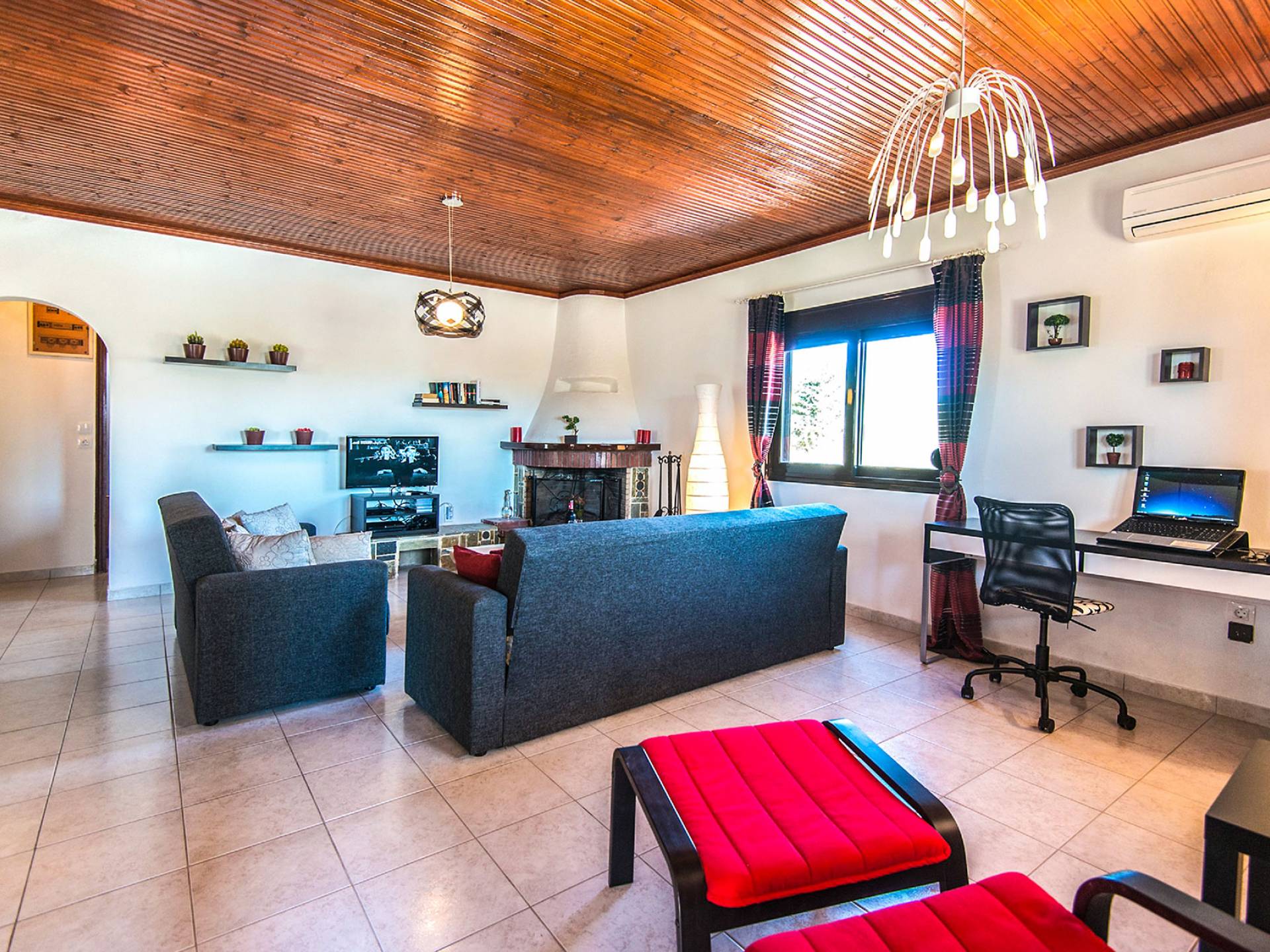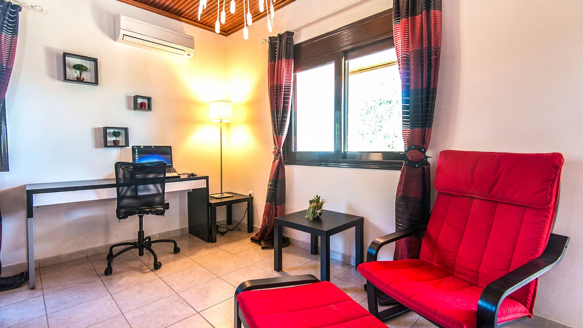 Il y a un spacieux salon climatisé avec un coin salon séparé. Il y a aussi une salle à manger et le centre de divertissement comprend une télévision par satellite à LED de 32 pouces, une console PlayStation avec quelques jeux, un ordinateur portable, ainsi qu'un cadre confortable pour les loisirs devant la cheminée. A l'extérieur, la véranda est équipée de mobilier de salon donnant sur la piscine et le jardin. Le mobilier d'extérieur élégant et moderne vous procurera une sensation de confort ultime. À l'extérieur, vous trouverez également une grande piscine privée avec transats et parasols, un grand barbecue avec tout l'équipement nécessaire et un petit terrain de football.