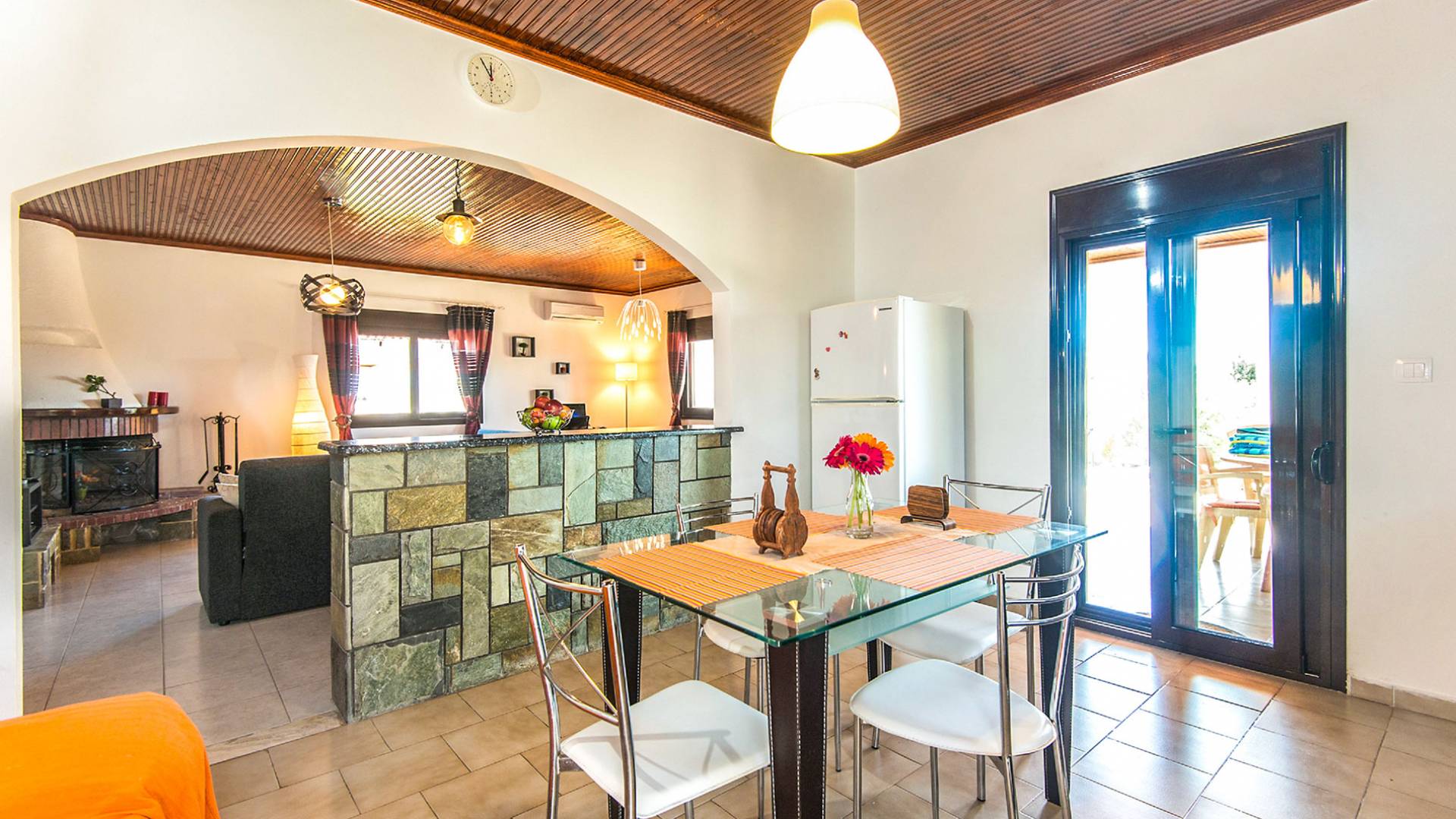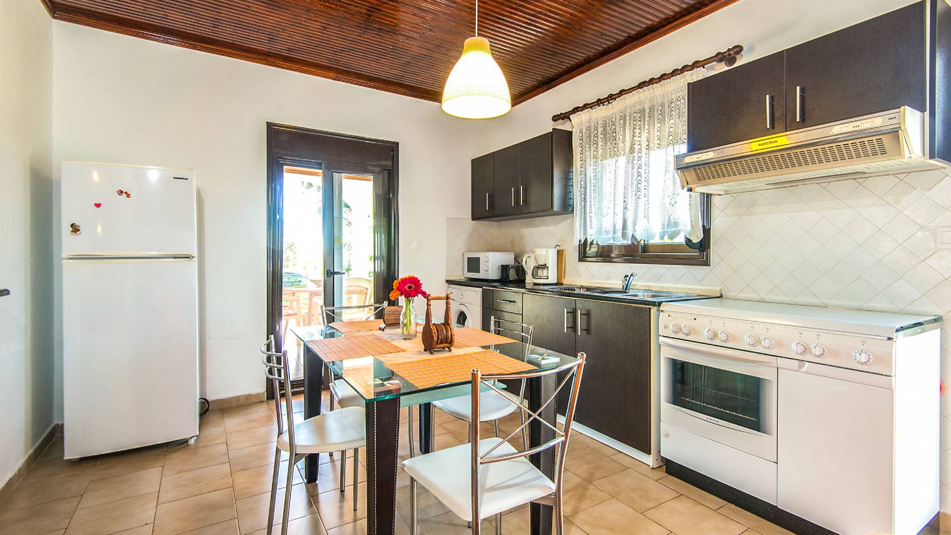 Minas Villa Rhodes dispose d'une cuisine américaine spacieuse avec de la lumière naturelle entrant par les fenêtres. Les portes vous mèneront à l'avant de la terrasse de la piscine pour une expérience culinaire en plein air ultime. Les cuisines sont entièrement équipées avec un four plaque de cuisson et une hotte aspirante, un four micro-ondes, un réfrigérateur-congélateur, un lave-linge, une cafetière et tous les ustensiles de cuisine nécessaires à la préparation et à la dégustation des repas.