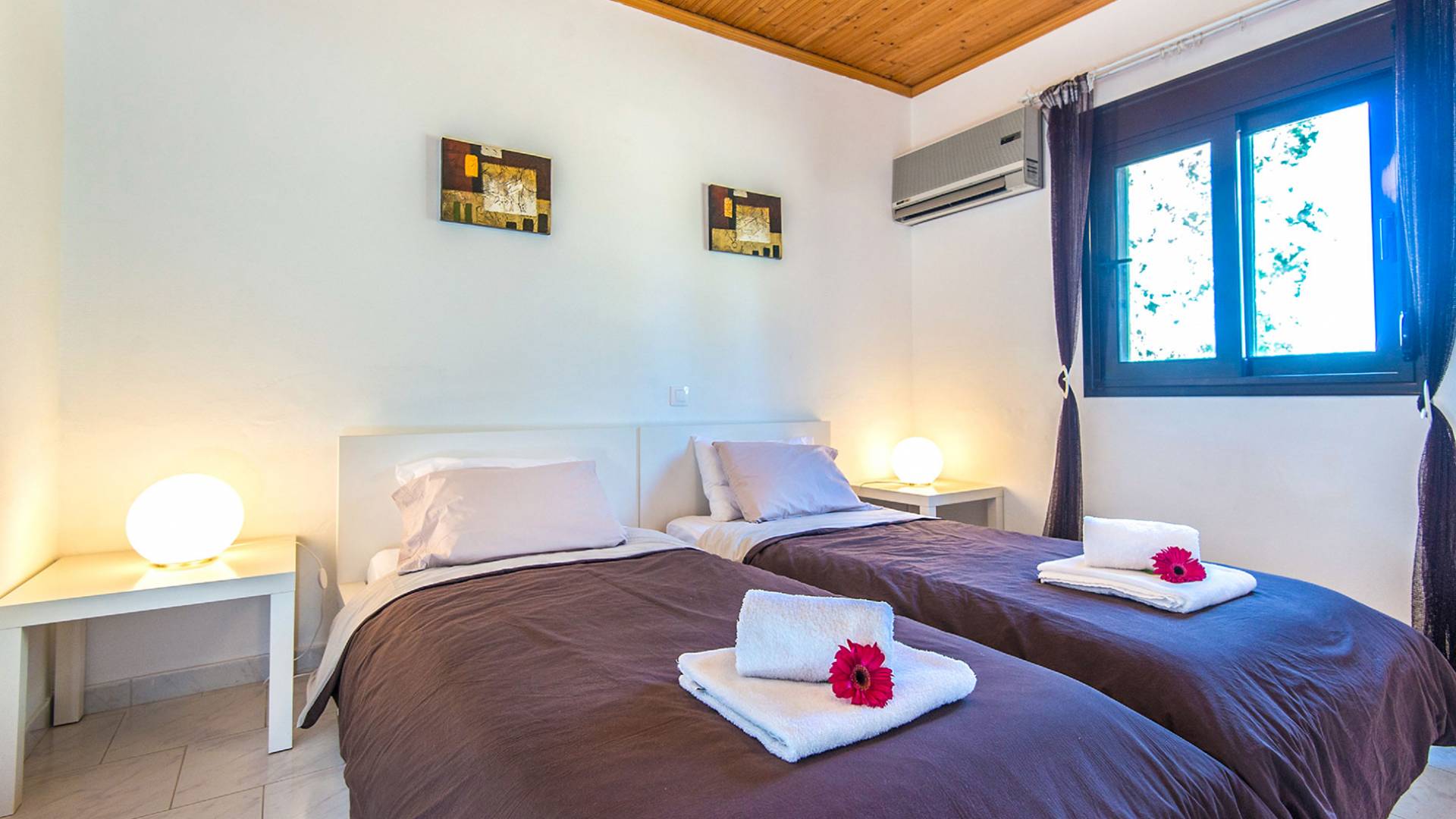 Il y a deux chambres confortables, entièrement meublées et climatisées, nous les appelons "Heaven" et "Ocean". Le "Heaven" dispose d'un lit king-size et est décoré dans des couleurs blanches et bleues pour ajouter un attrait de tradition à une expérience rajeunissante. La chambre « Océan » dispose de deux lits simples et est décorée dans des tons blancs et marrons pour créer une atmosphère chaleureuse et chaleureuse à travers des tons de terre. La salle de bain est une suite complète avec bain/douche, wc, lavabo et il y a aussi un sèche-cheveux et un miroir. Il comprend également un lavabo, des toilettes en porcelaine brillante et un boudoir avec un miroir mural, décorés de couleurs modernes bleu et blanc offrant une esthétique élégante et contemporaine.