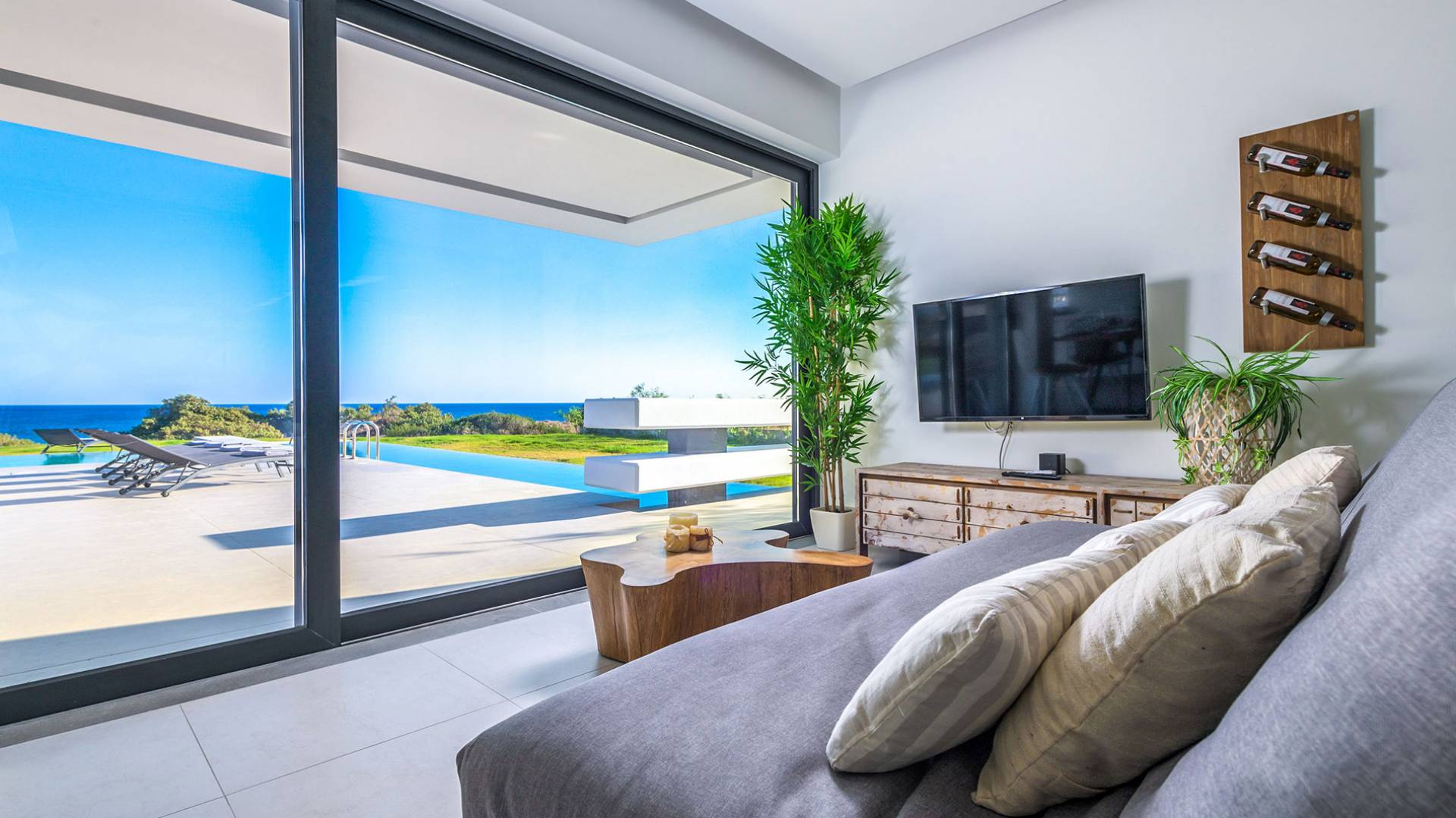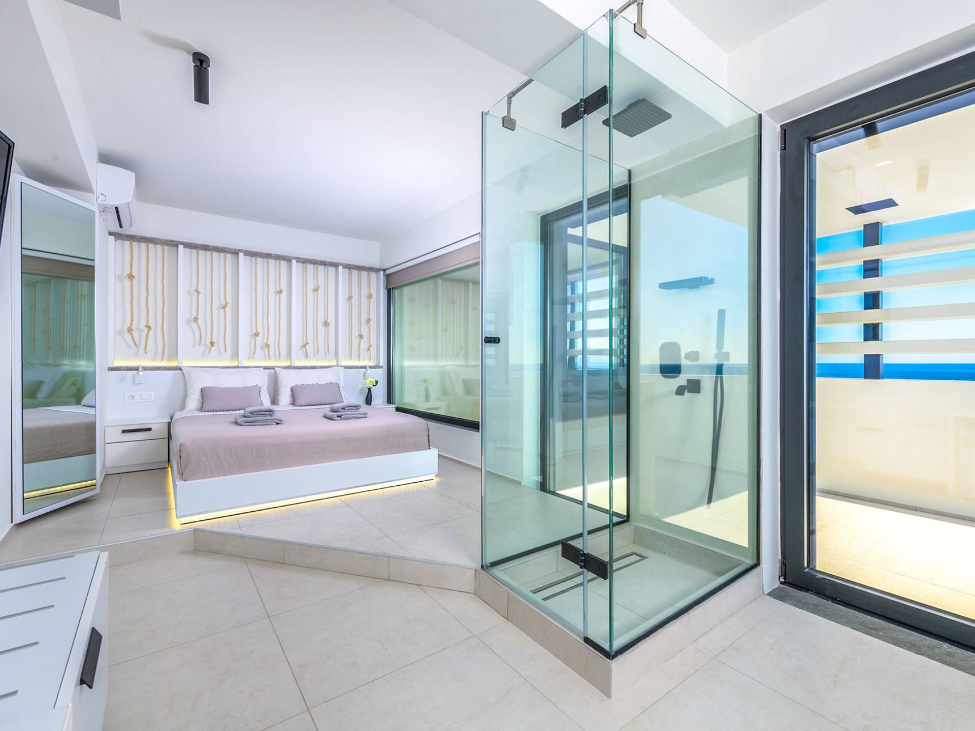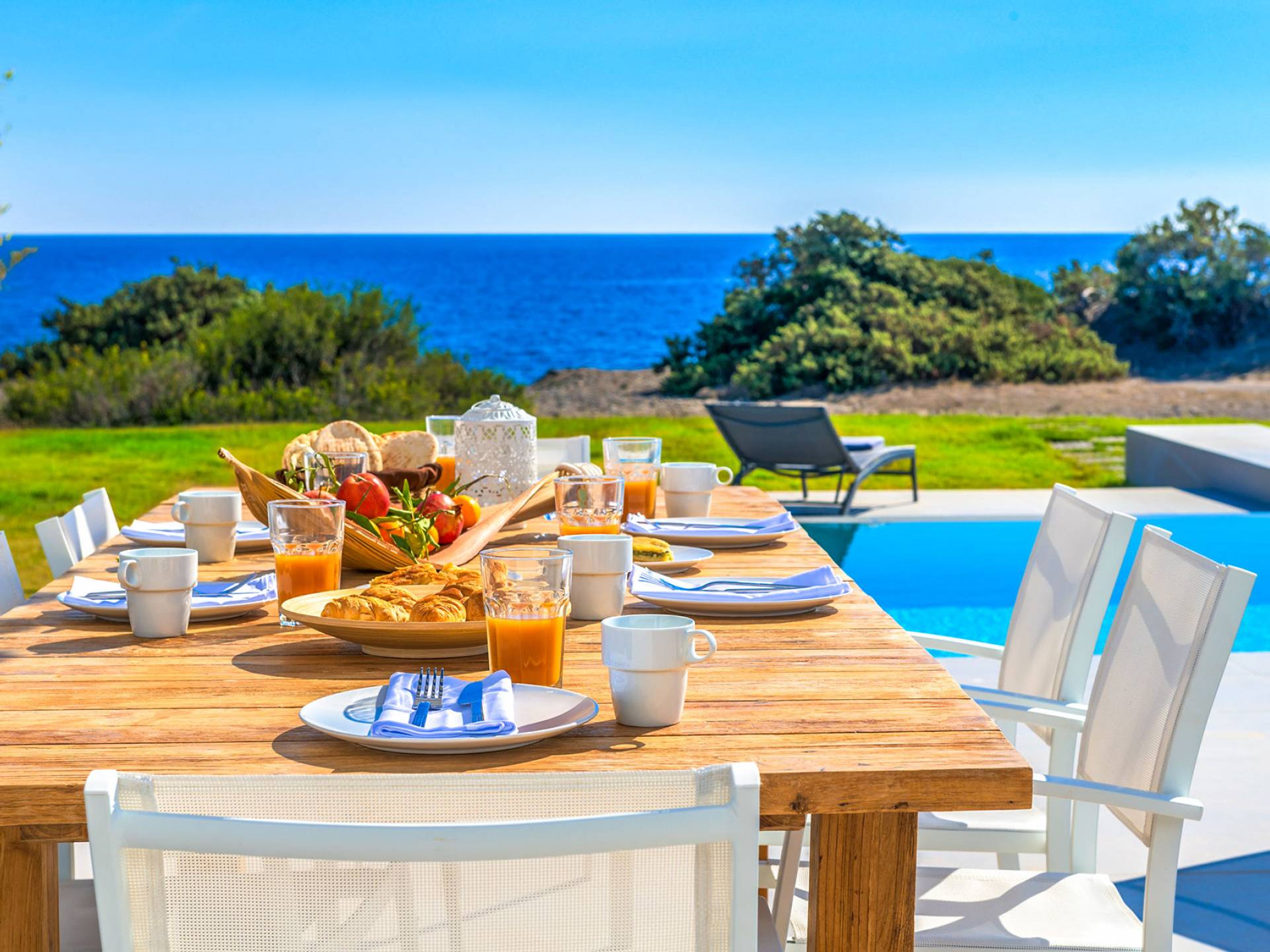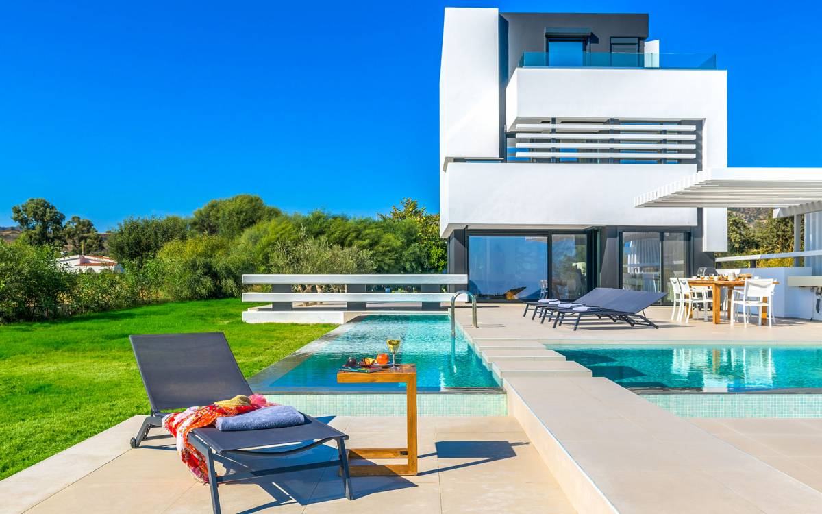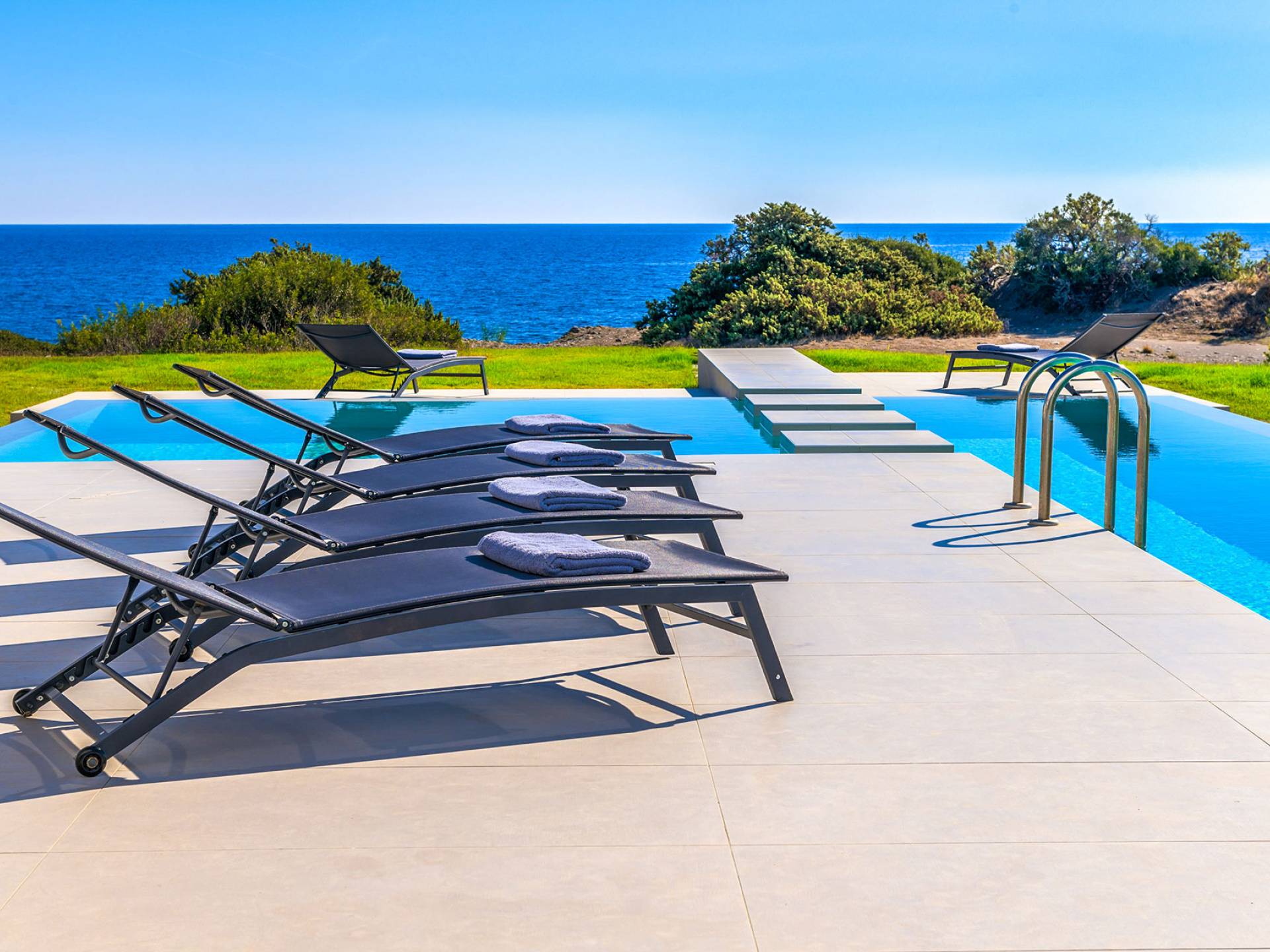 La Royal Albatross Villa accueille jusqu'à 7 personnes dans 3 chambres au design moderne avec lits doubles et une chambre avec 1 lit simple. Toutes les chambres s'ouvrent sur un balcon-terrasse meublé avec une vue fascinante sur la mer Égée. La villa est conçue pour offrir un séjour confortable et dispose d'un salon spacieux équipé d'une grande télévision à écran plat avec chaînes satellite, d'une cuisine moderne entièrement équipée, d'une salle de jeux avec console de jeux et de 3 salles de bains.