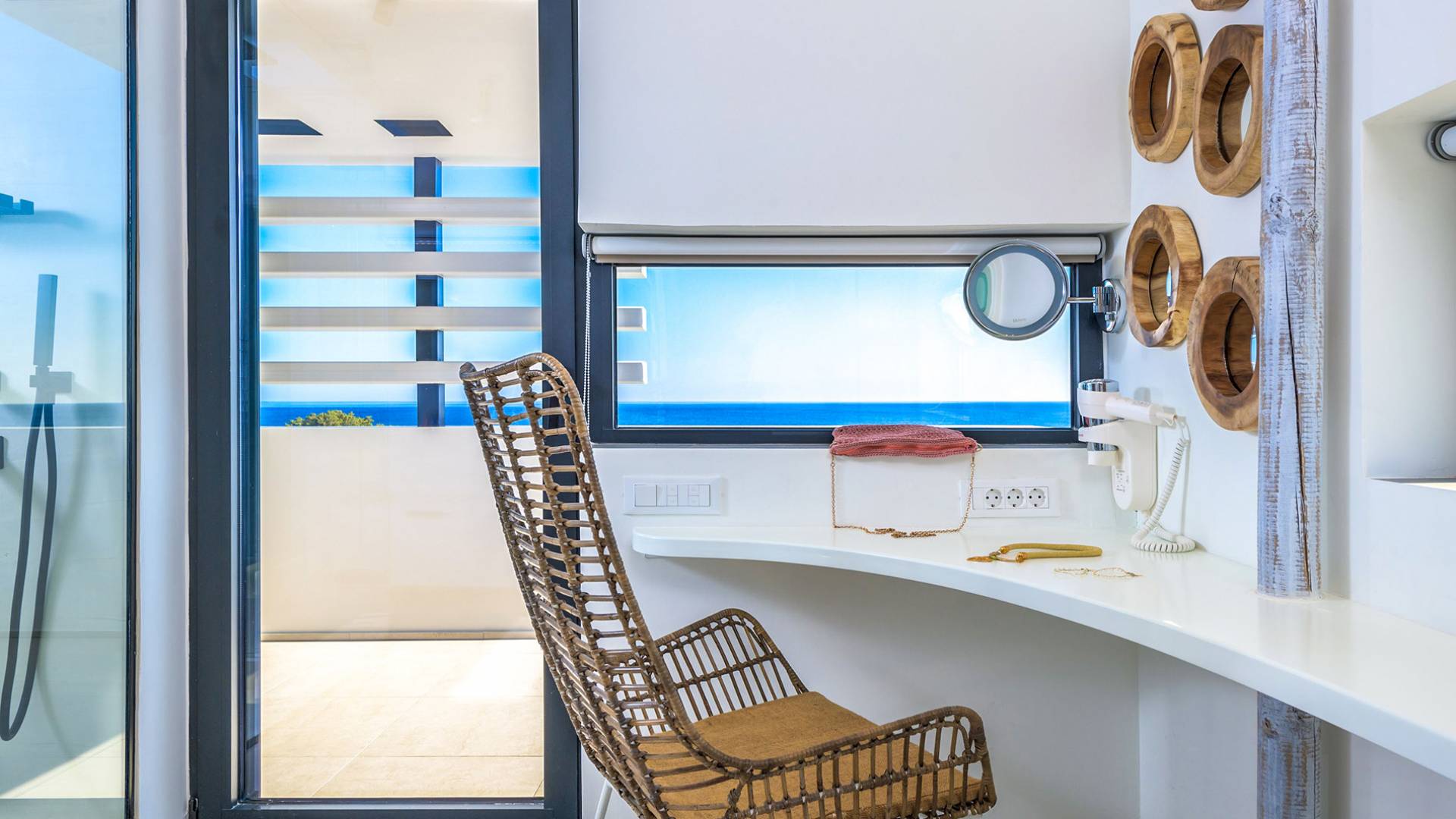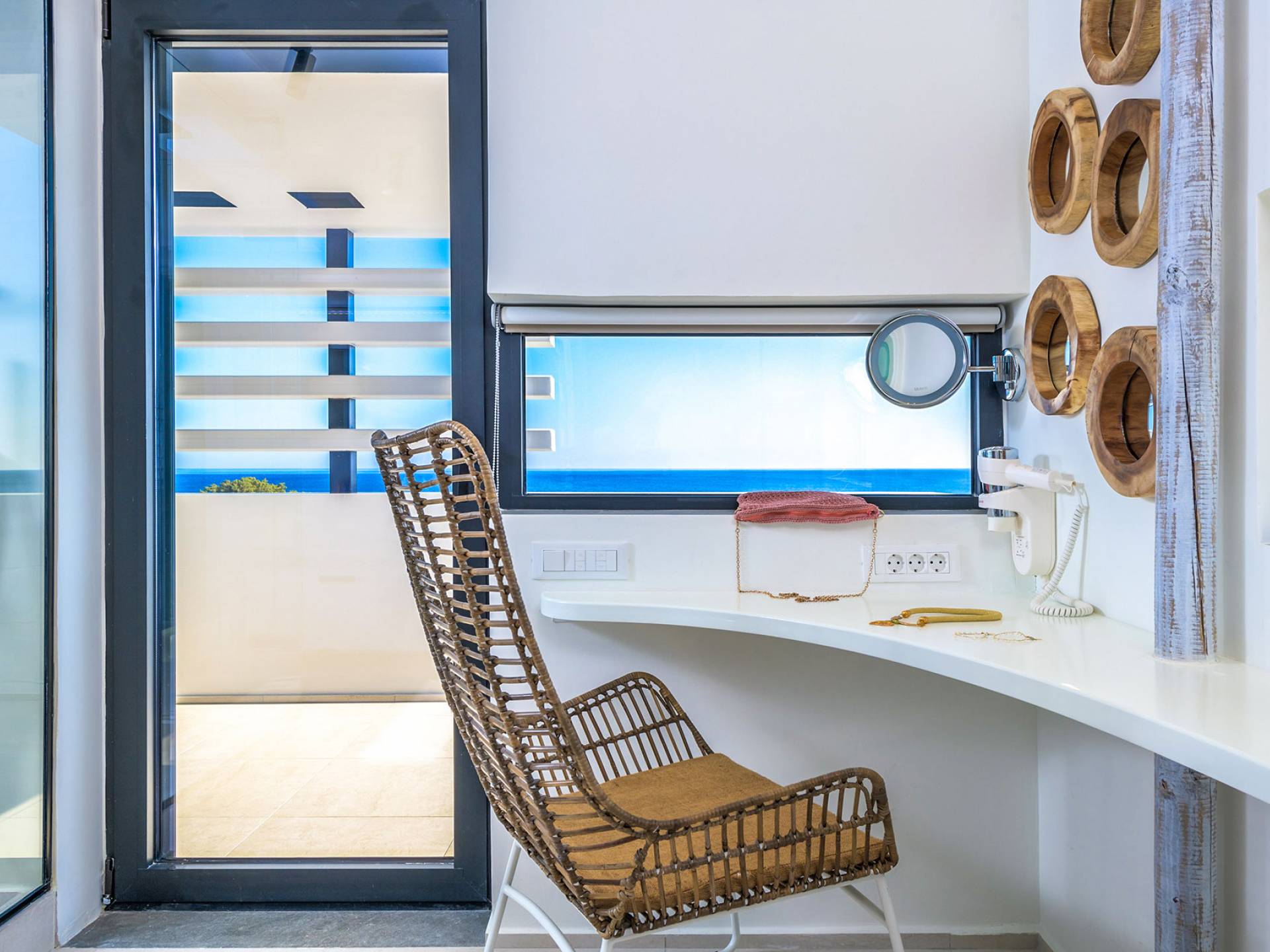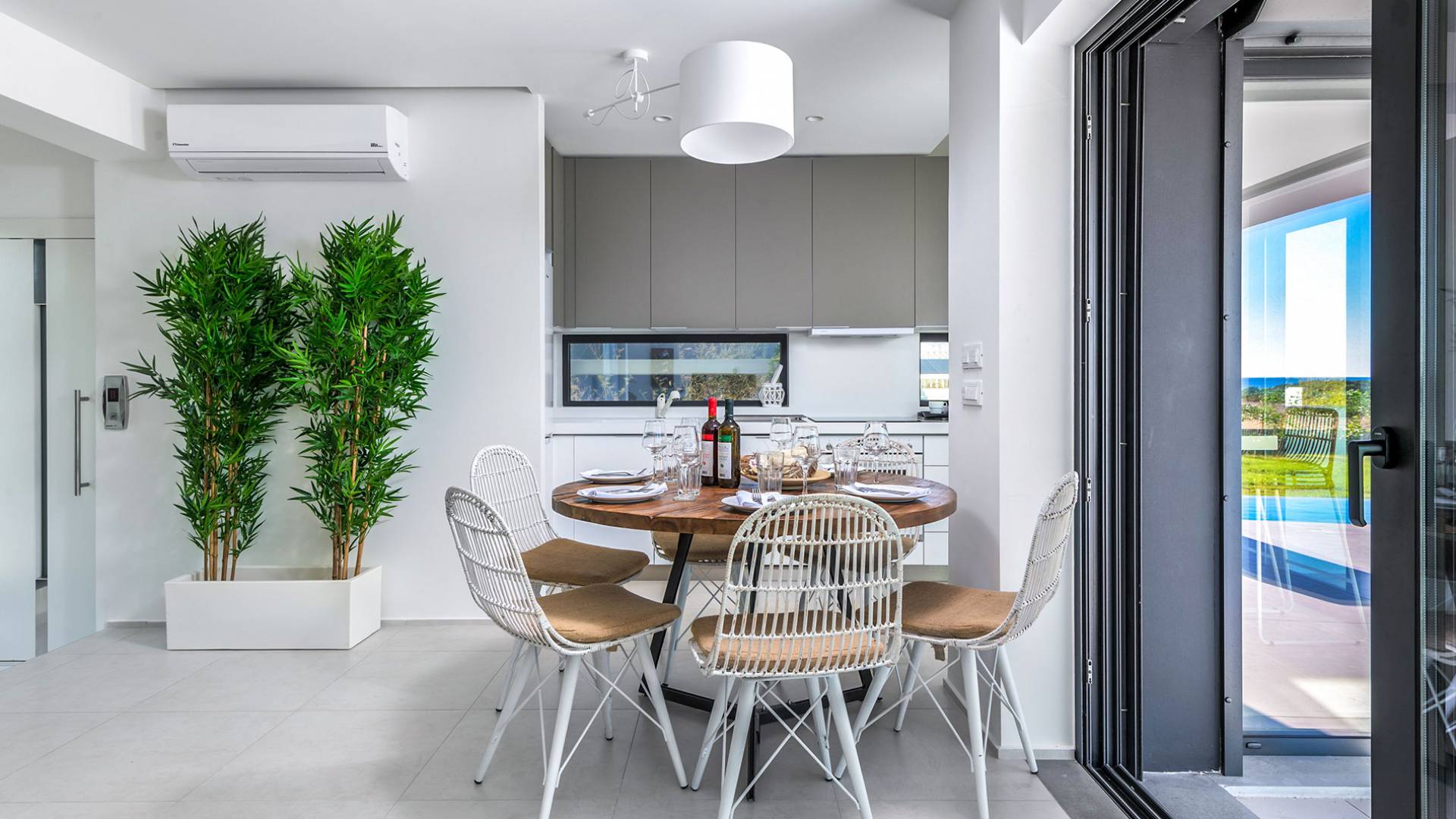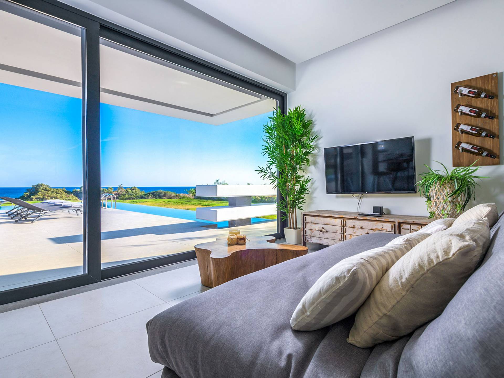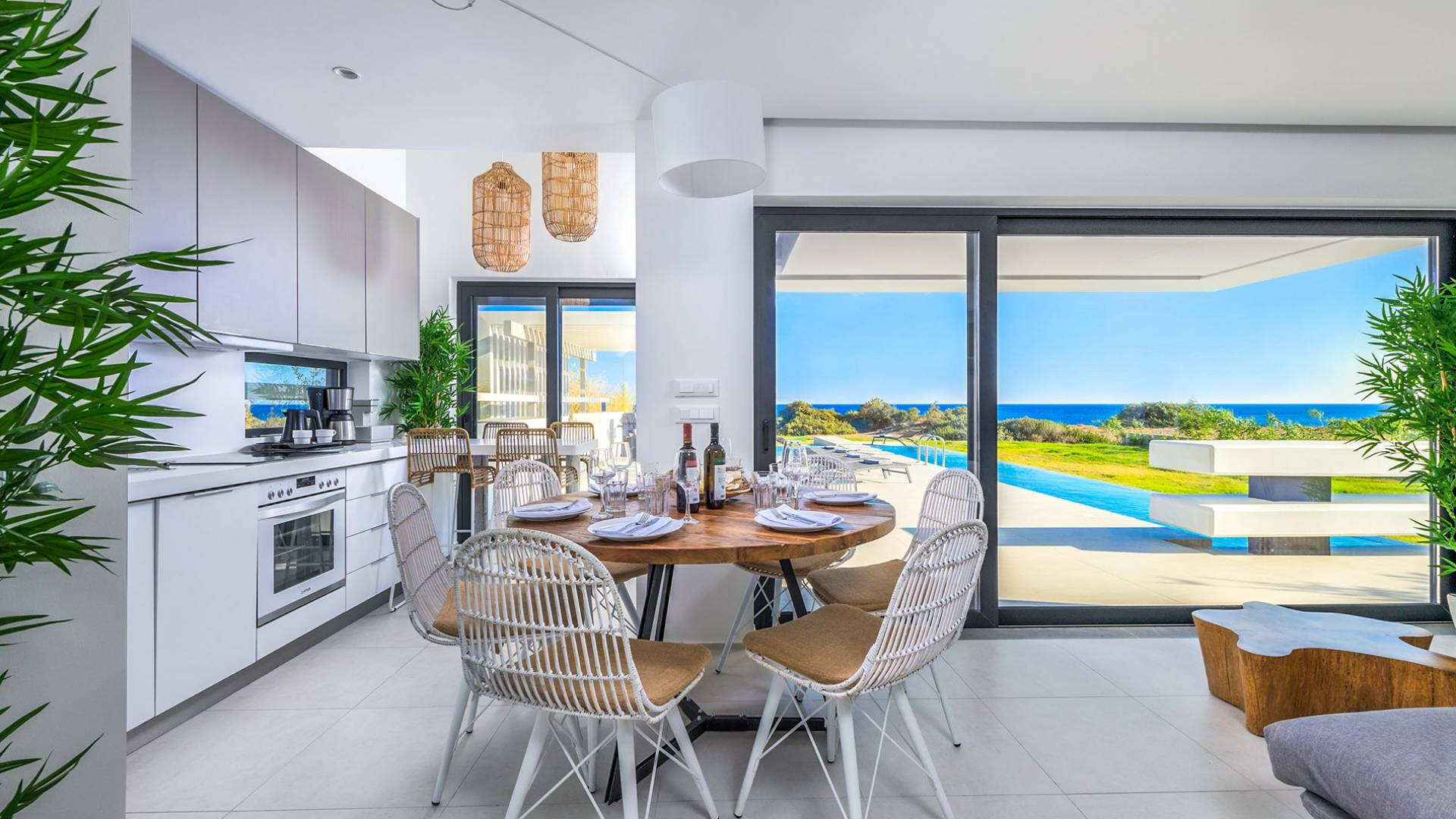 La Royal Albatross Villa accueille jusqu'à 7 personnes dans 3 chambres au design moderne avec lits doubles et une chambre avec 1 lit simple. Toutes les chambres s'ouvrent sur un balcon-terrasse meublé avec une vue fascinante sur la mer Égée. La villa est conçue pour offrir un séjour confortable et dispose d'un salon spacieux équipé d'une grande télévision à écran plat avec chaînes satellite, d'une cuisine moderne entièrement équipée, d'une salle de jeux avec console de jeux et de 3 salles de bains.