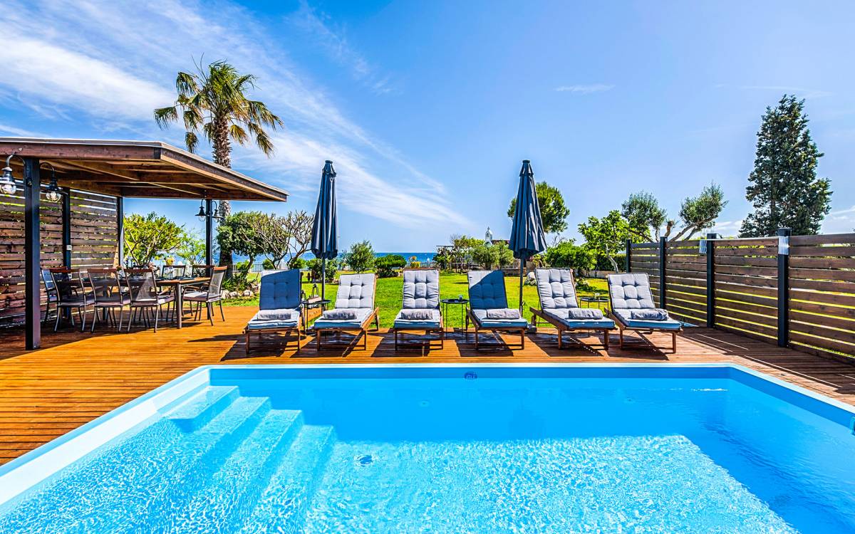Nastazia Luxury Beach House Rhodes est une location de villa de luxe avec 4 chambres et une piscine privée. Situé au paradis au-dessus de la plage d'Ialysos avec sa piscine immaculée, c'est une propriété de joyau caché avec un intérieur unique et les plus spectaculaires près de 180 vues ininterrompues ! Intime et calme, absolument privé aussi, cette exquise retraite secrète est probablement l'une des propriétés les plus romantiques de l'île de Rhodes !