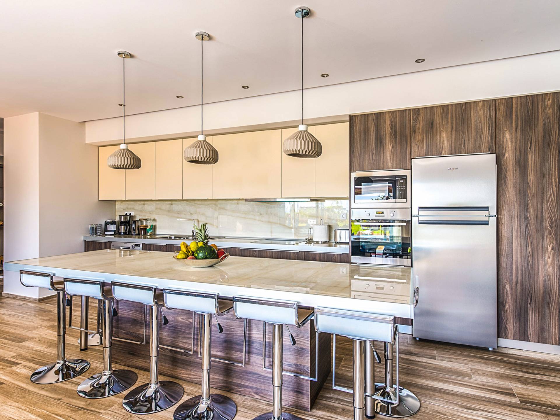 La maison dispose de 4 chambres avec 4 salles de bain attenantes avec matelas de haute qualité, TV satellite et bien sûr climatisées. Le salon dispose d'un canapé confortable avec télévision par satellite + Netflix. La cuisine est entièrement équipée avec tous les appareils de haute qualité pour préparer vos repas. Dehors, il y a des chaises longues pour nos clients et un patio privé avec salle à manger en plein air et barbecue où vous pourrez prendre vos repas.