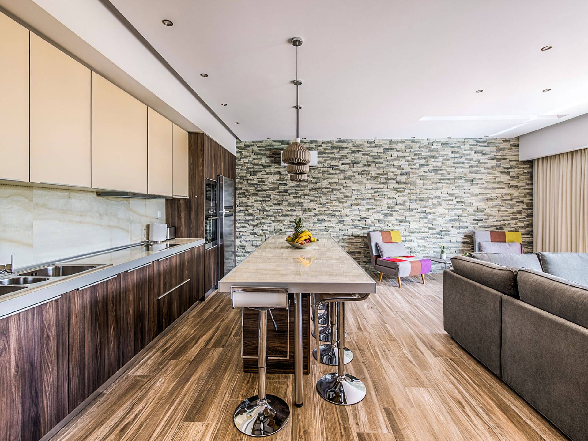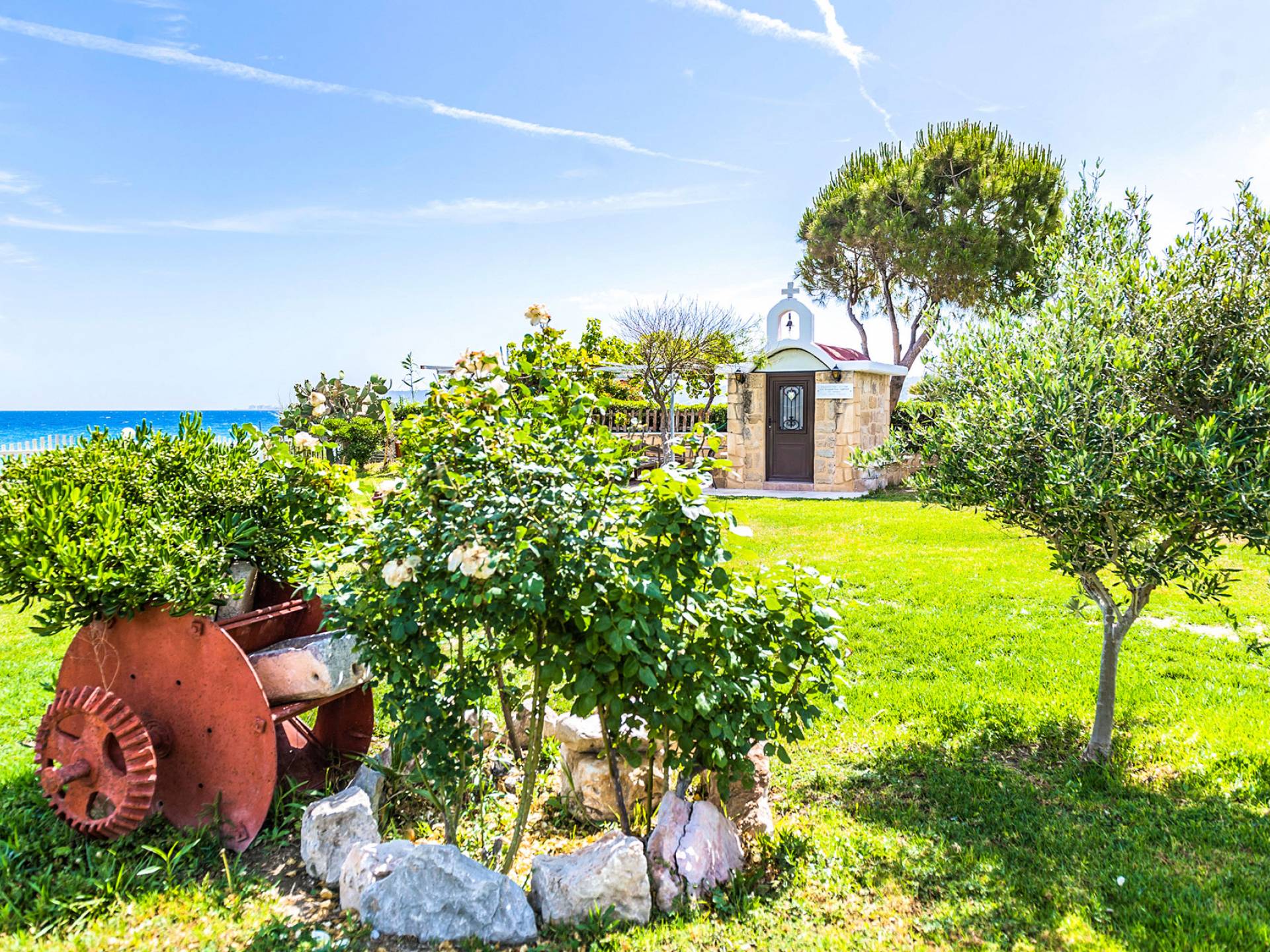 Située sur un côté très paisible d'Ialysos, à quelques mètres au-dessus du niveau de la mer et entourée d'un jardin méditerranéen, cette maison unique est l'endroit idéal pour une escapade romantique dans une intimité absolue mais est également un refuge parfait pour les familles avec enfants ou un groupe d'amis. À quelques pas, vous trouverez de nombreuses tavernes, cafés, bars, supermarchés et à moins de 10 minutes en voiture du centre-ville de Rhodes.