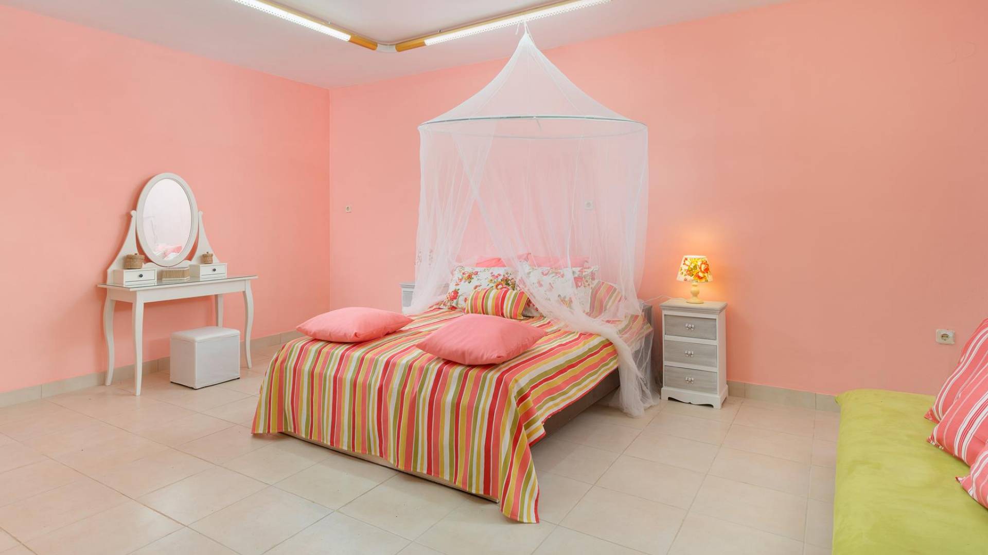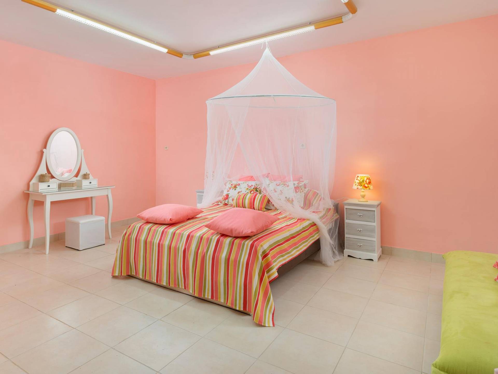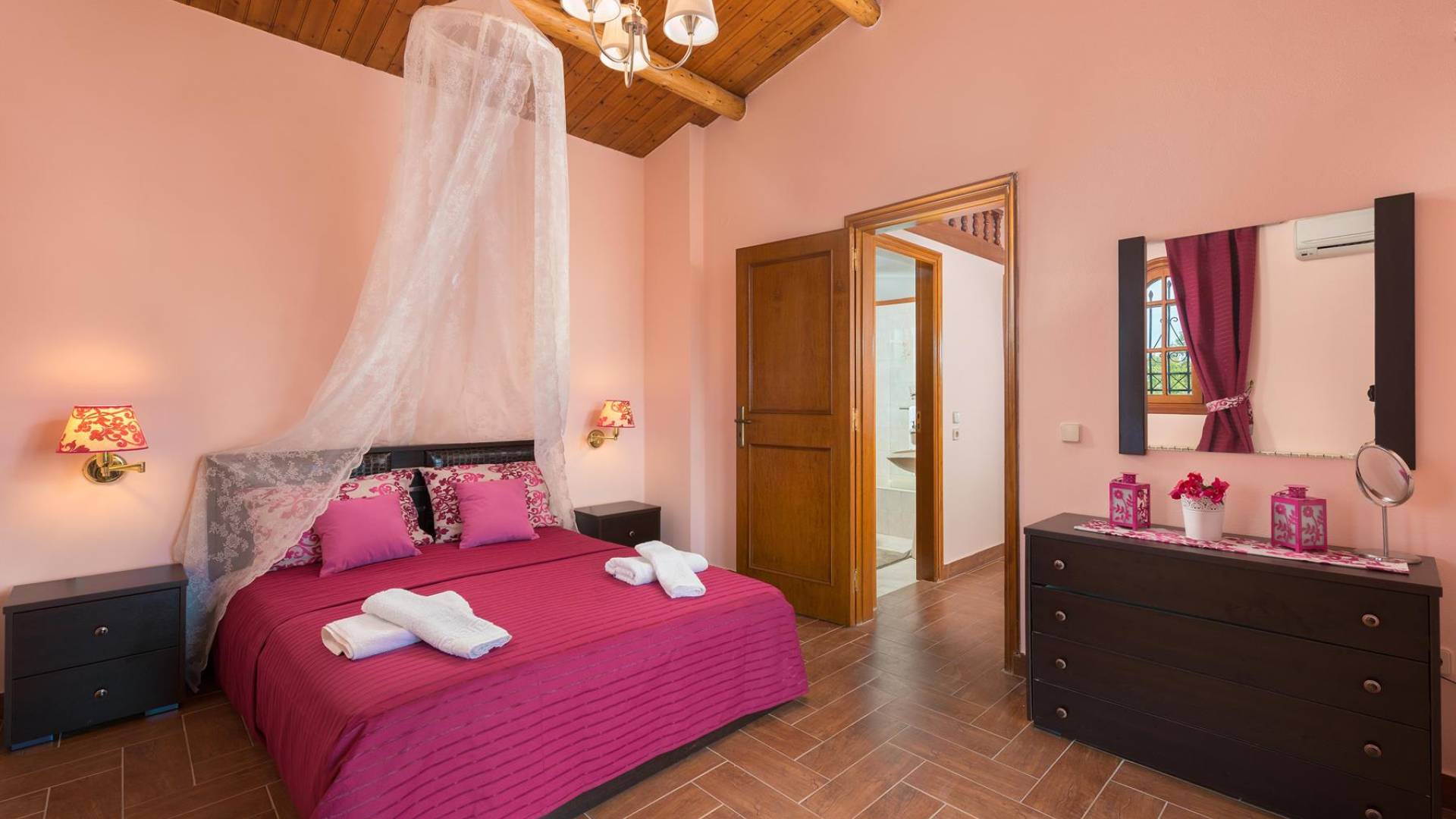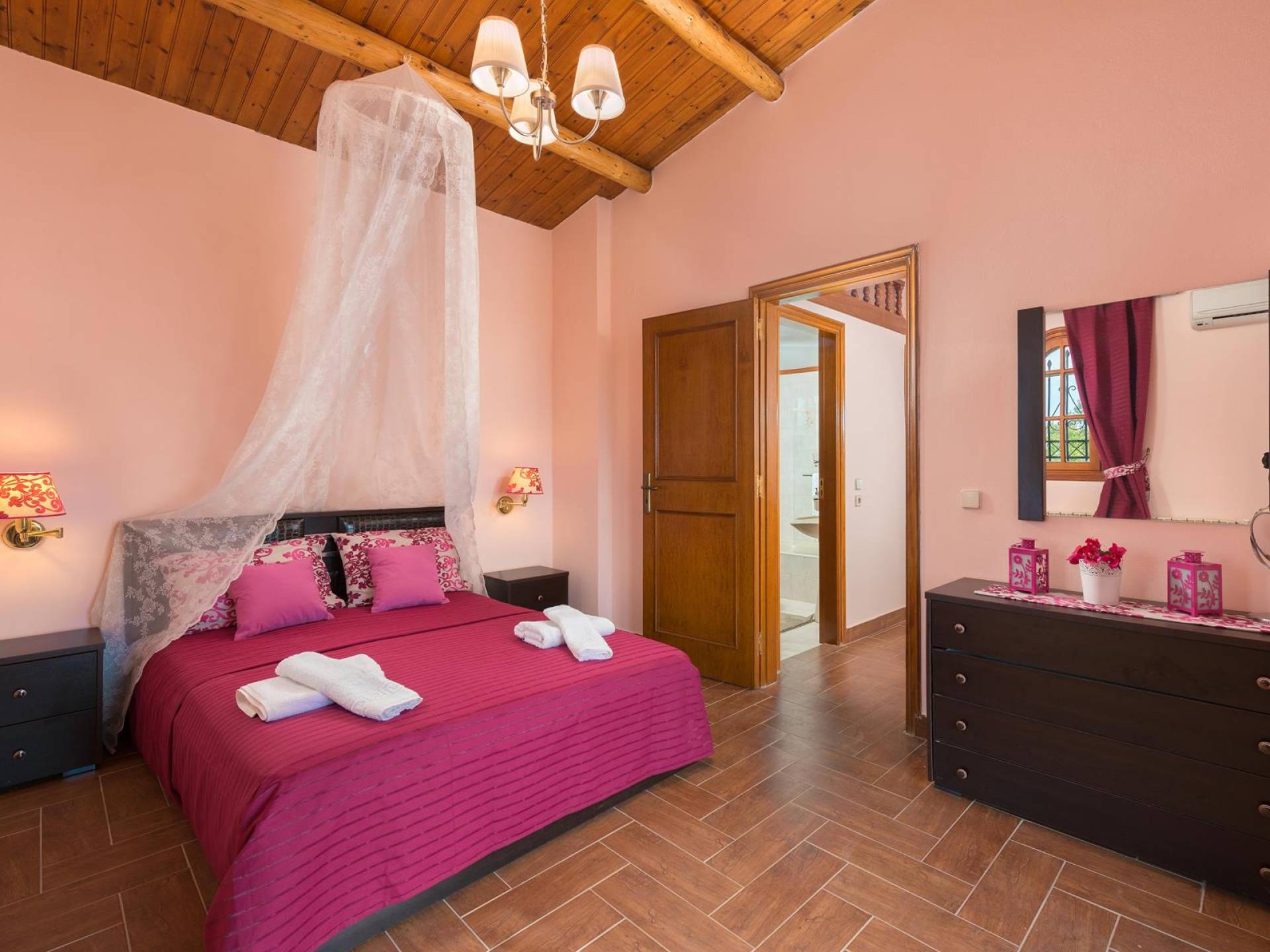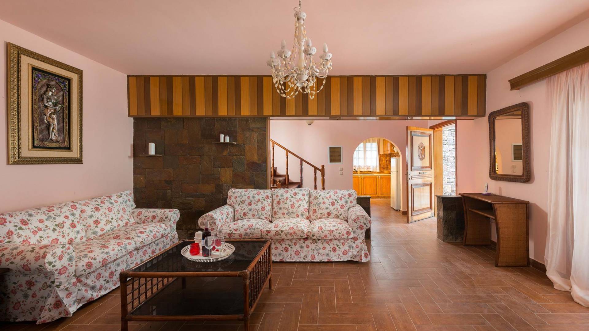 Au premier étage, il y a deux chambres joliment décorées. La première dispose d'un lit double et s'ouvre sur un balcon avec vue mer et piscine. Une table à manger est disponible sur le balcon d'où vous pourrez profiter de magnifiques couchers de soleil, alors que le soleil se couche dans la mer. La deuxième chambre a une construction traditionnelle spéciale de lits qui est utilisée dans l'île voisine de Syme (4 lits sont construits sur deux niveaux différents). Cette chambre donne sur le jardin. A cet étage, il y a une salle de bain avec baignoire. Au demi-sous-sol, il y a une troisième chambre ensoleillée décorée dans un style romantique joyeux.