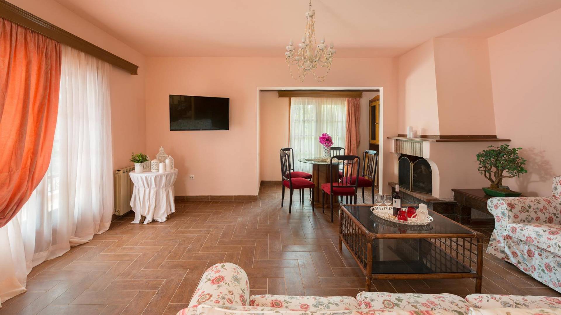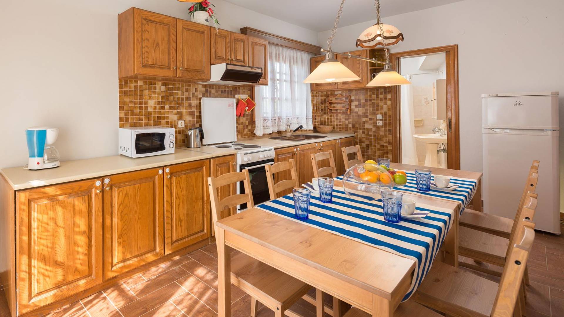 Marianna Villa 1 Rhodes peut accueillir de 4 à 8 personnes. Cette villa de deux étages dispose d'un intérieur de 180m2 et d'un jardin de 600m2. Au rez-de-chaussée, vous trouverez un coin salon spacieux décoré avec des meubles de style anglais, une cheminée, une télévision par satellite à écran plat et une bibliothèque. Ici, vous pourrez préparer vos repas dans la cuisine entièrement équipée qui dispose d'une table à manger, d'une cuisinière, d'un réfrigérateur, d'un grille-pain, d'une machine à café et d'une bouilloire. Il y a aussi une salle de bains avec douche.