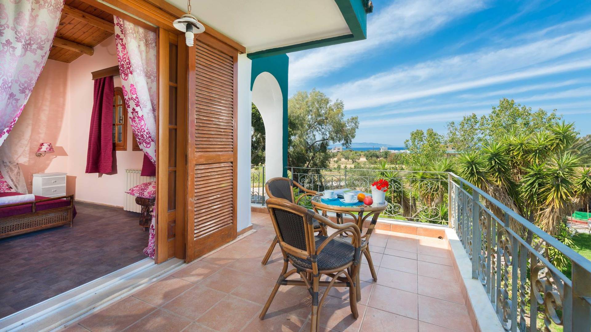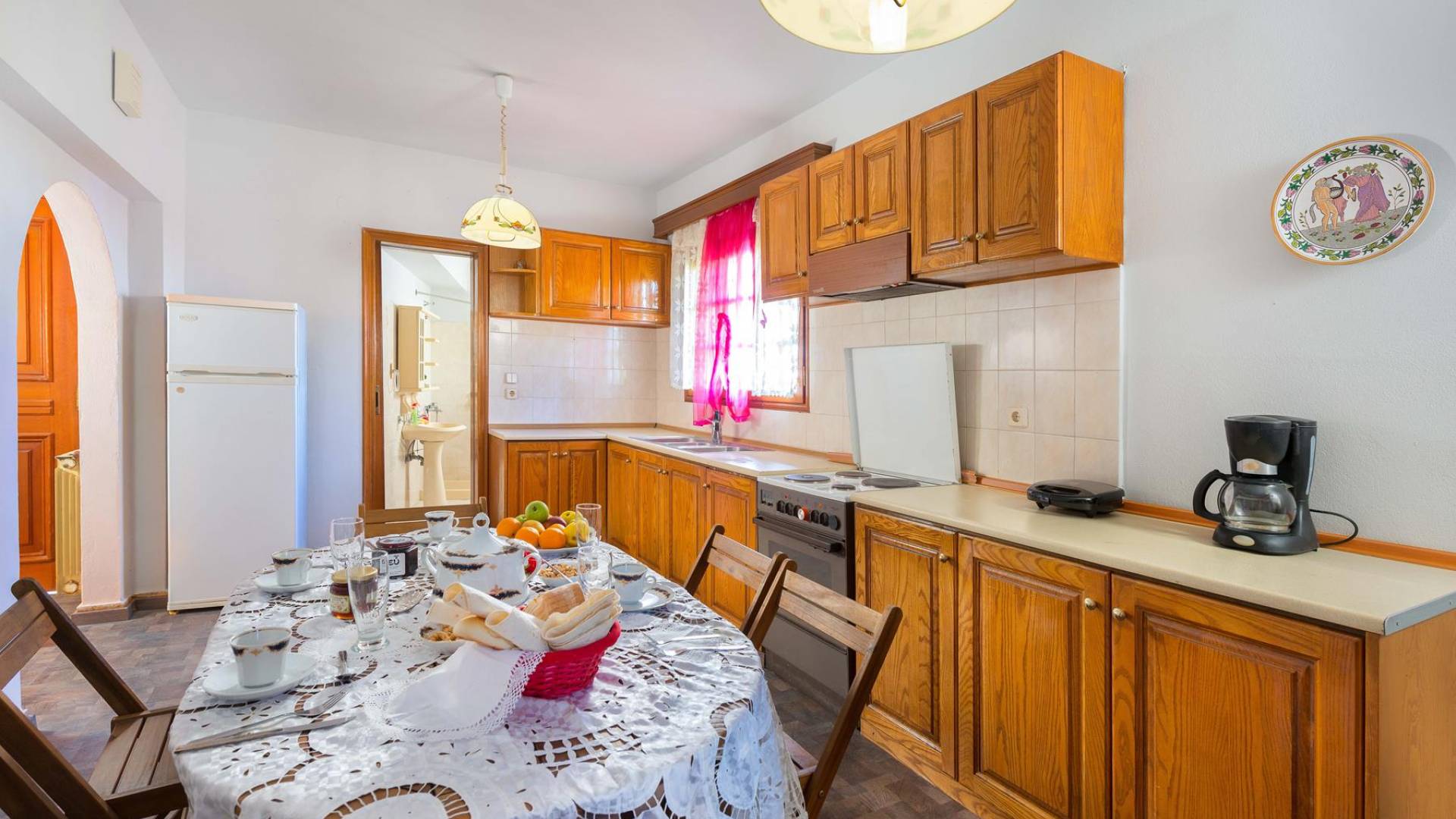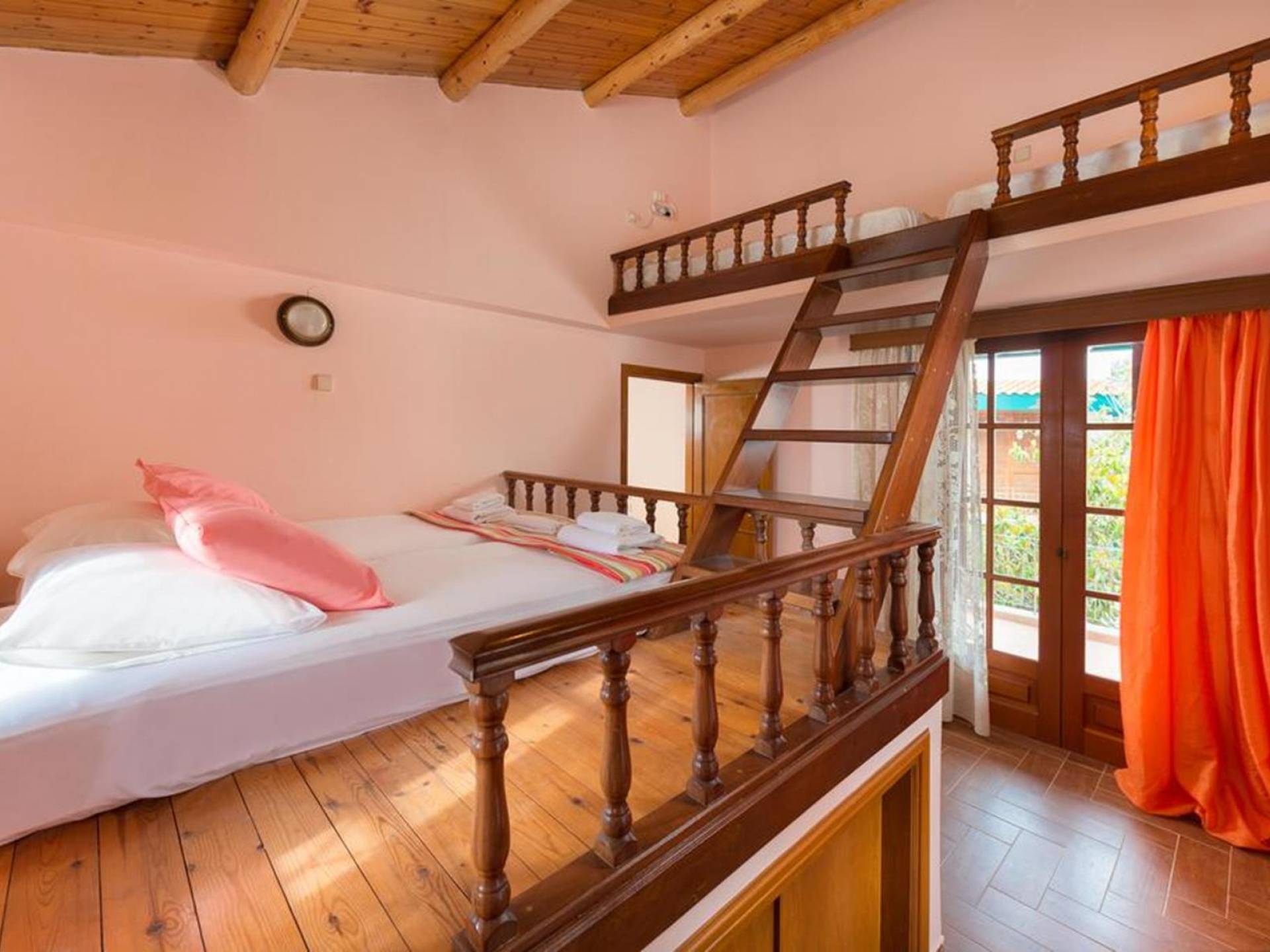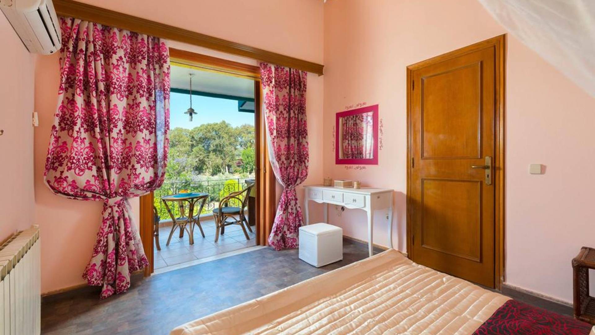 Au premier étage, il y a deux chambres joliment décorées. La première dispose d'un lit double et s'ouvre sur un balcon avec vue sur la mer et les champs. Une table à manger est disponible sur le balcon. La deuxième chambre a une construction traditionnelle spéciale de lits qui est utilisée dans l'île voisine de Syme (4 lits sont construits sur deux niveaux différents). Cette chambre donne sur le jardin. A cet étage, il y a une salle de bain avec baignoire.