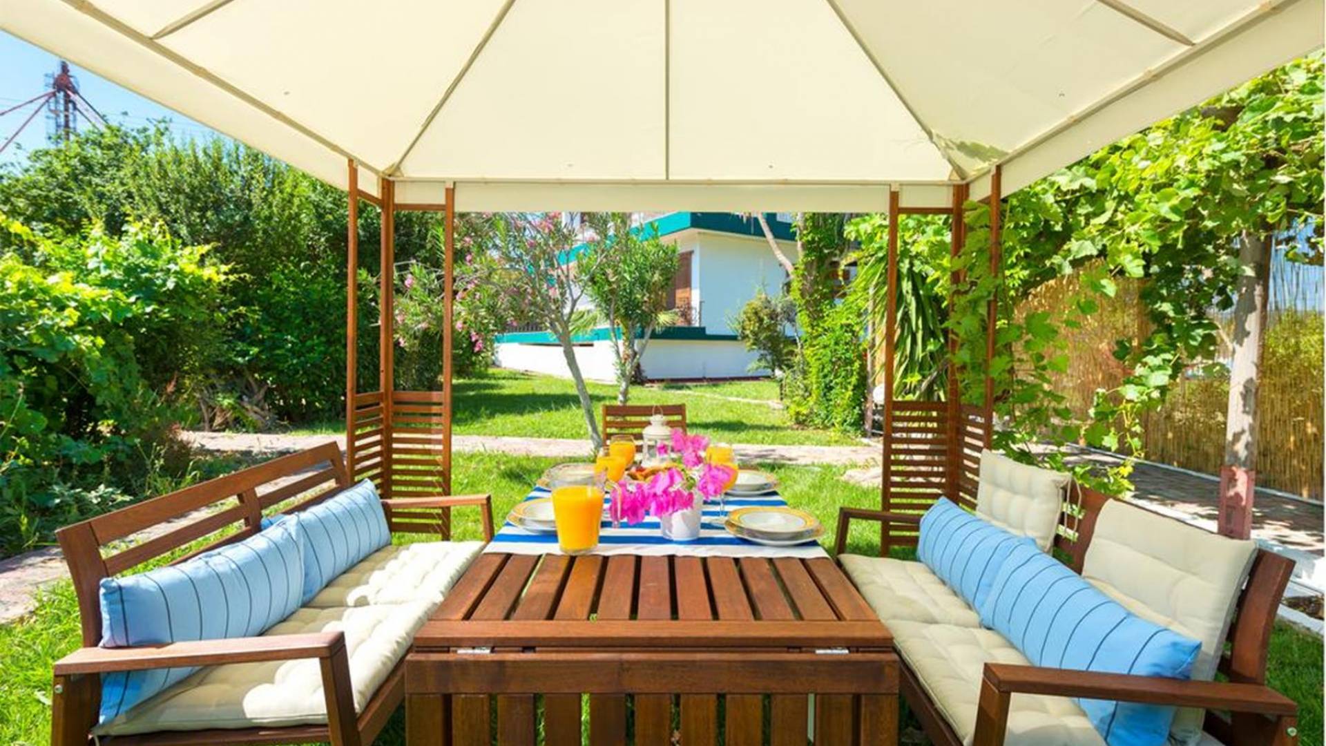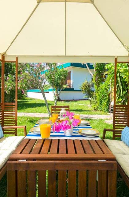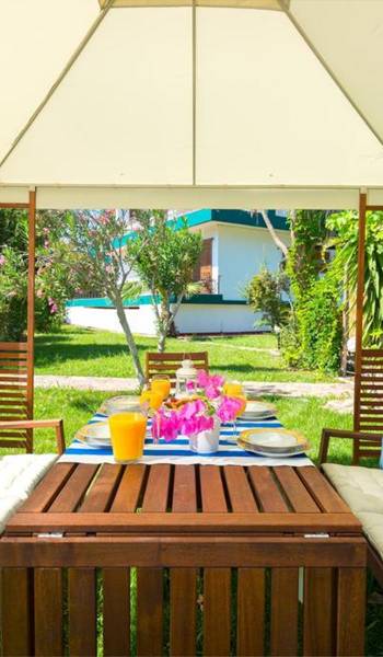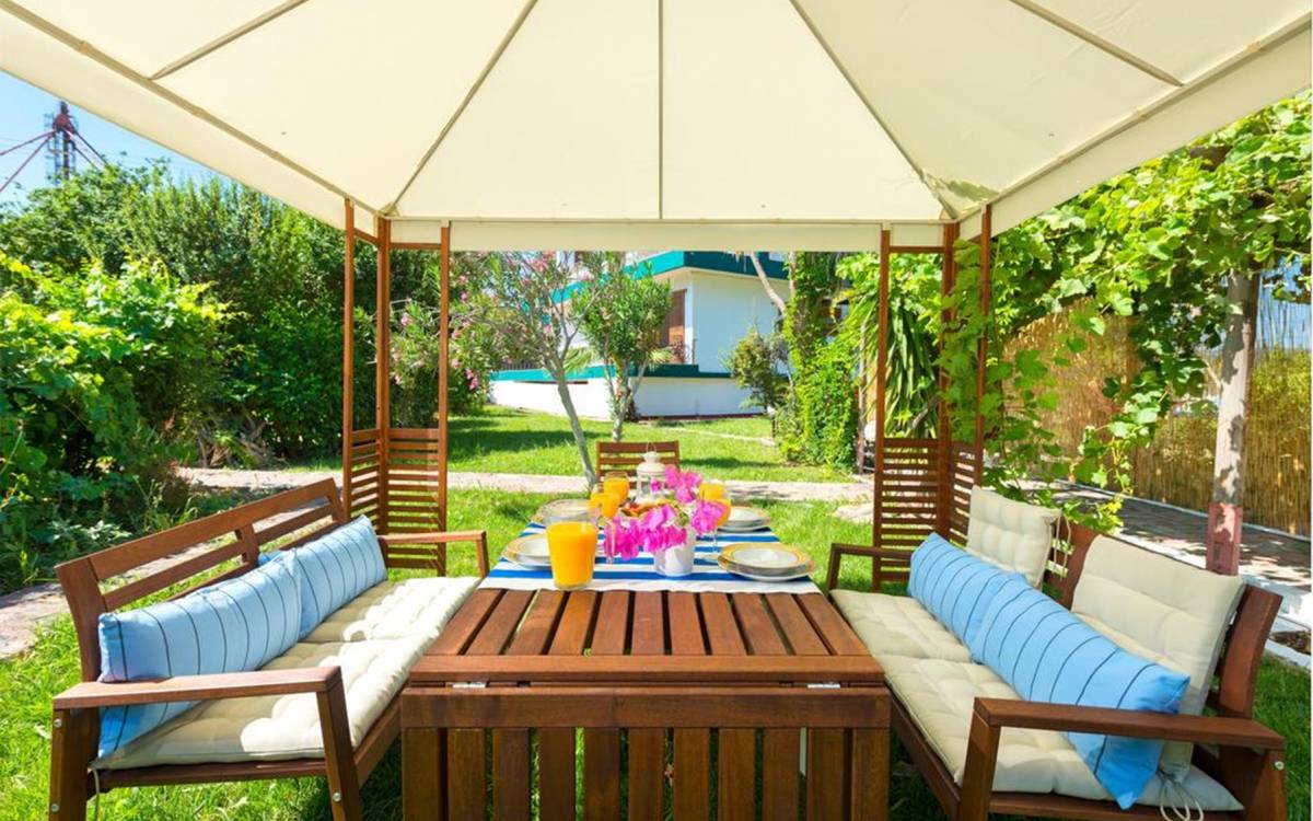 Marianna Villa 2 Rhodes dispose d'un grand jardin de 600m2. Il y a un kiosque en bois avec une table à manger, où vous pourrez prendre votre repas ou vous détendre avec un livre. Nos plus jeunes pourront y jouer avec nos jeux de société. À vue du gazebo, il y a une toute nouvelle aire de jeux, qui est faite de bois et de couleurs vertes et convient aux enfants de 6 mois à 12 ans. Ainsi, les parents peuvent profiter de moments de détente et surveiller leurs enfants en même temps. La zone est clôturée. Un barbecue et un four à bois sont également disponibles. Des soirées spéciales avec des plats traditionnels rhodiens cuits au four à bois peuvent être organisées pour vous.