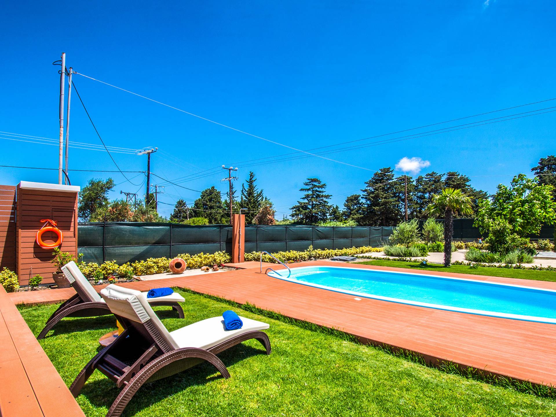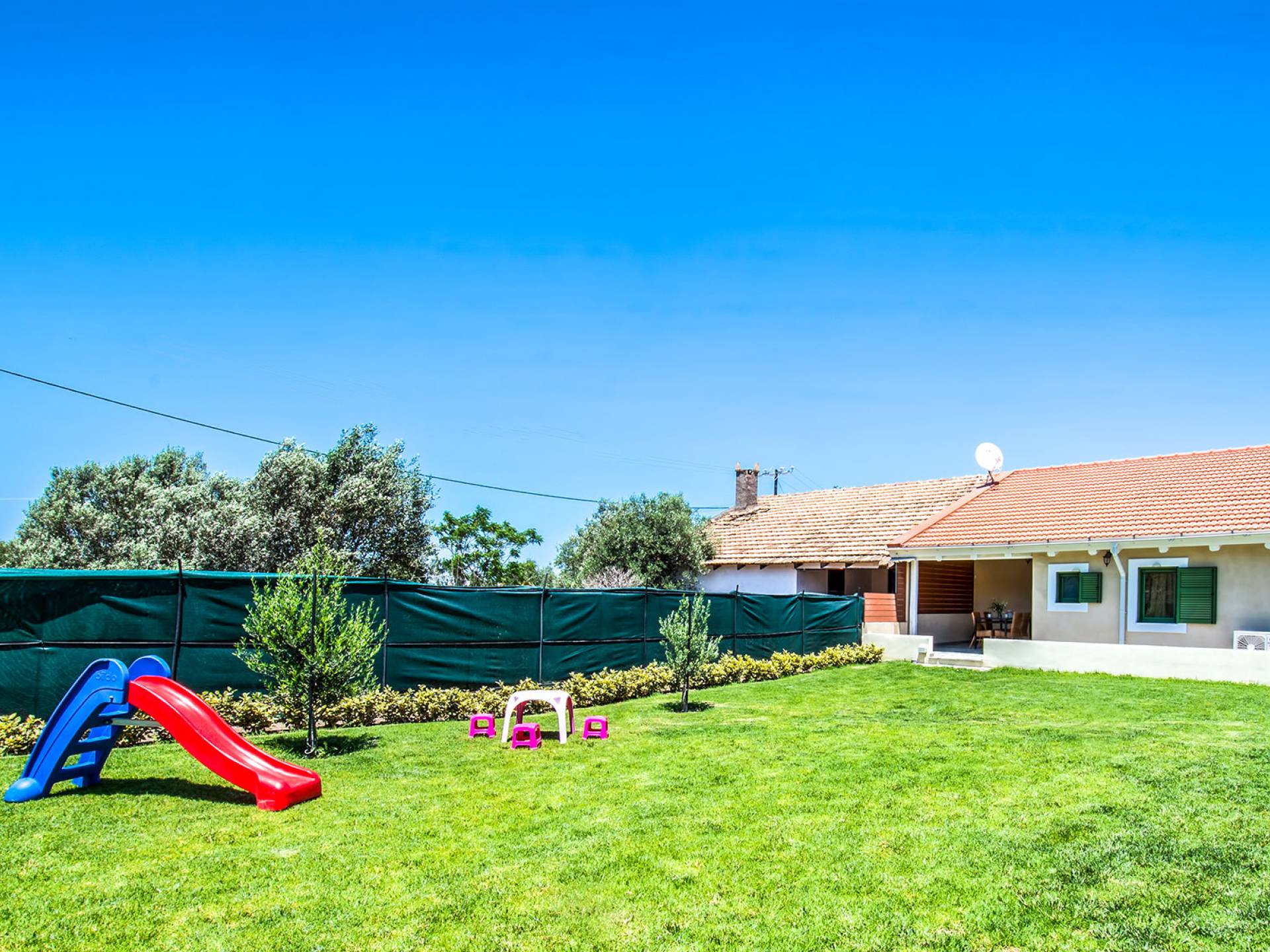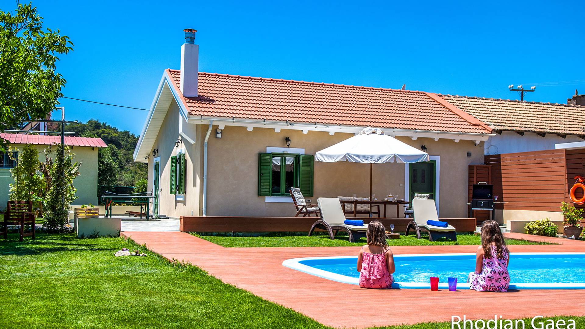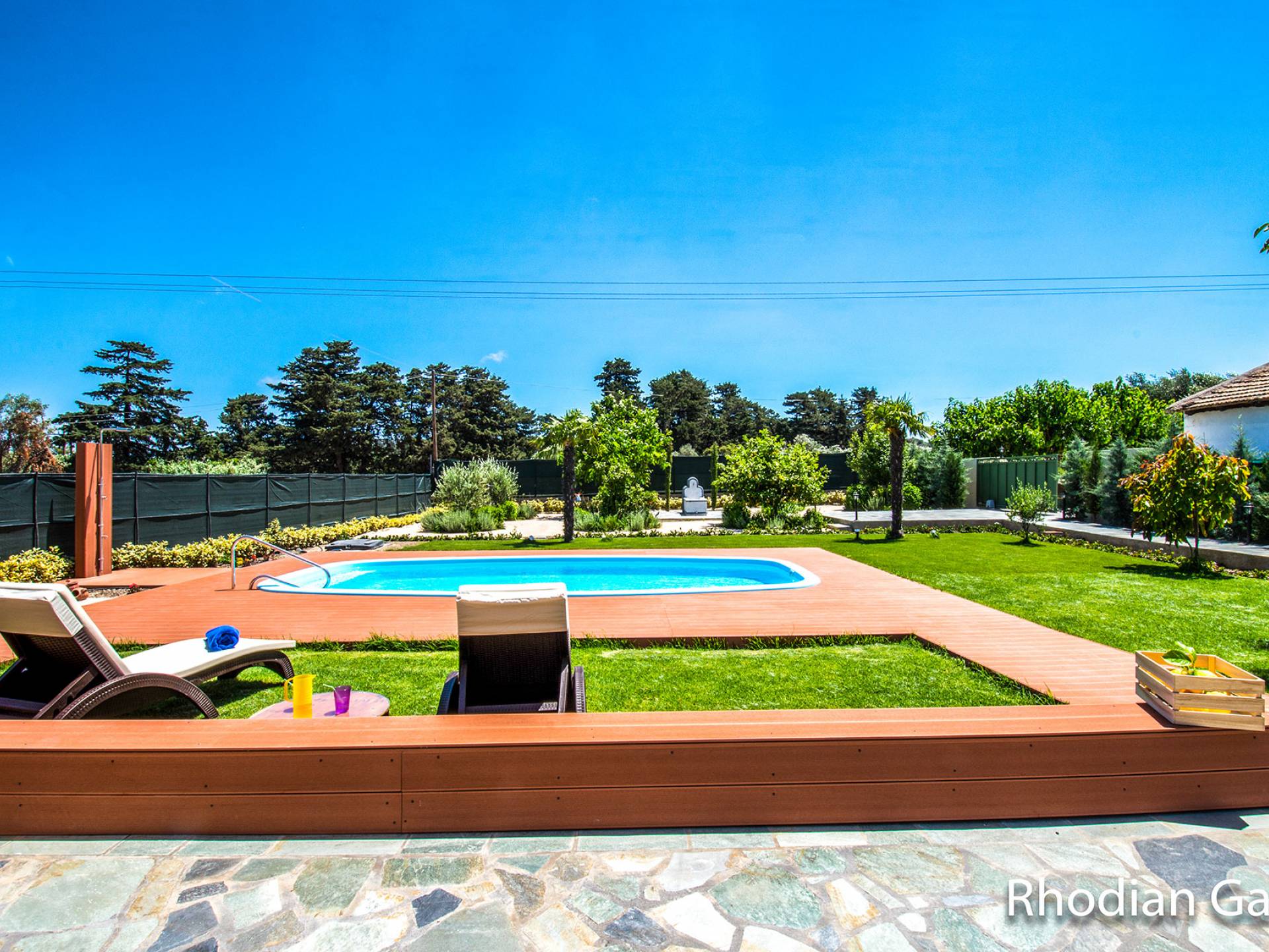 Le chalet est équipé d'une alarme de sécurité. Rhodian Gaea dispose d'une cuisine SMEG spacieuse et entièrement équipée avec four, plaque de cuisson et hotte aspirante, micro-ondes, réfrigérateur-congélateur, cafetière et tous les ustensiles de cuisine nécessaires à la préparation et à la dégustation des repas. Il y a aussi une salle de bain avec douche. L'espace extérieur de Rhodian Gaea est un point culminant en soi. Il dispose d'un jardin bien entretenu d'un acre qui ajoute à un sentiment clair d'isolement ainsi qu'une piscine équipée de transats, de parasols et d'une douche extérieure. De plus, il y a une terrasse avec barbecue idéale pour une réunion en famille ou entre amis. Les invités sont invités à cueillir à la main des fruits et légumes frais dans le lotissement de 4 acres juste à côté du chalet.