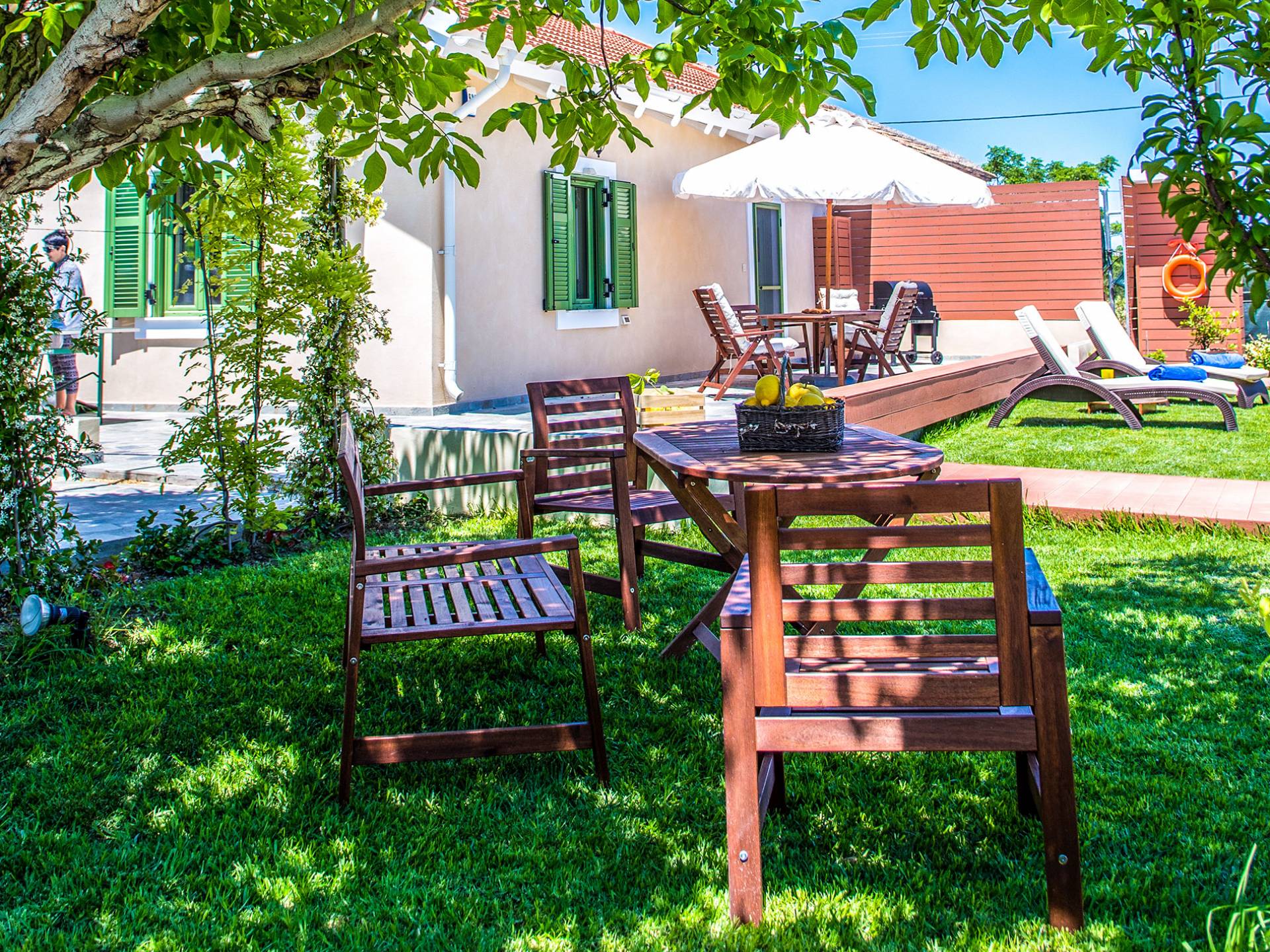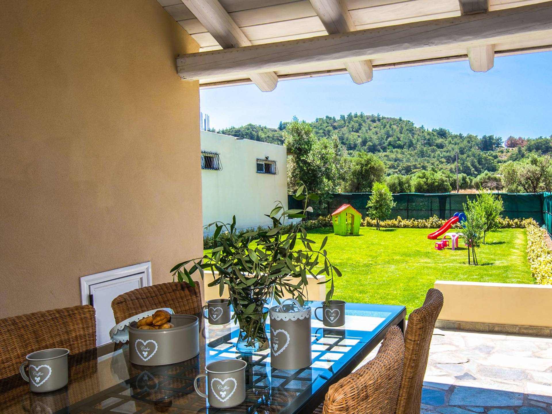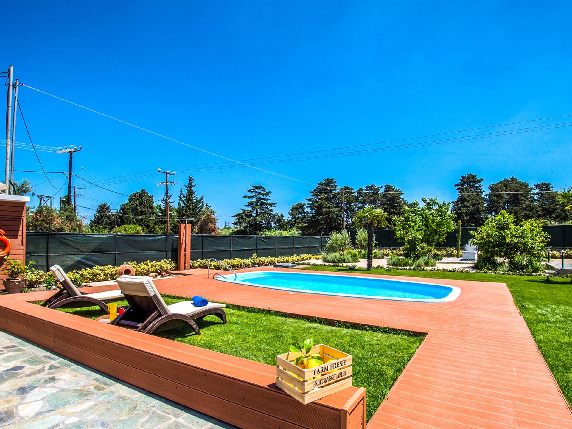 Le chalet est équipé d'une alarme de sécurité. Rhodian Gaea dispose d'une cuisine SMEG spacieuse et entièrement équipée avec four, plaque de cuisson et hotte aspirante, micro-ondes, réfrigérateur-congélateur, cafetière et tous les ustensiles de cuisine nécessaires à la préparation et à la dégustation des repas. Il y a aussi une salle de bain avec douche. L'espace extérieur de Rhodian Gaea est un point culminant en soi. Il dispose d'un jardin bien entretenu d'un acre qui ajoute à un sentiment clair d'isolement ainsi qu'une piscine équipée de transats, de parasols et d'une douche extérieure. De plus, il y a une terrasse avec barbecue idéale pour une réunion en famille ou entre amis. Les invités sont invités à cueillir à la main des fruits et légumes frais dans le lotissement de 4 acres juste à côté du chalet.