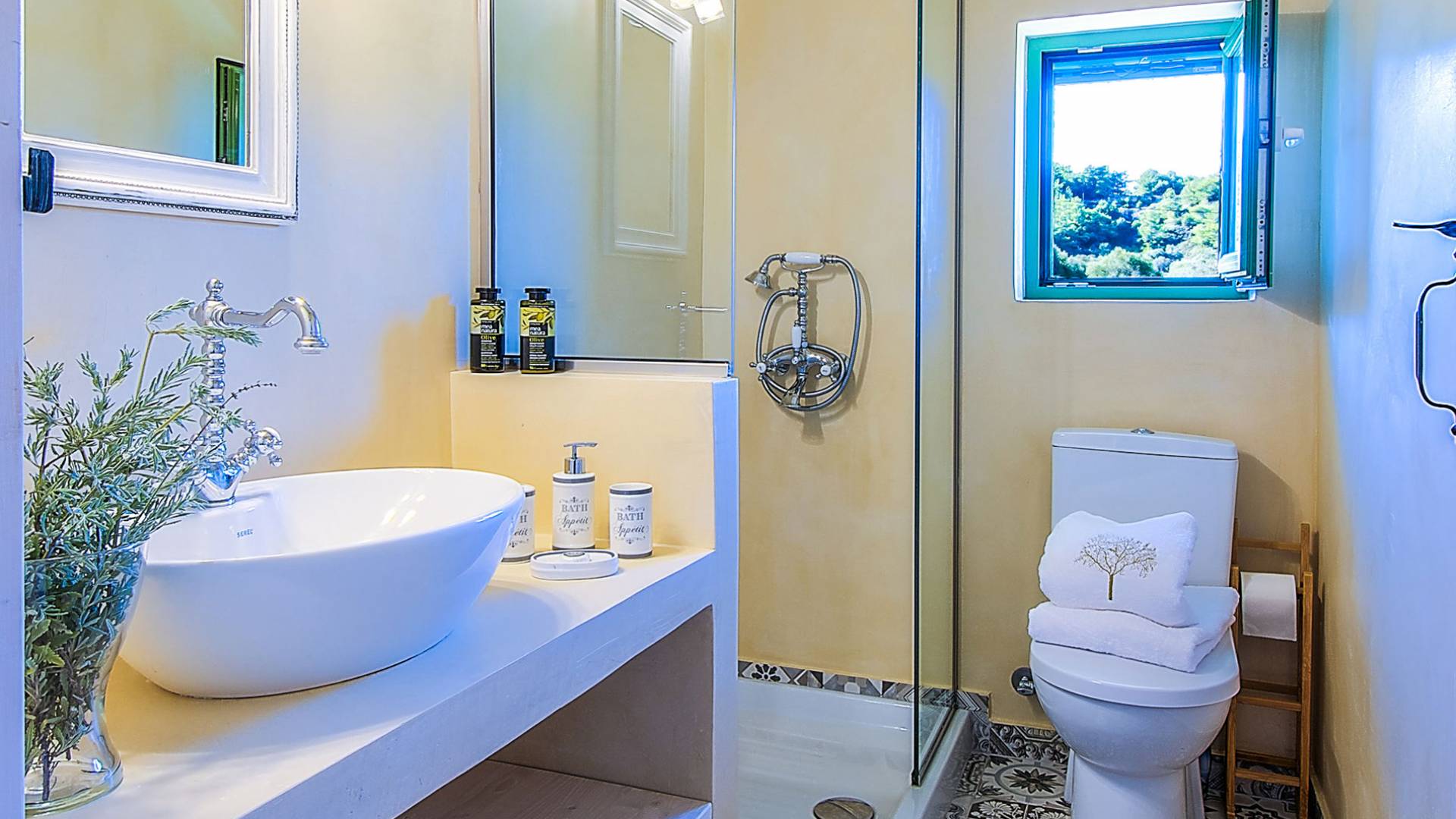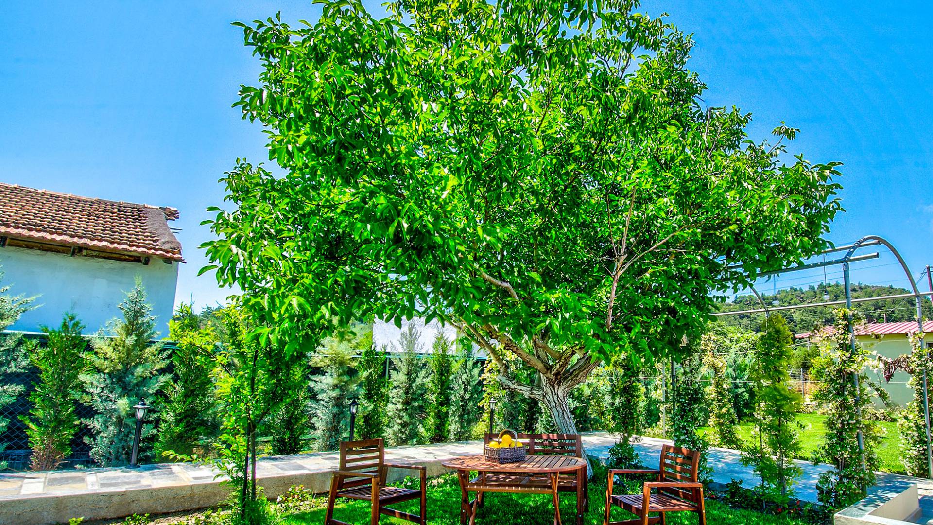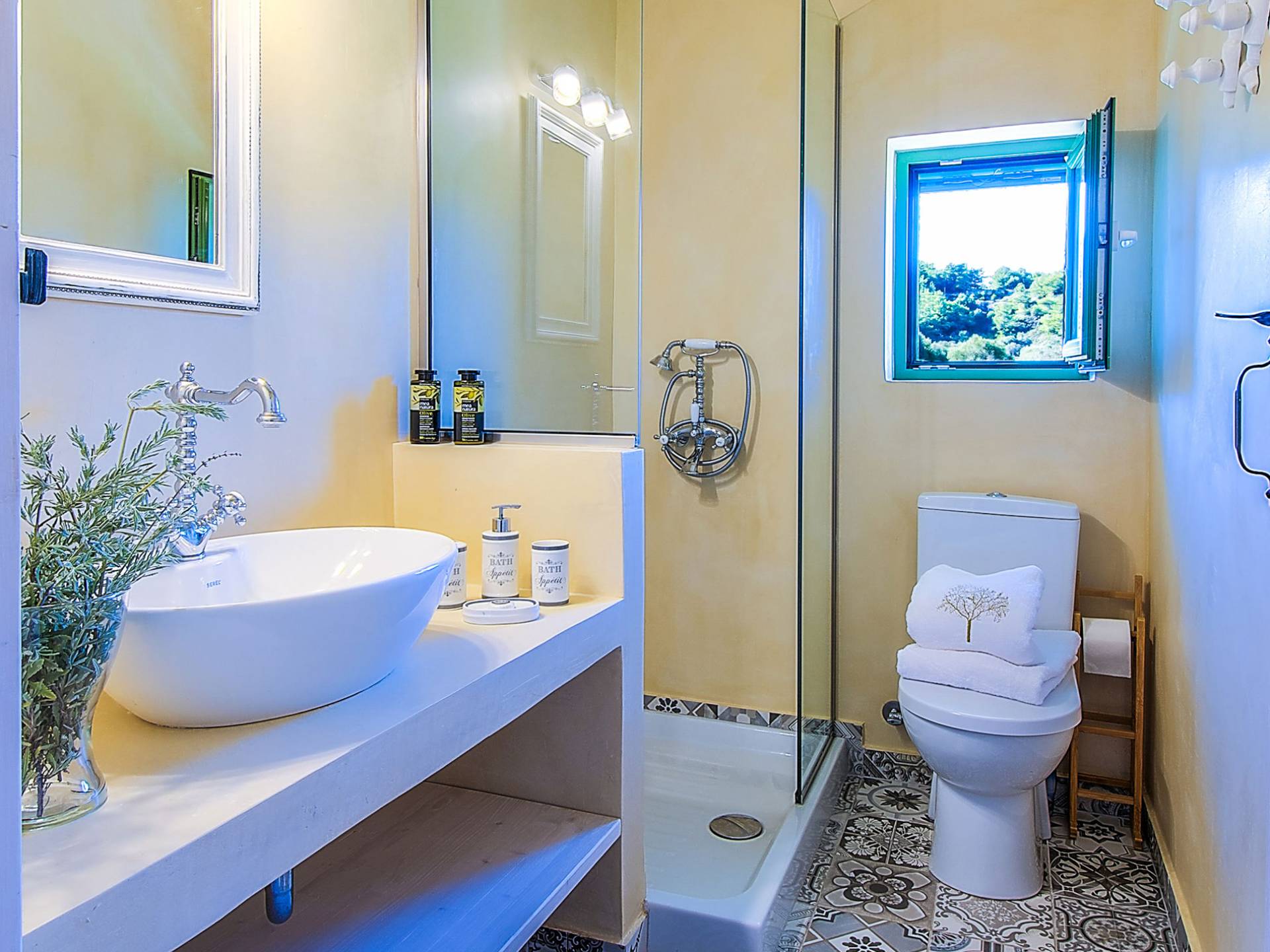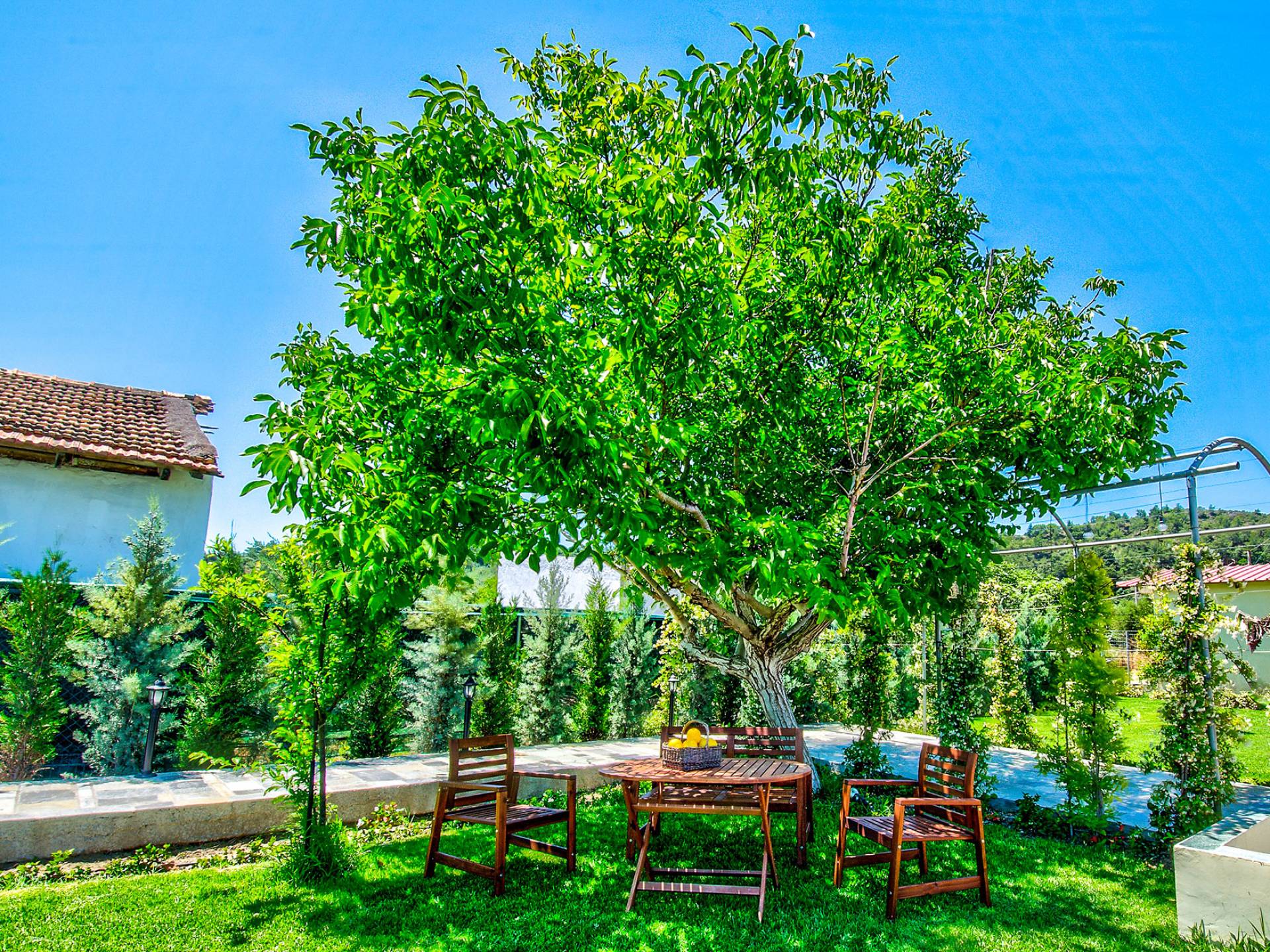 Le chalet est équipé d'une alarme de sécurité. Rhodian Gaea dispose d'une cuisine SMEG spacieuse et entièrement équipée avec four, plaque de cuisson et hotte aspirante, micro-ondes, réfrigérateur-congélateur, cafetière et tous les ustensiles de cuisine nécessaires à la préparation et à la dégustation des repas. Il y a aussi une salle de bain avec douche. L'espace extérieur de Rhodian Gaea est un point culminant en soi. Il dispose d'un jardin bien entretenu d'un acre qui ajoute à un sentiment clair d'isolement ainsi qu'une piscine équipée de transats, de parasols et d'une douche extérieure. De plus, il y a une terrasse avec barbecue idéale pour une réunion en famille ou entre amis. Les invités sont invités à cueillir à la main des fruits et légumes frais dans le lotissement de 4 acres juste à côté du chalet.