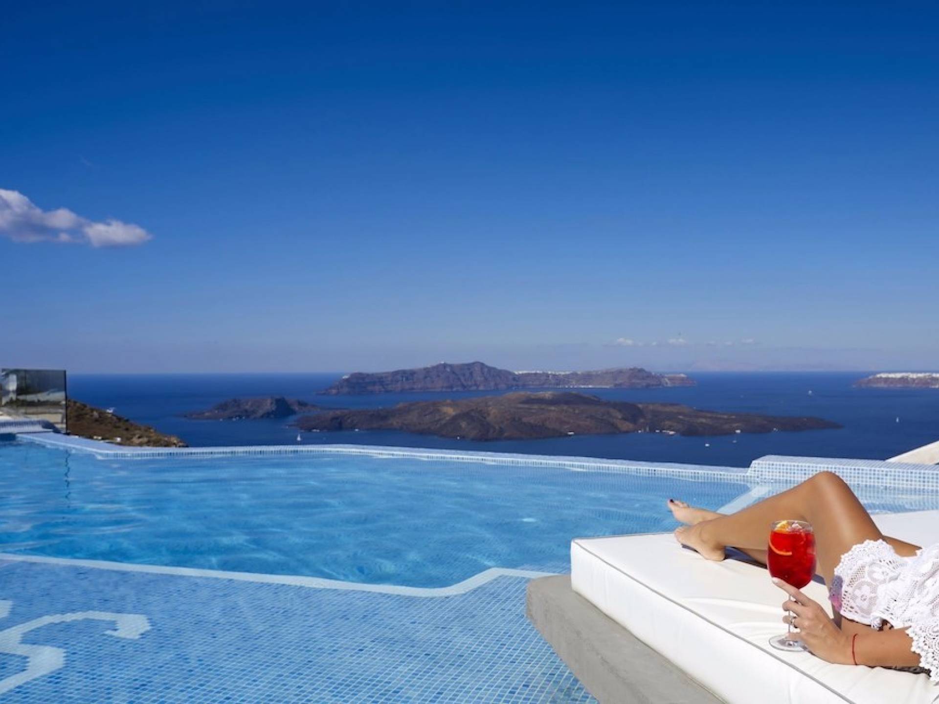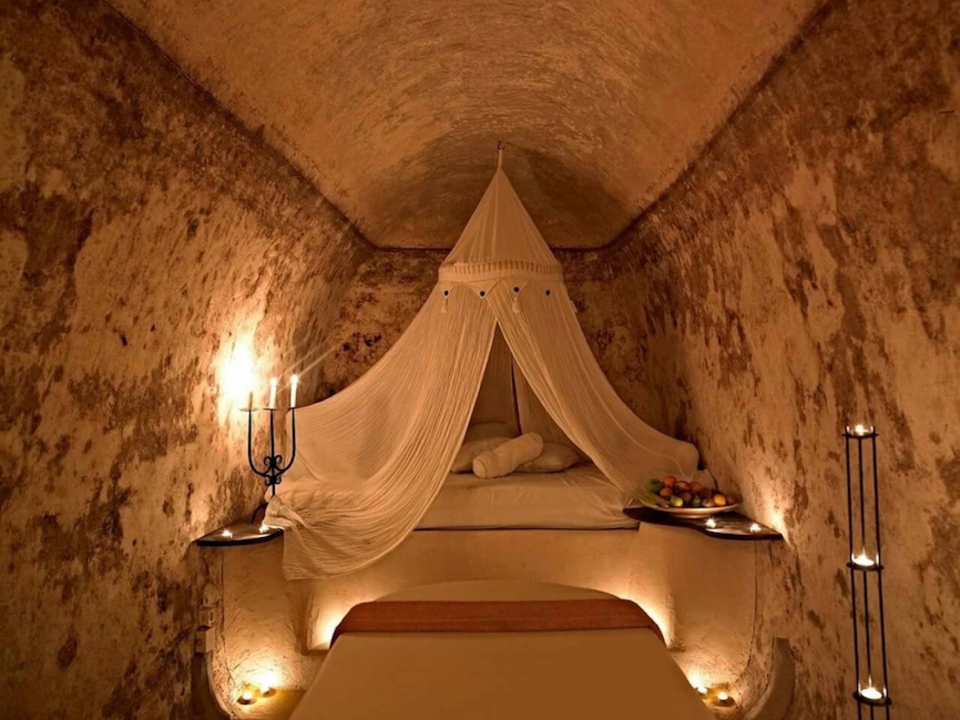 Le « Celebrities Restaurant » sert des plats exquis inspirés de la cuisine grecque méditerranéenne. À l'intérieur du lieu, dans une cave exclusive centenaire aux murs tachés de vin, se trouvent la « Cave Spa of the Gods » et la « Gym of the Gods », conçues pour être un régal pour le corps et l'esprit. En d'autres termes, c'est l'introduction parfaite à la magnifique île de Santorin.