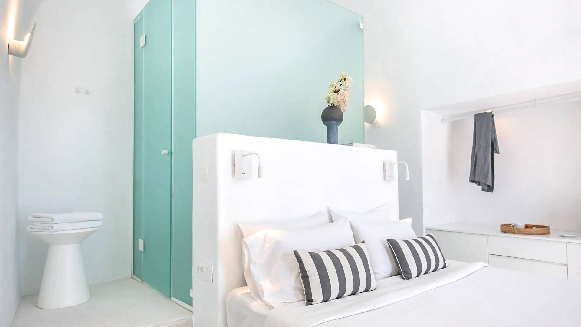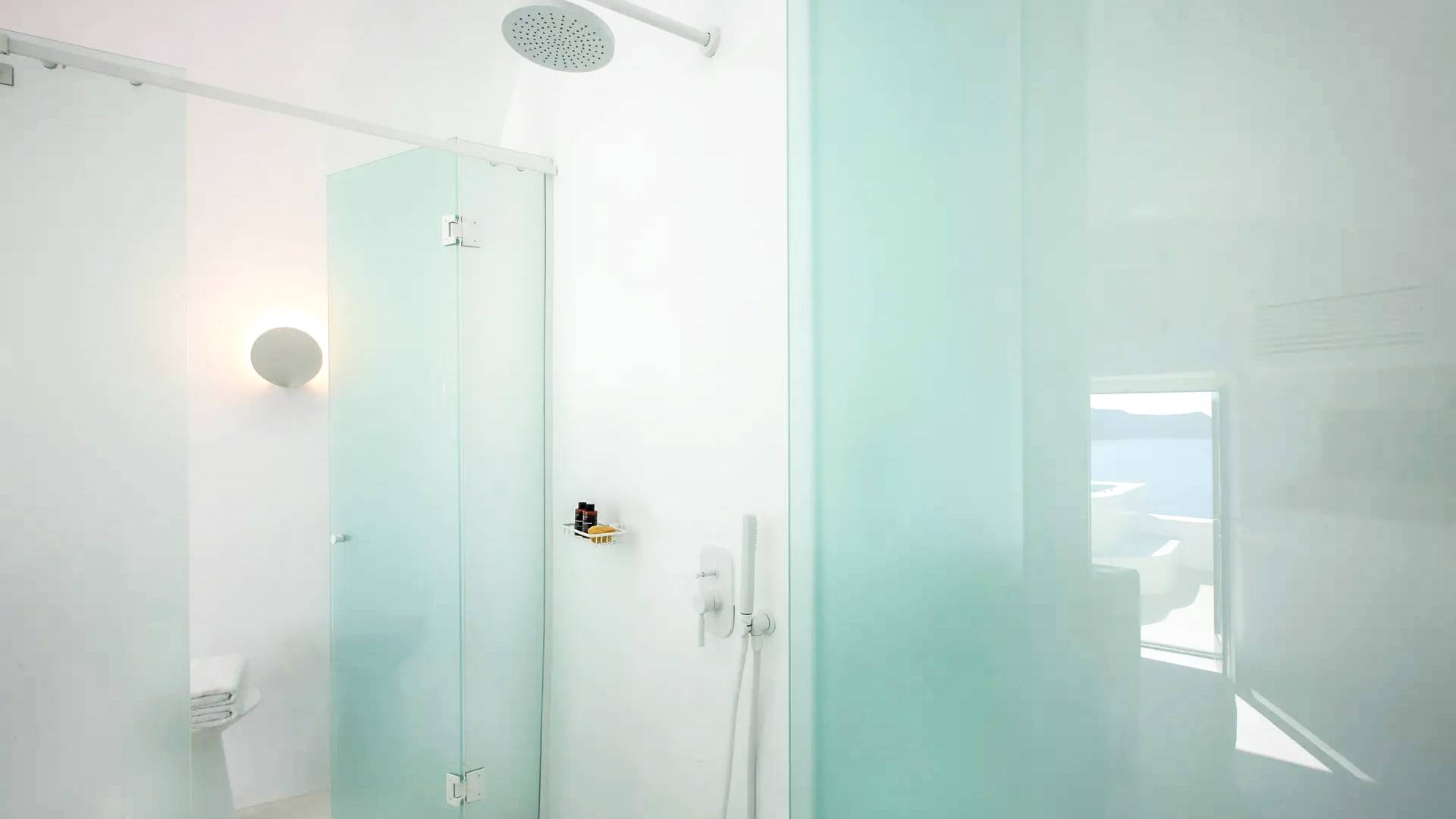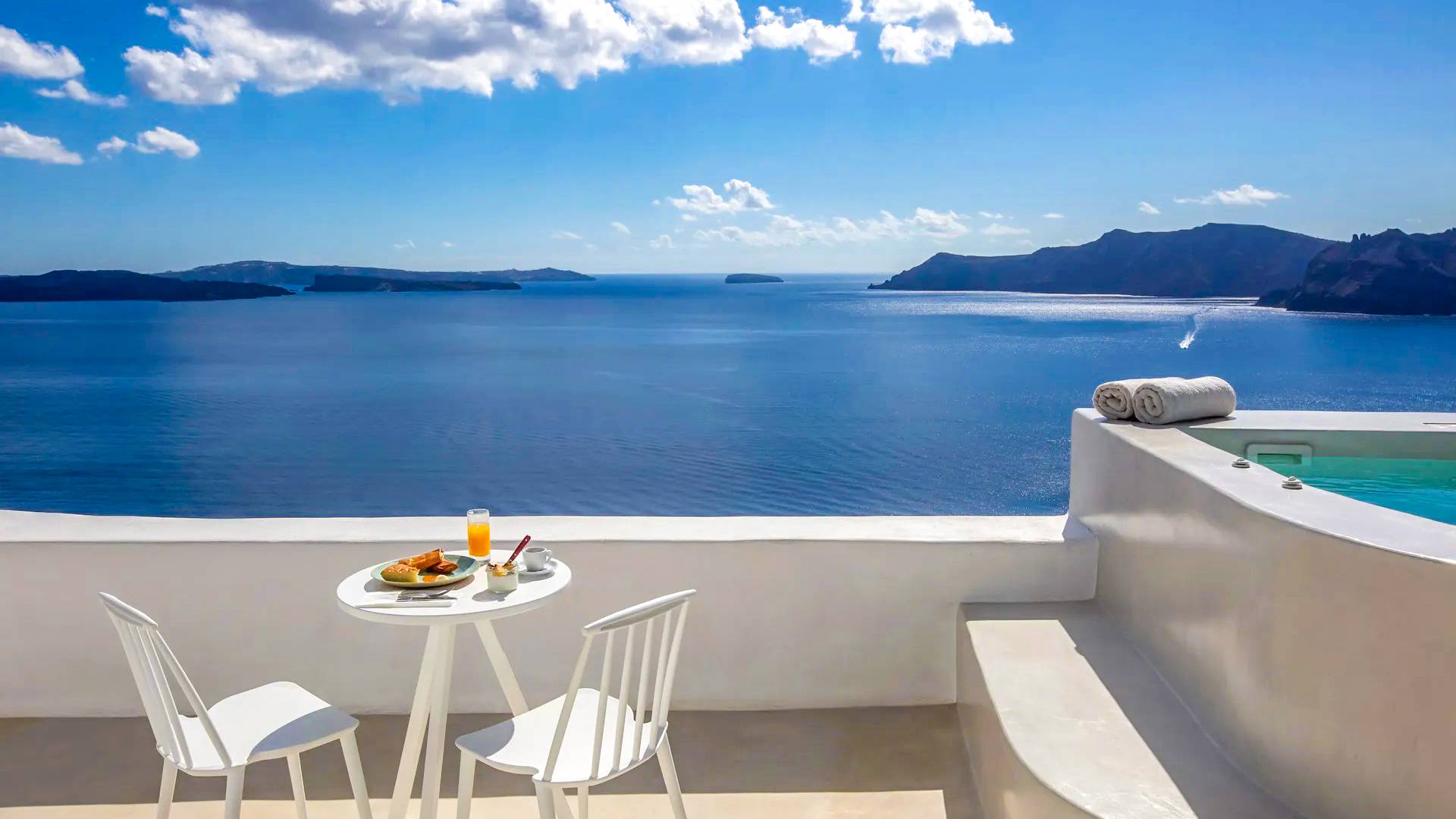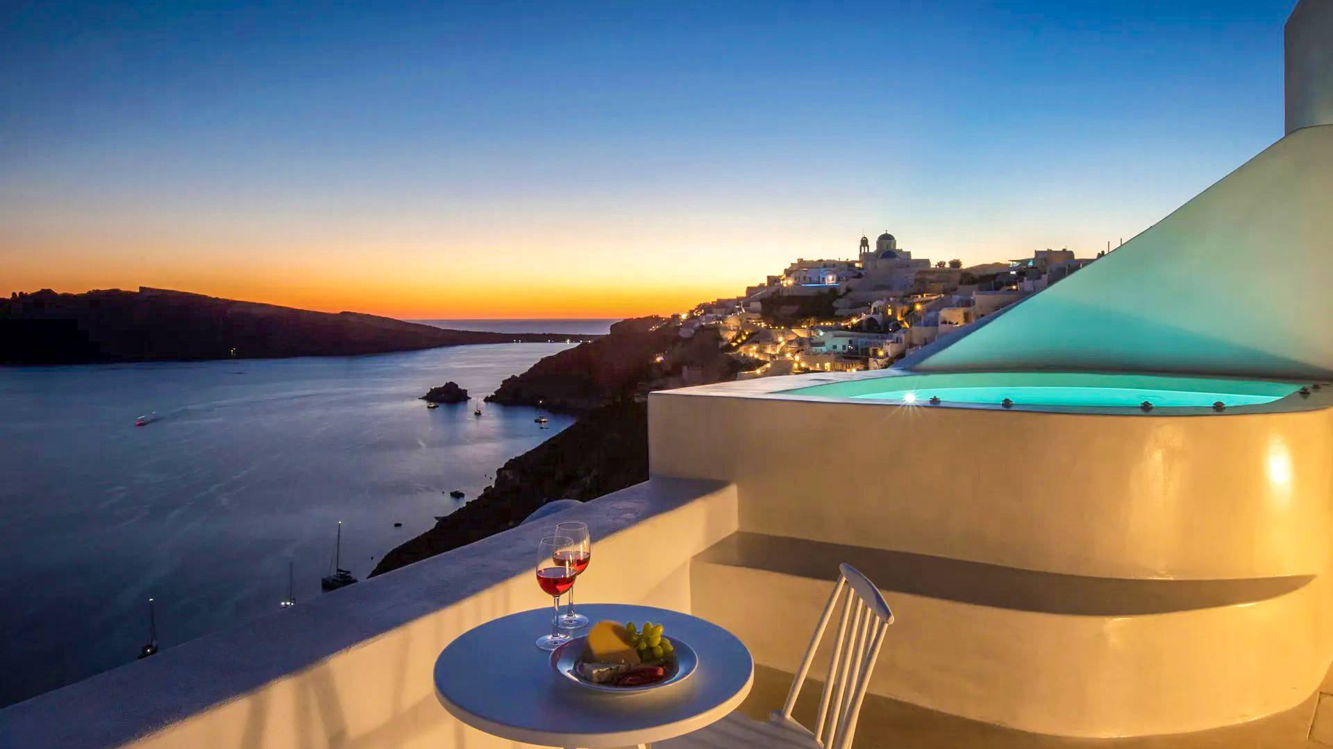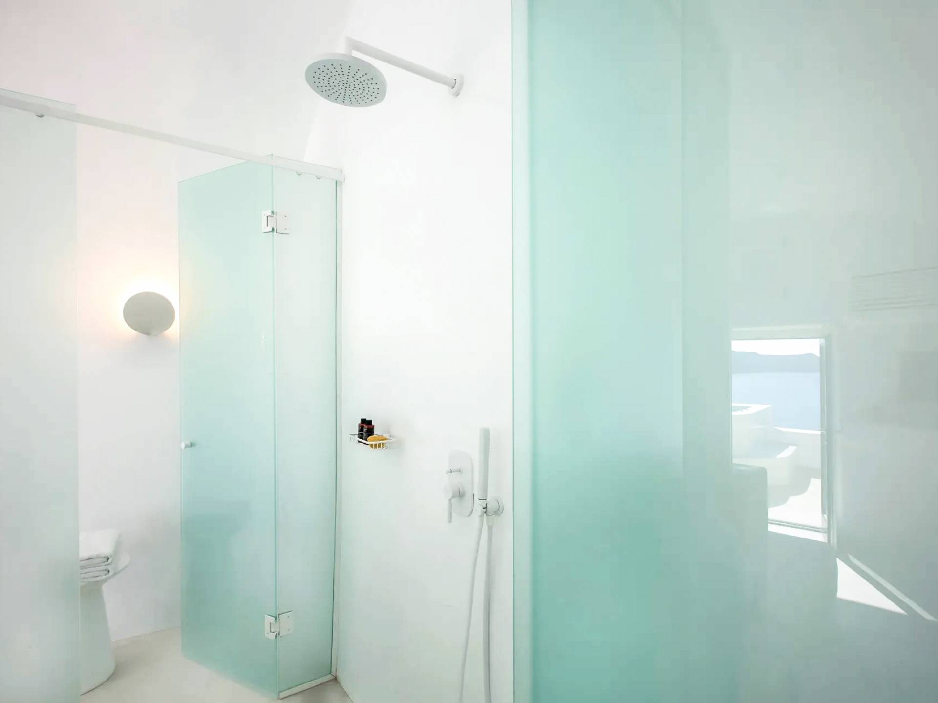 Le patio surplombe la caldeira avec une vue imprenable sur le volcan et la mer Égée en toute intimité, un luxe particulièrement rare compte tenu de la structure architecturale d'Oia. L'histoire de la propriété en tant que canava à vin a également été préservée et des éléments tels qu'un four traditionnel (hors service) et un plateau en verre affichant l'ancienne réserve de vin dans le sol où les raisins pressés étaient conservés sont exposés. L'Apanema Cavehouse comprend une chambre et un coin repas extérieur. La suite se compose d'un lit queen-size. Le grand patio dispose d'un jacuzzi chauffé et de nombreux coins salons pour se détendre et profiter de la vue confortablement.