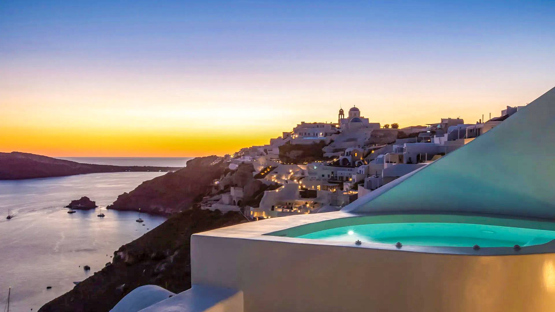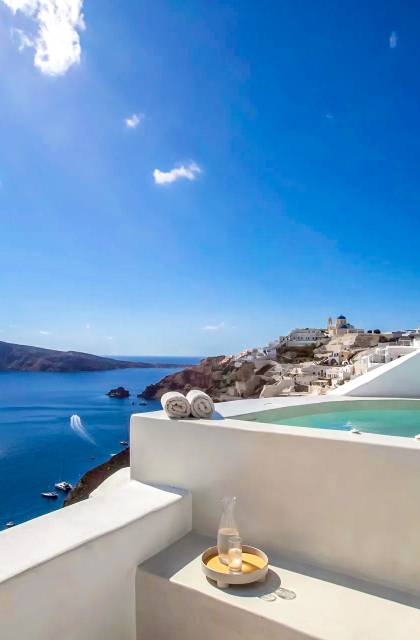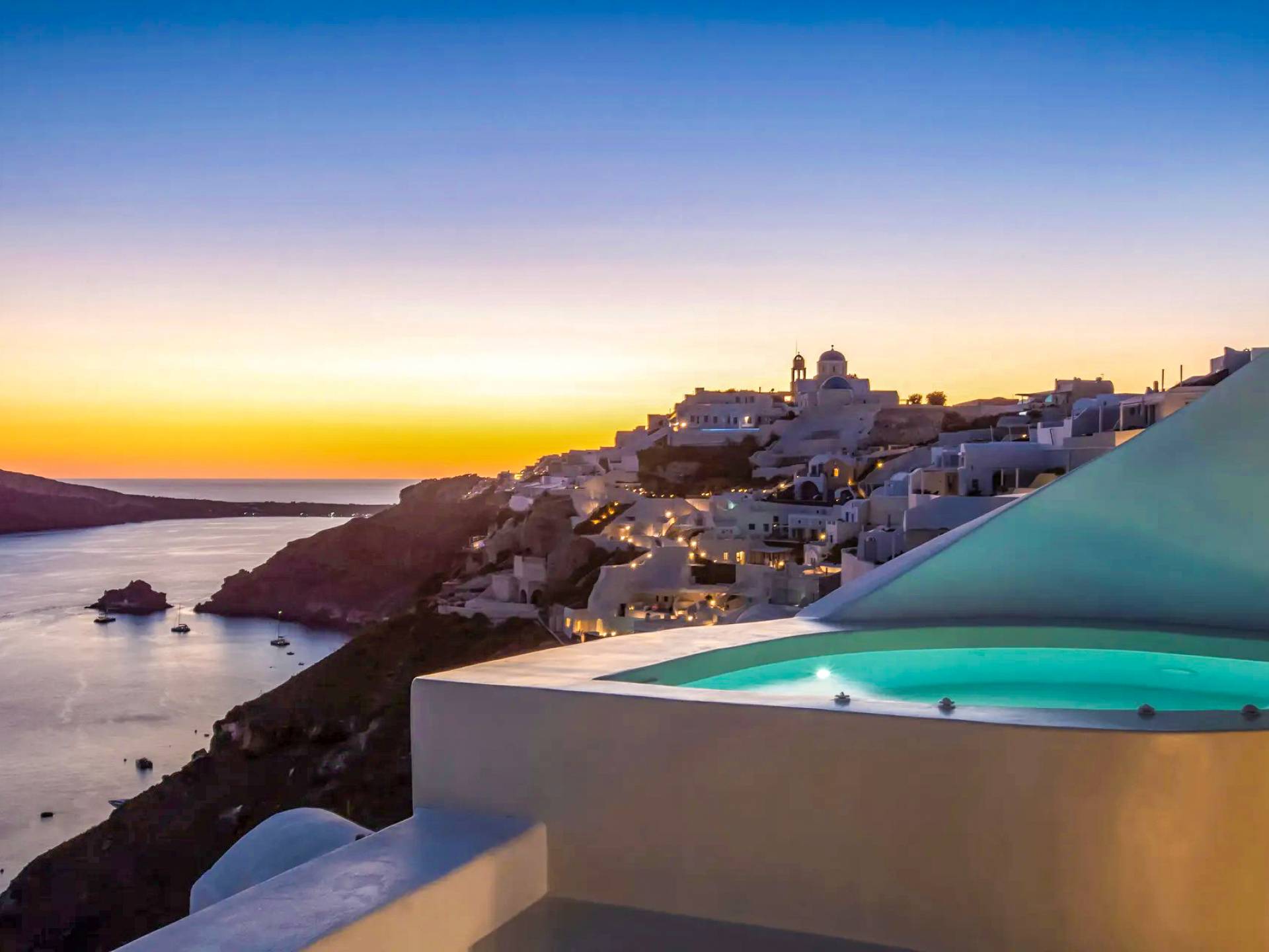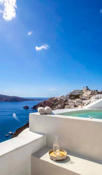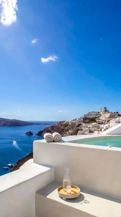 Oia est le village le plus célèbre de Santorin, à 11 km de Fira, au nord de l'île. Mondialement réputé pour son coucher de soleil fascinant, il mérite le titre de plus beau village de Santorin. Situé au sommet d'une falaise, il s'ouvre sur une vue imprenable sur le volcan de Palia et Nea Kameni et l'île de Thirassia. Son caractère traditionnel avec ses maisons blanchies à la chaux, ses rues pavées et ses églises aux dômes bleus créent…Oia est le village le plus célèbre de Santorin, à 11 km de Fira, au nord de l'île. Mondialement réputé pour son coucher de soleil fascinant, il mérite le titre de plus beau village de Santorin. Situé au sommet d'une falaise, il s'ouvre sur une vue imprenable sur le volcan de Palia et Nea Kameni et l'île de Thirassia. Son caractère traditionnel avec ses maisons blanchies à la chaux, ses rues pavées et ses églises aux dômes bleus créent…