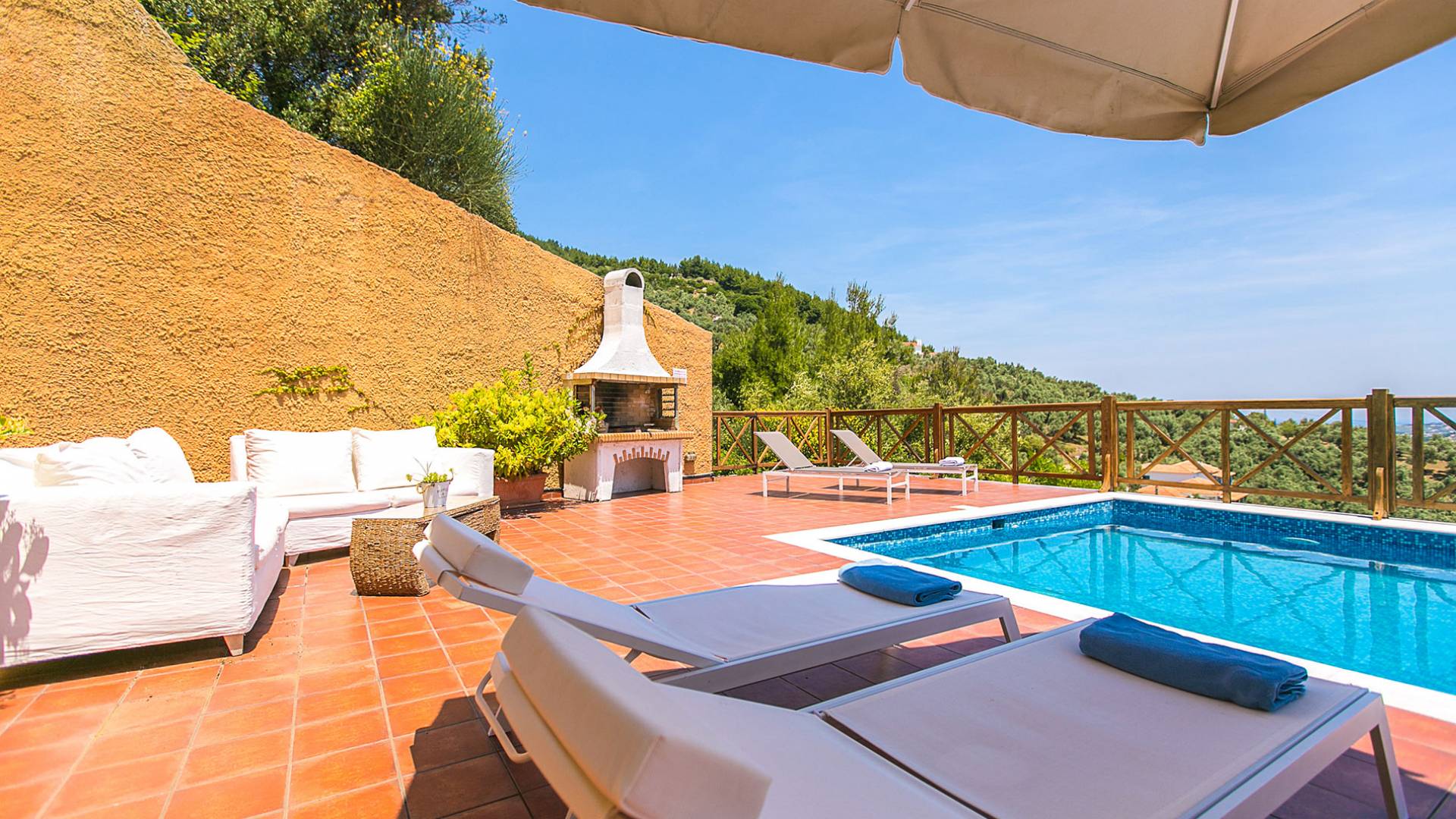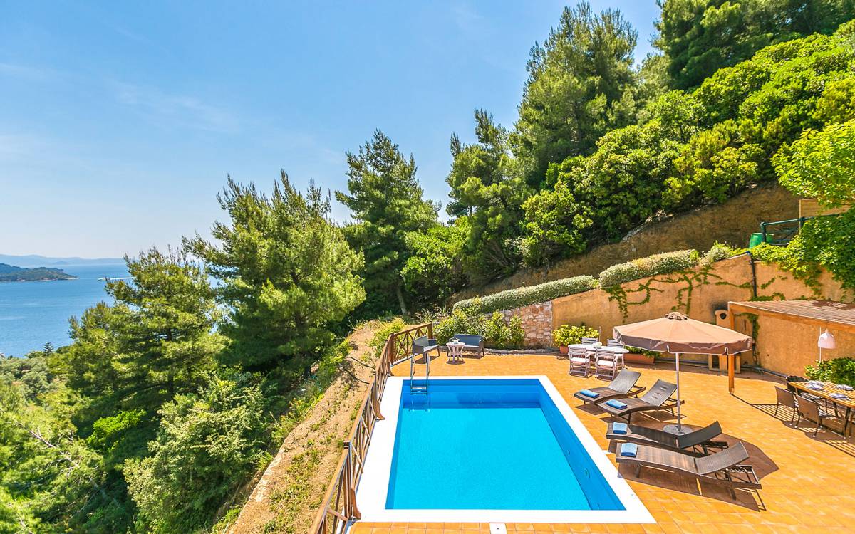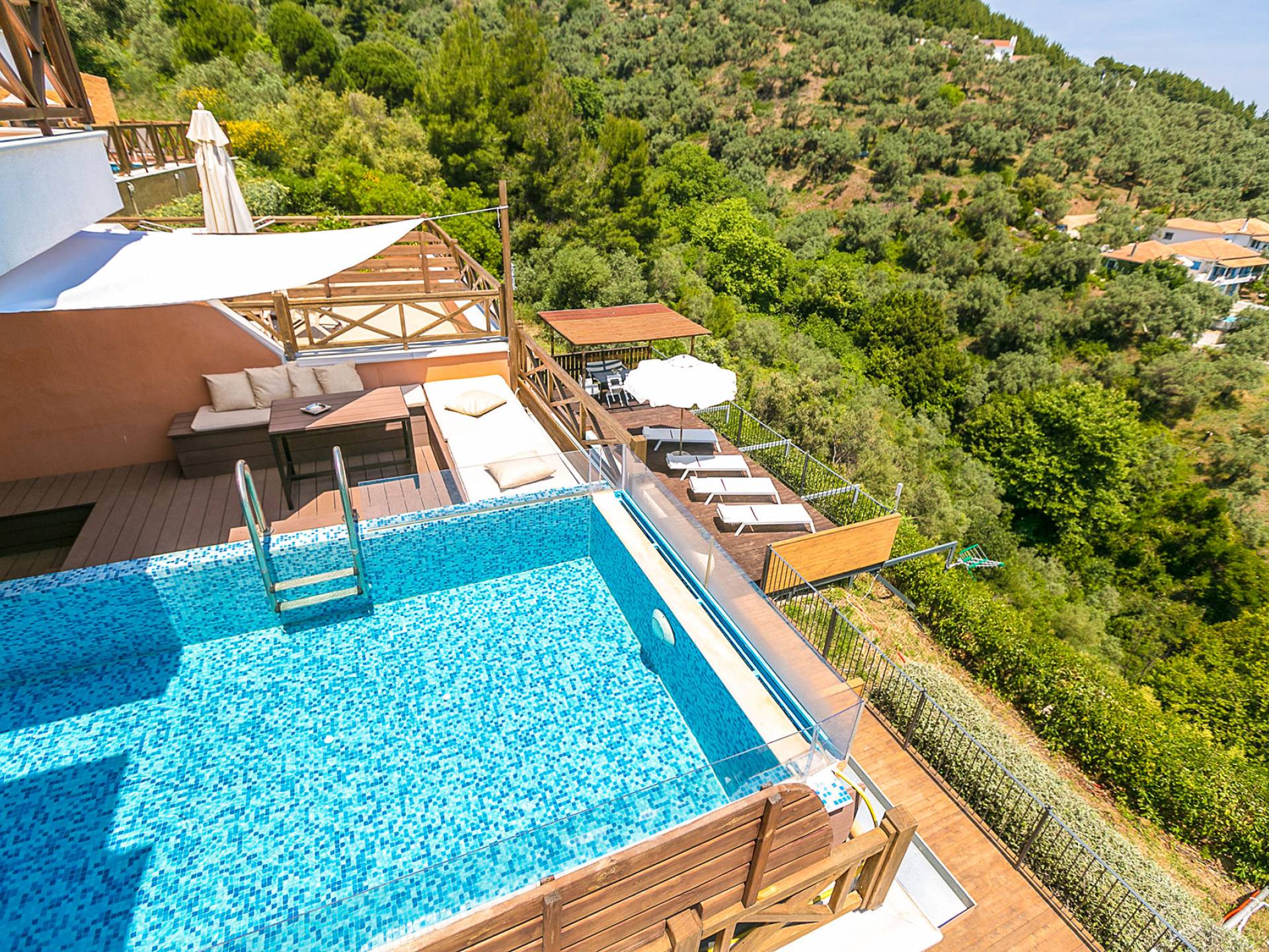 Gea Villas Skiathos est une location de villa de luxe composée de 4 villas et d'une suite avec 5 piscines privées. Niché dans la colline luxuriante de Katsaros, Skiathos Gea Villas est à seulement 800 mètres de la plage de Vasilias. Une terrasse meublée avec une piscine privée et une vue imprenable est présente dans chaque villa.